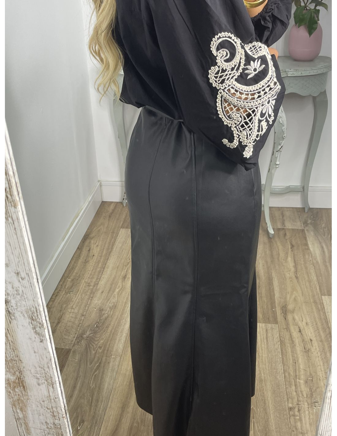 Falda Gabriela polipiel negro