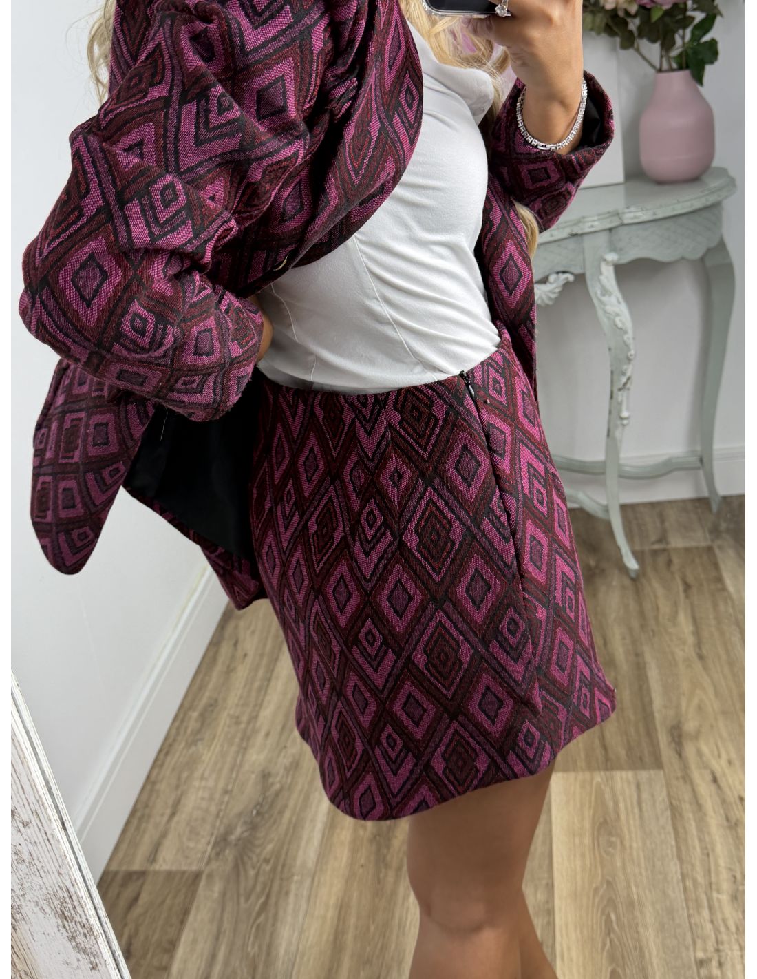 Falda de corte recto que el bajo es redondeado. Se cierra con cremallera invisible en el lateral. El tejido es grueso, no se arruga nada.