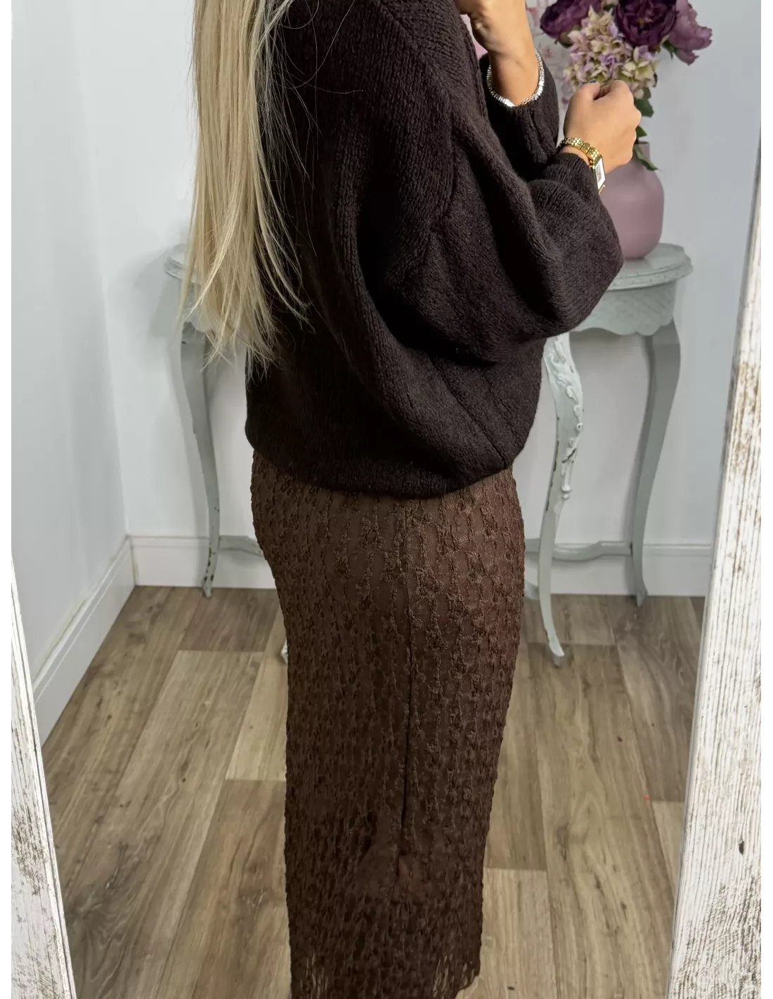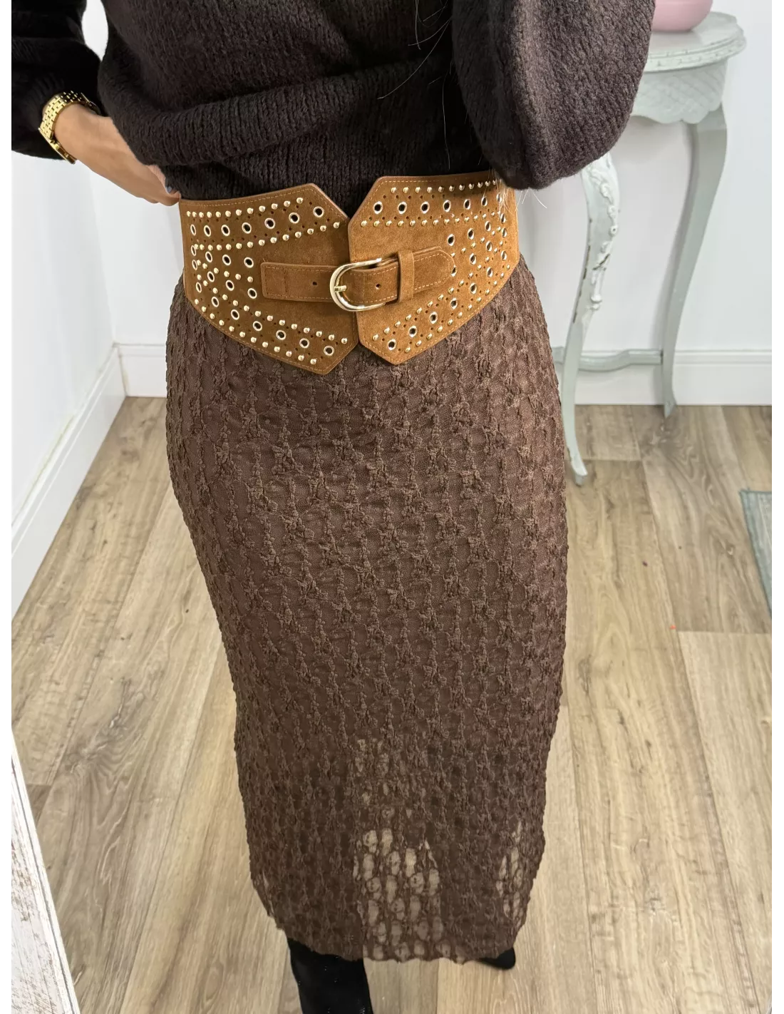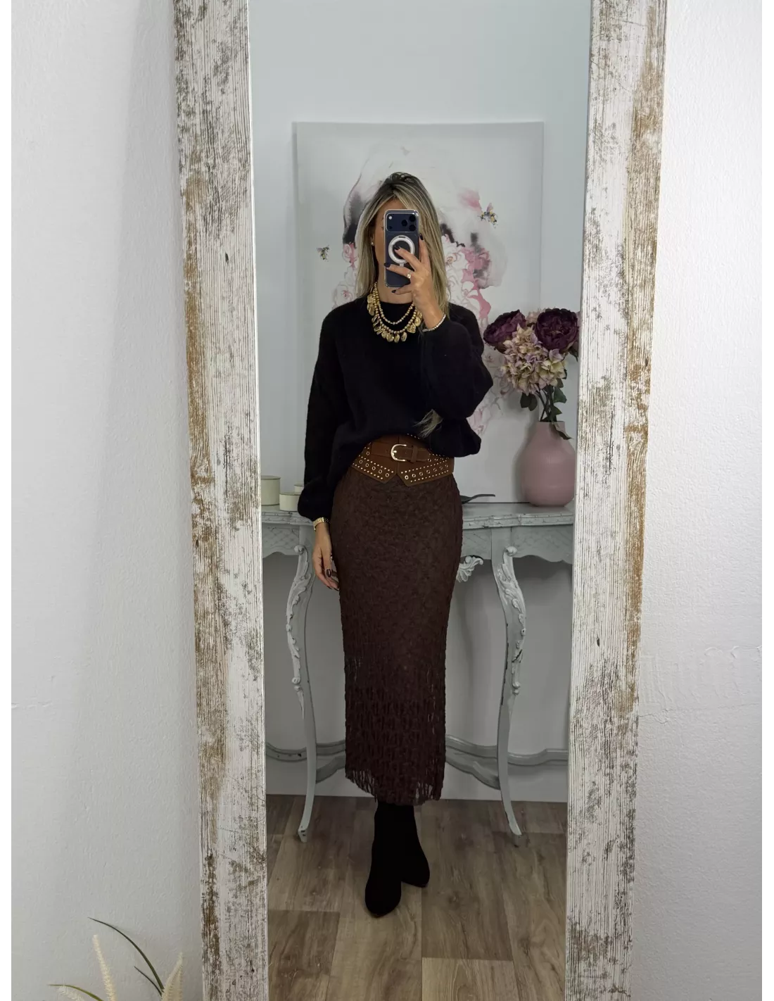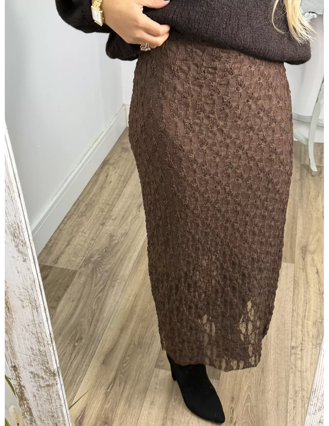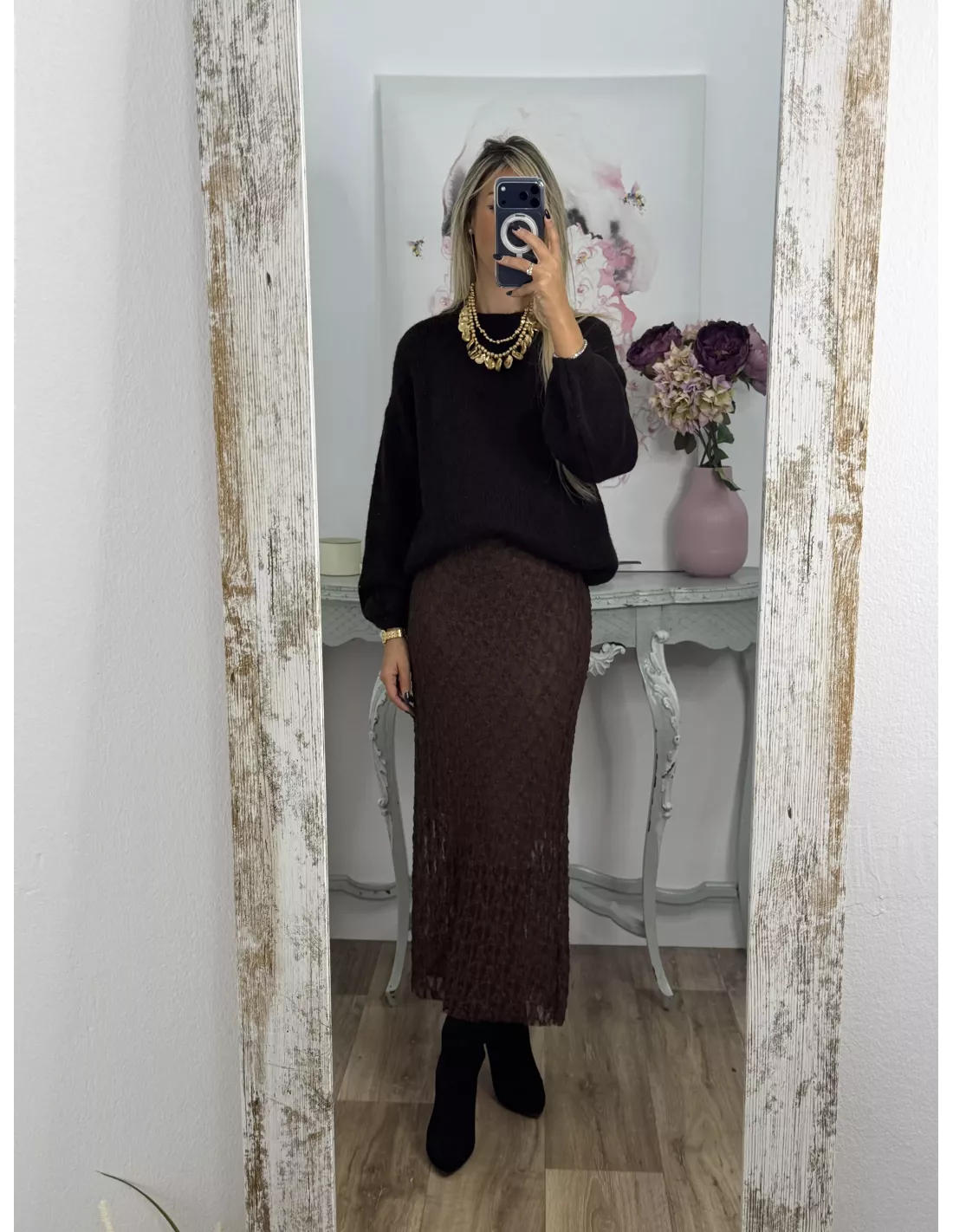 Falda de punto, va forrada hasta abajo. Lleva goma en la cintura.