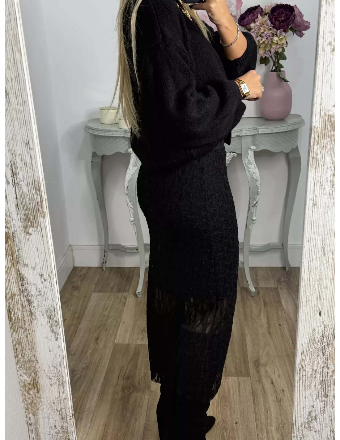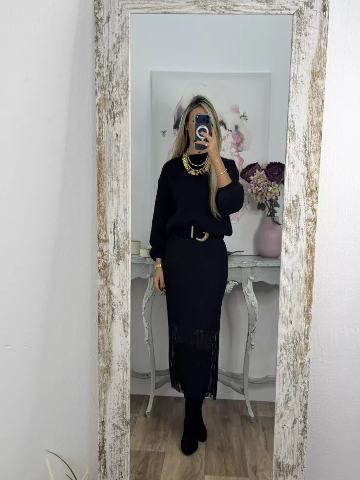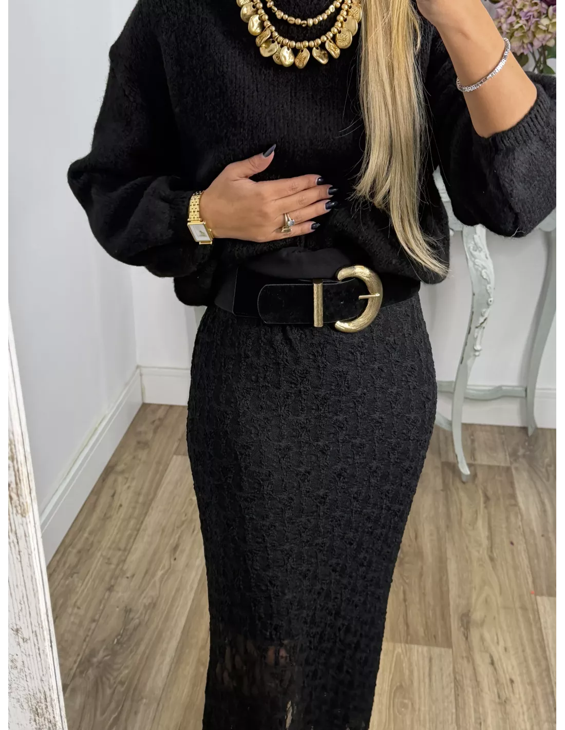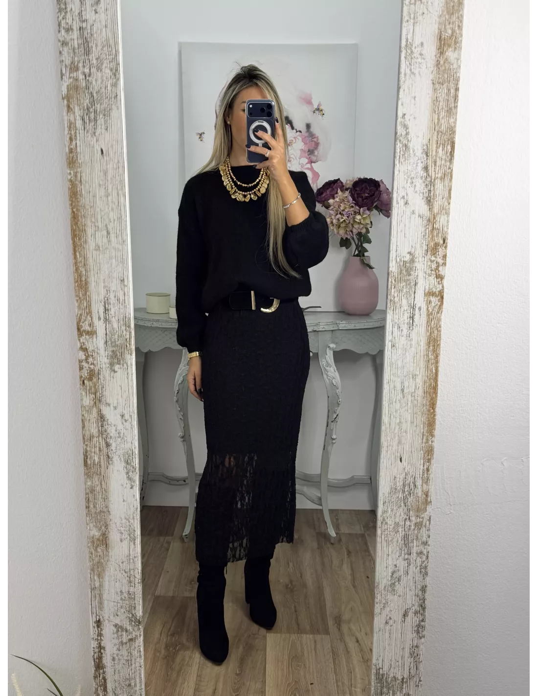 Falda de punto, va forrada hasta abajo. Lleva goma en la cintura.