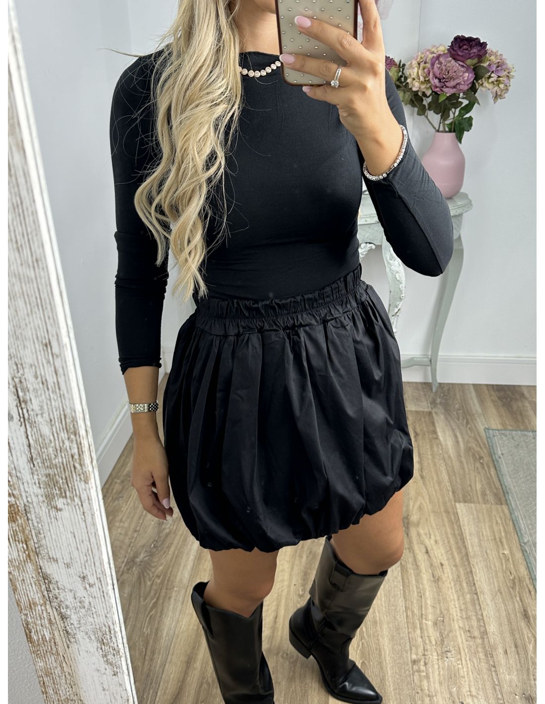 Falda mini globo negra