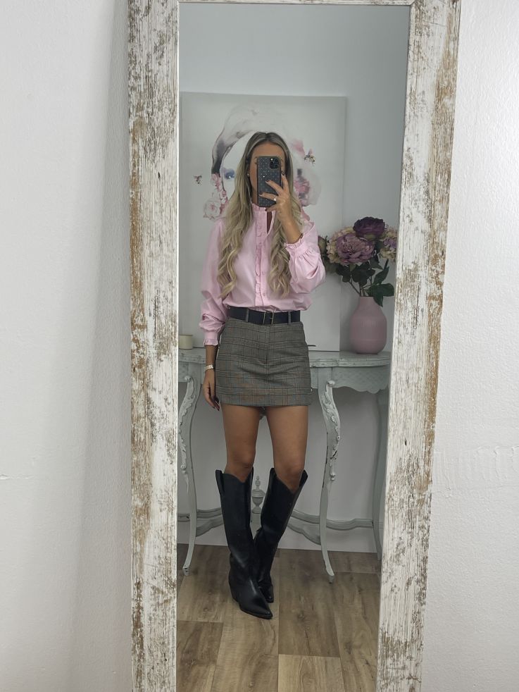 Falda pantalón de corte ajustado. La parte del pantalón interior es azul. Incluye el cinturón.