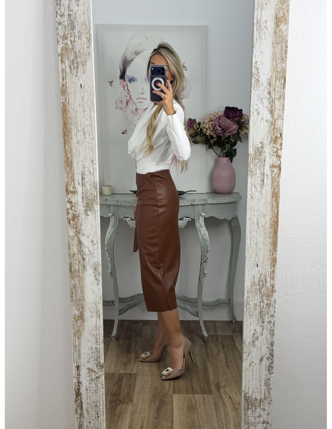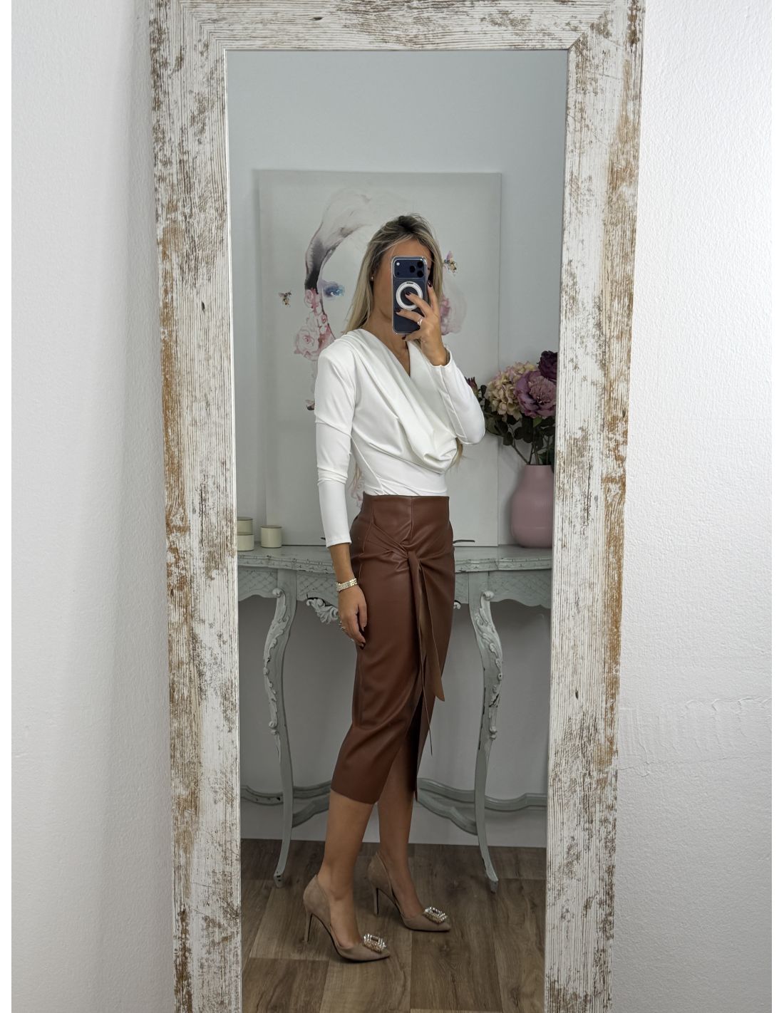 La modelo lleva puesta la talla S, ella utiliza en forma habitual talla XS-S y mide 1,60 cm