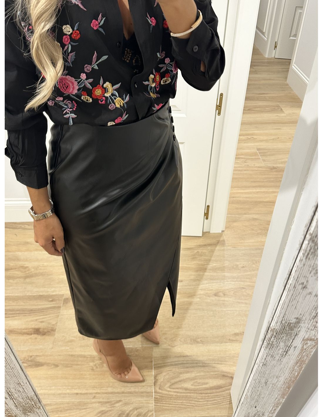 Falda polipiel negra con botones