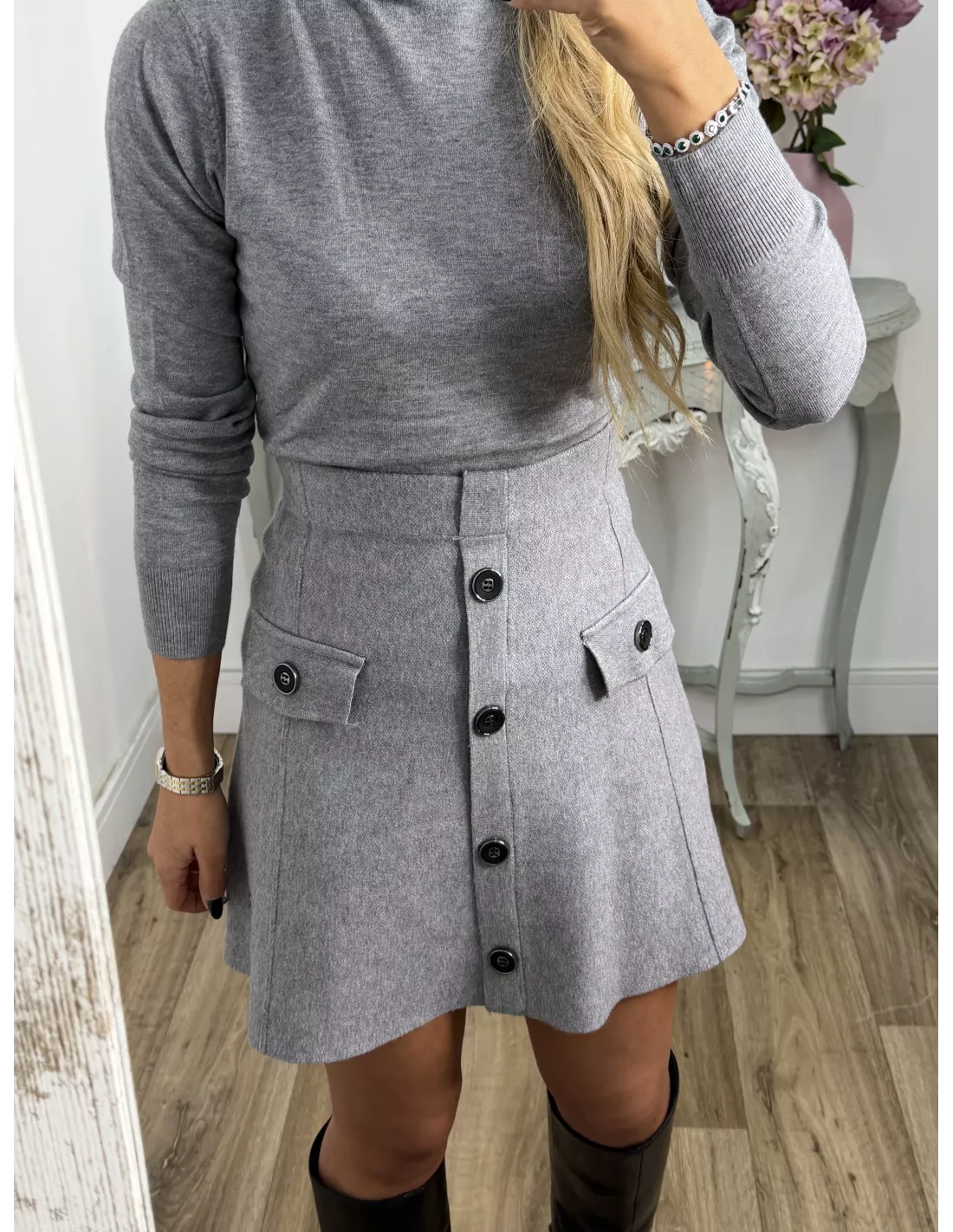 Falda de punto con botones que son de adorno. El tejido de punto es muy gustoso. lleva goma en la cintura y es estrechita de la cintura.