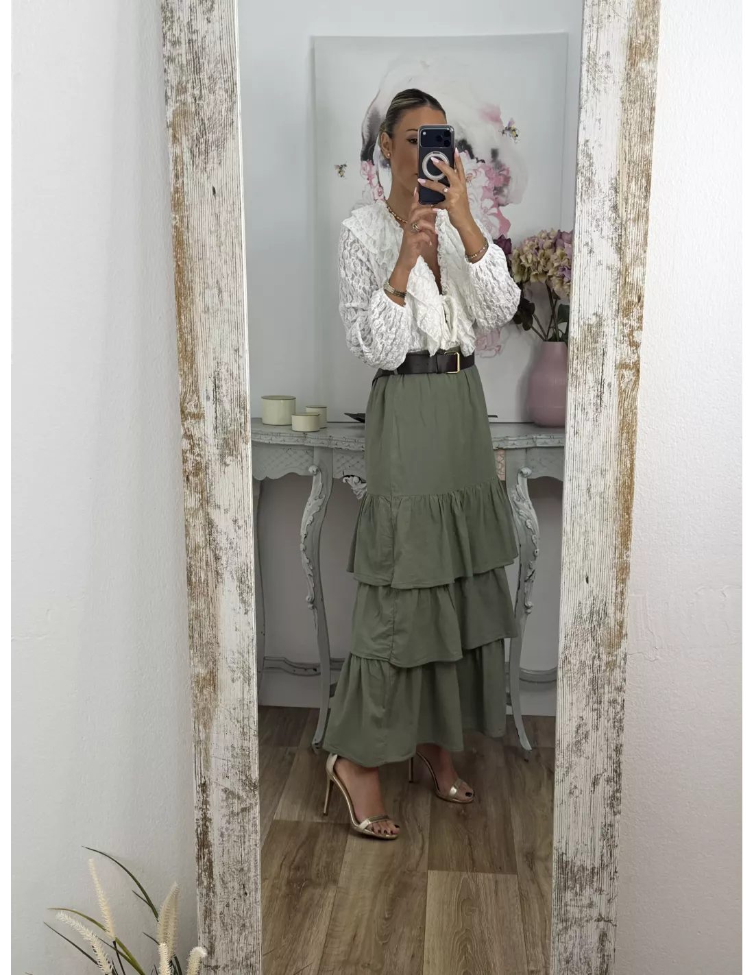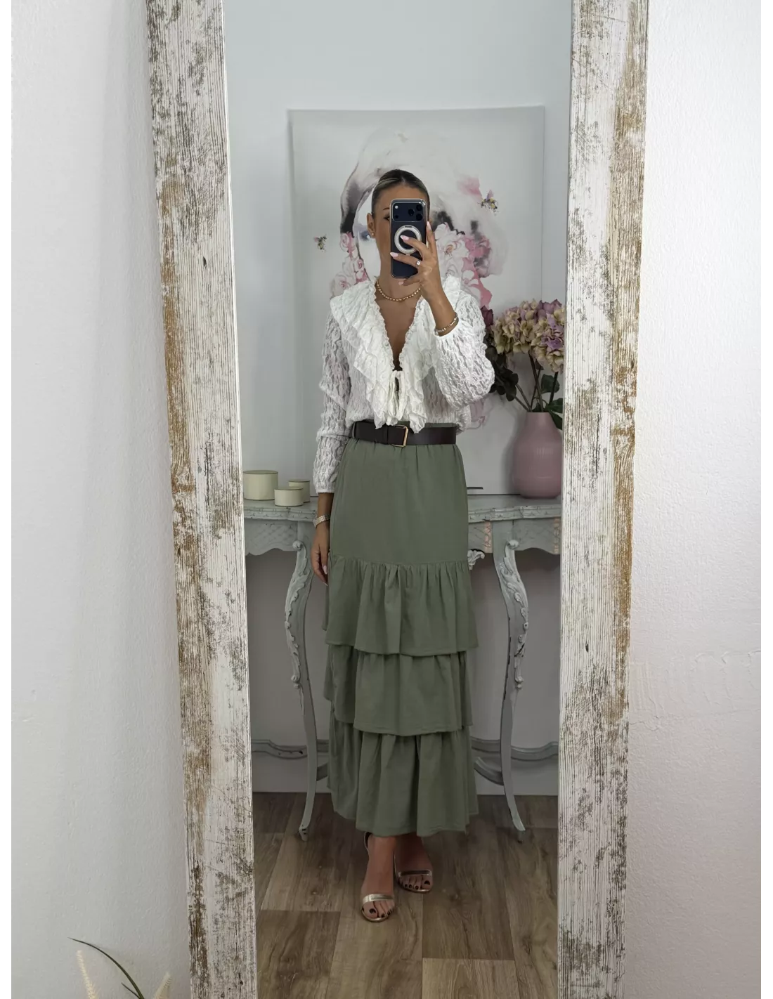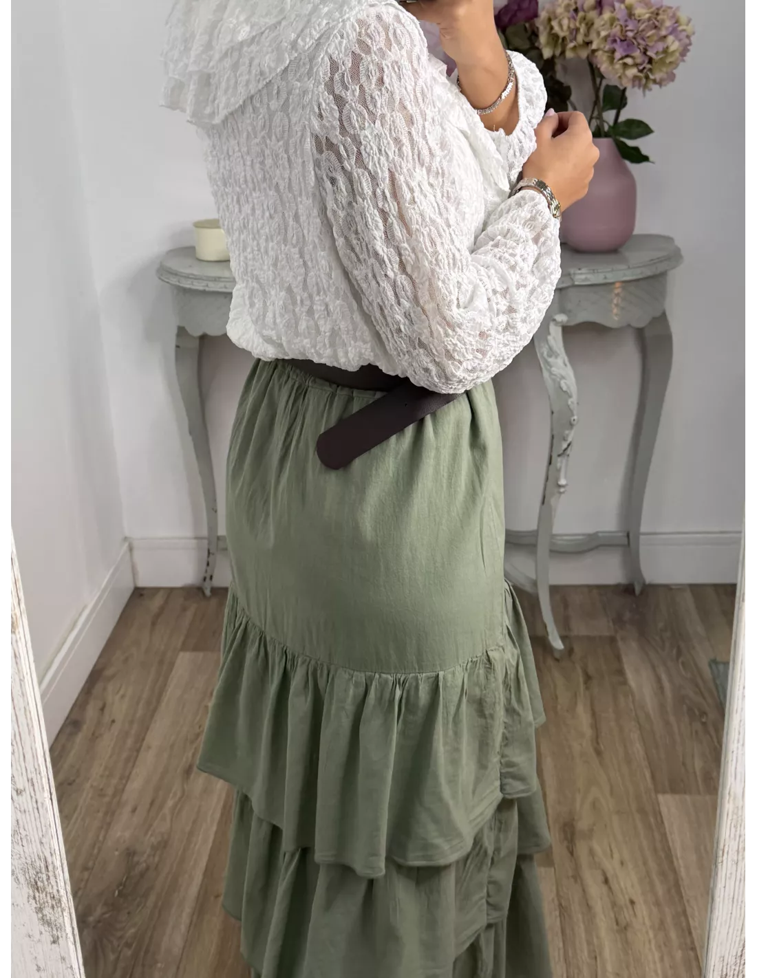 Falda verde volante con cinturón