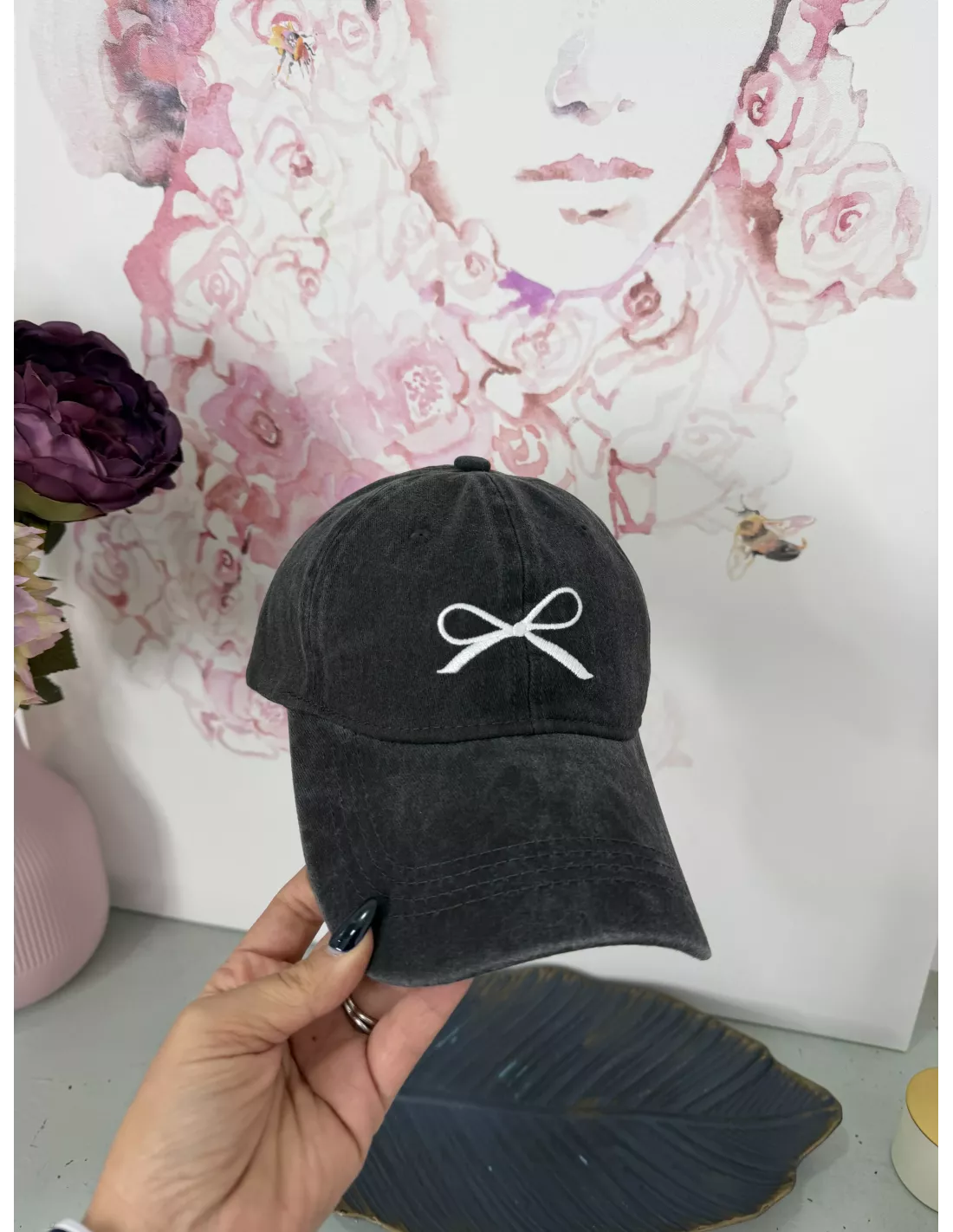 Gorra con lazo bordado