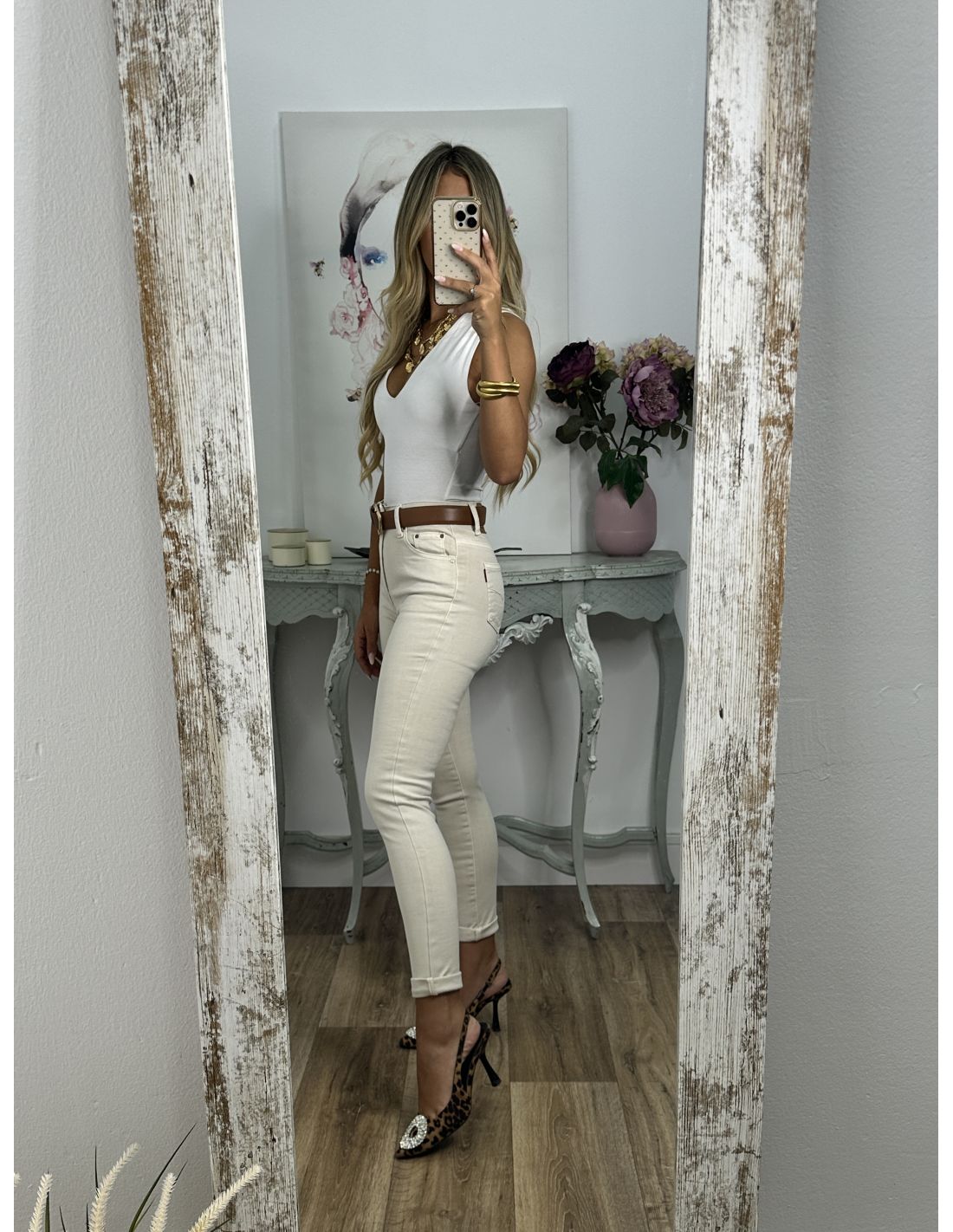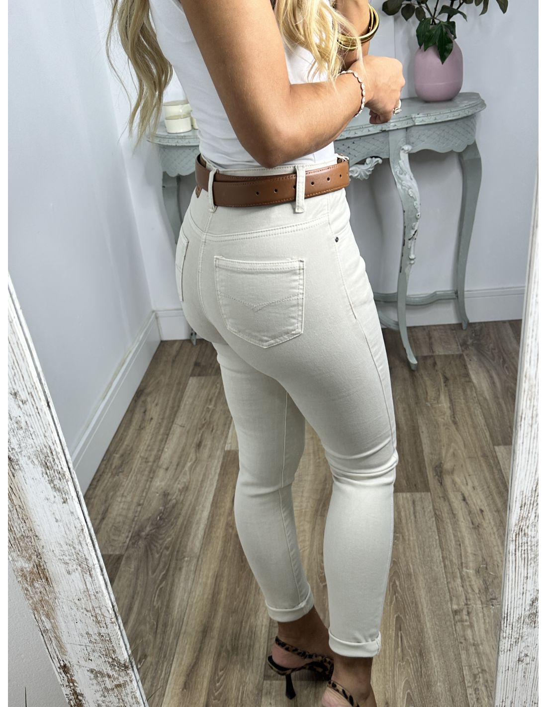 Jeans elásticos de tiro medio. Son es elástico. Si te gustan muy ajustados puedes coger una talla menos. Si estas entre dos tallas coger la talla más pequeña.
