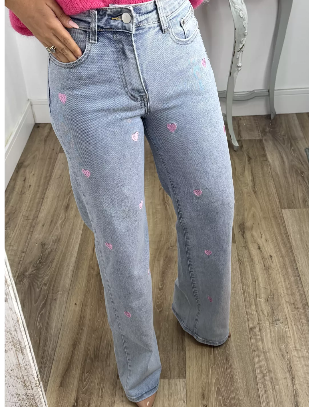 Jeans corazones rosa