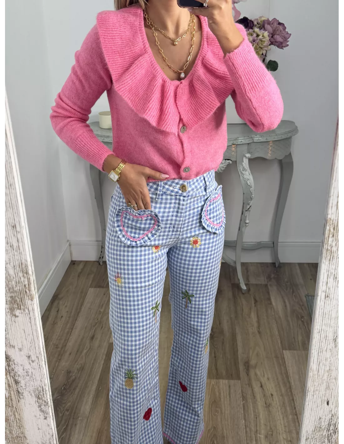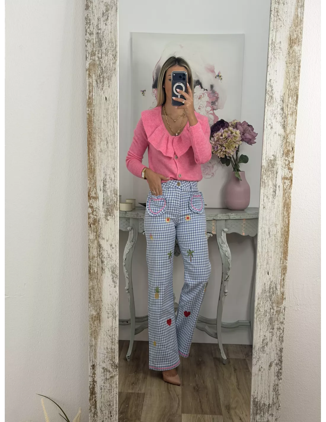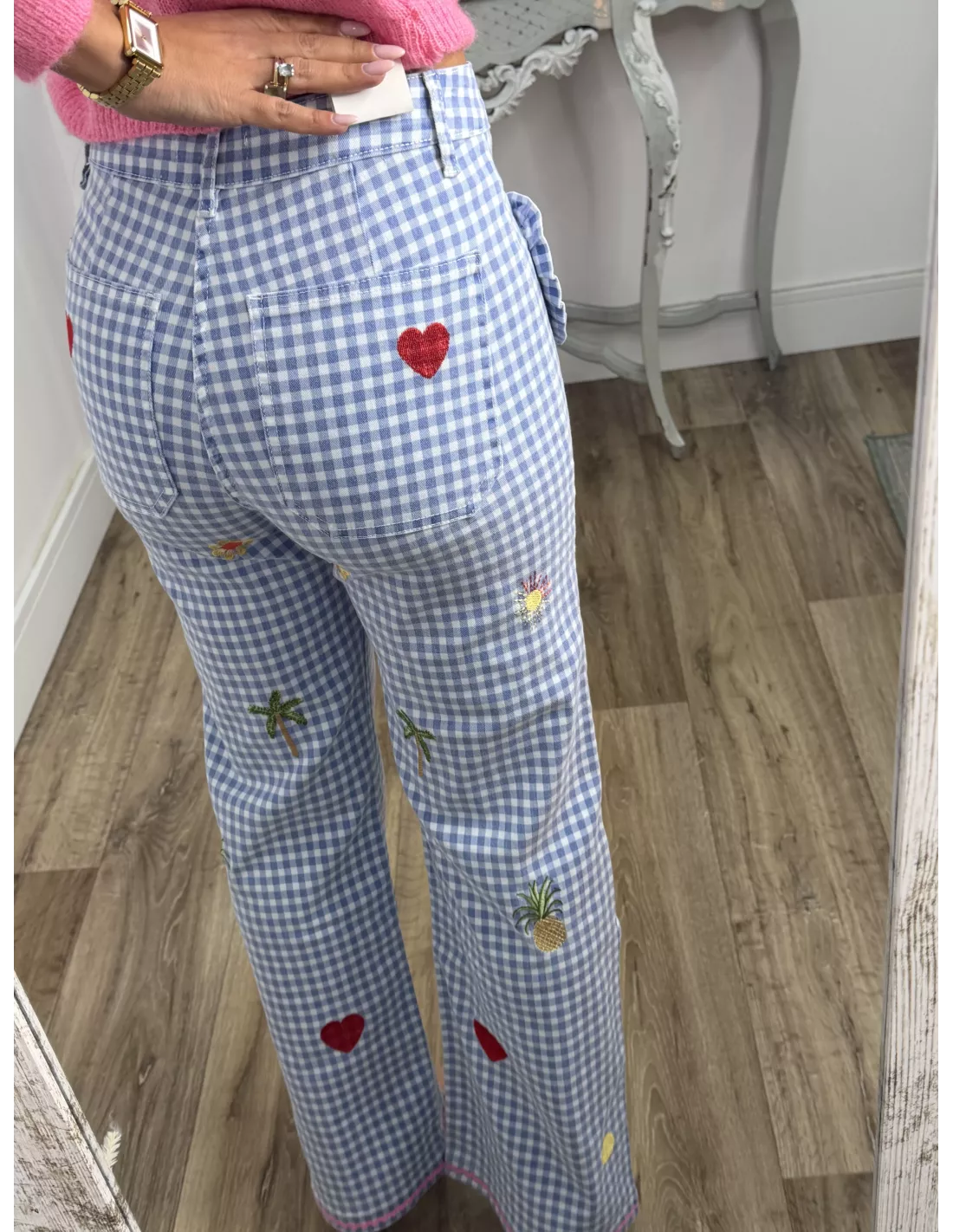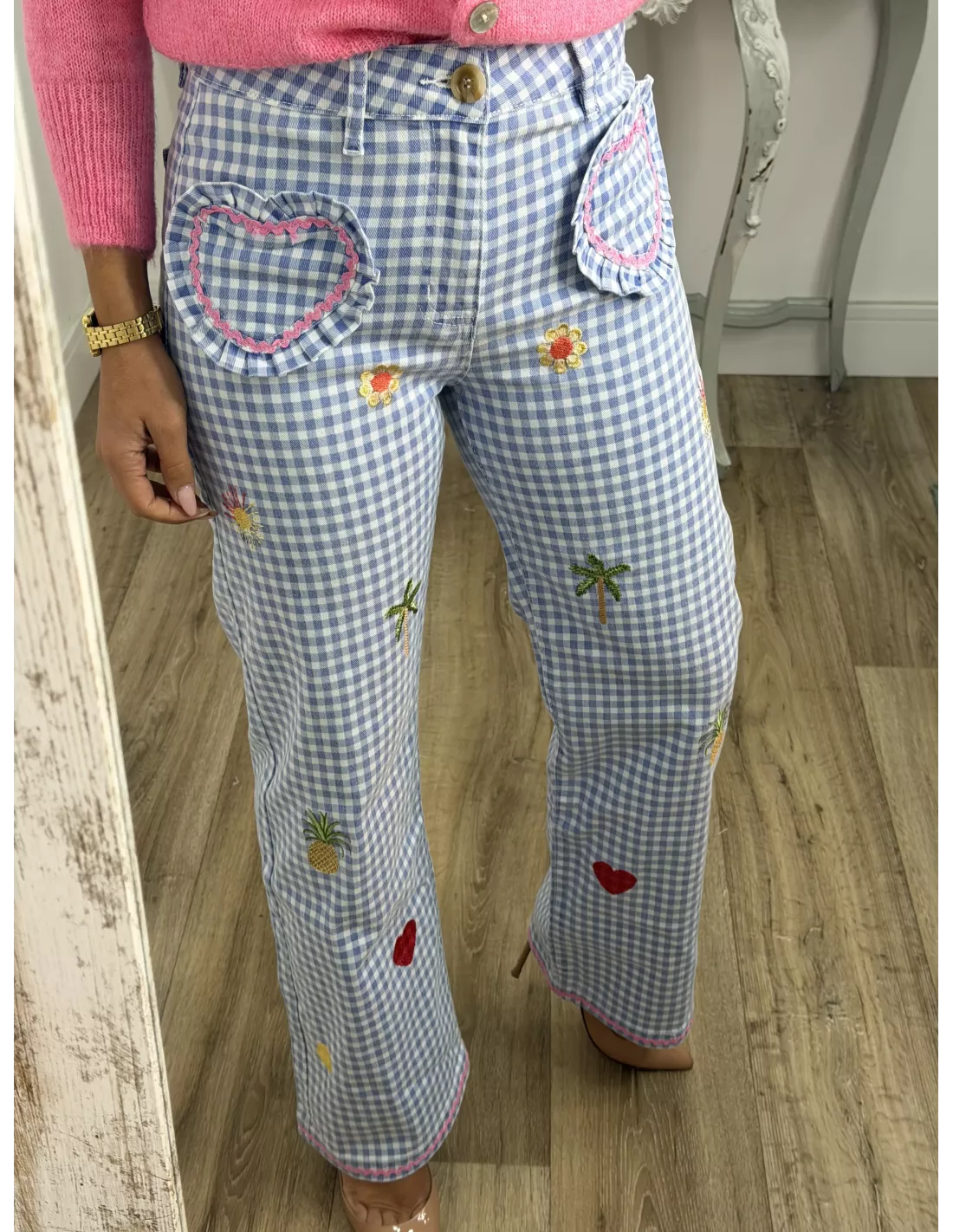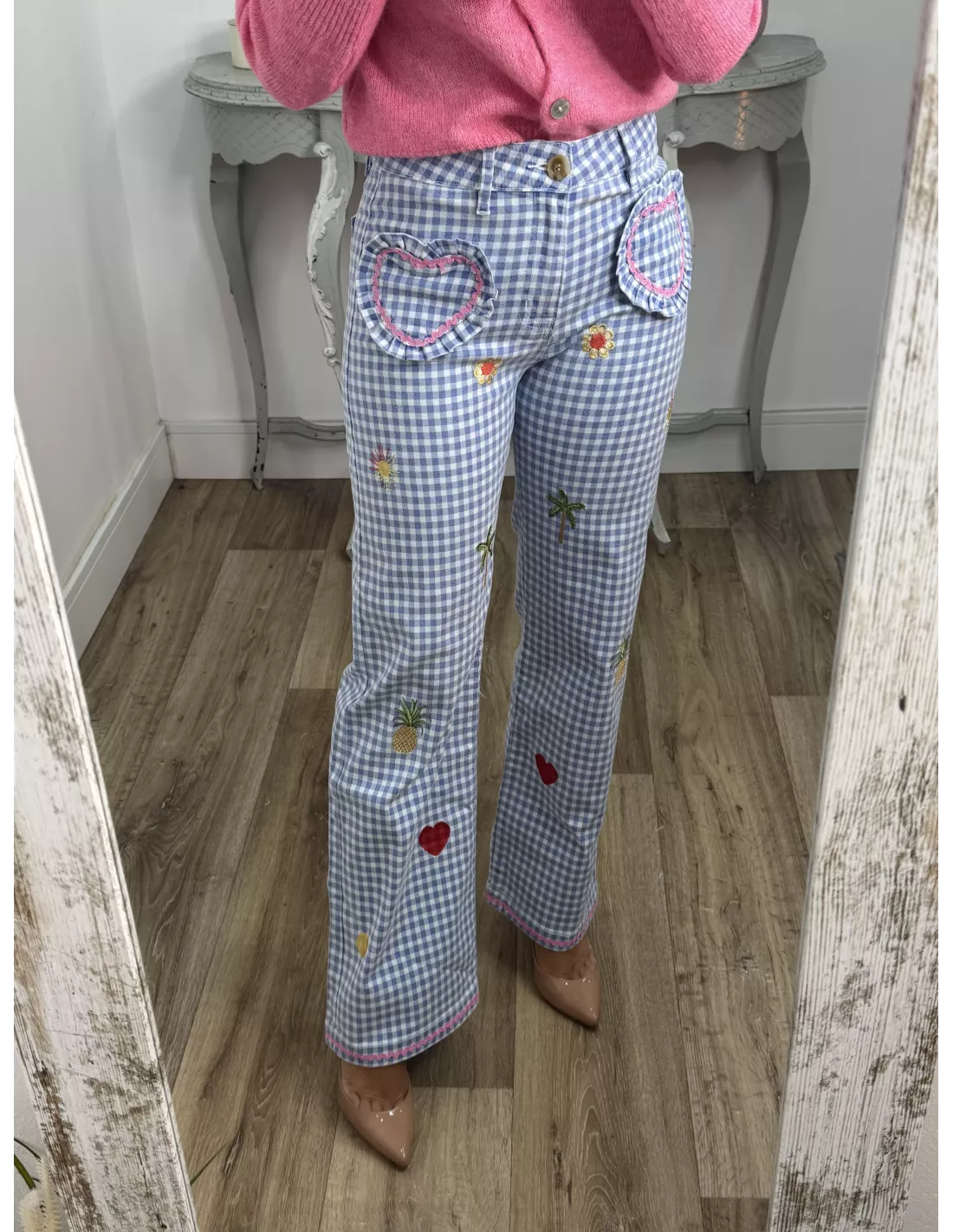 Jeans de corte con bordados, no tapa el zapato.Recomendamos la talla habitual, si estás entre dos tallas coger la talla mayor.