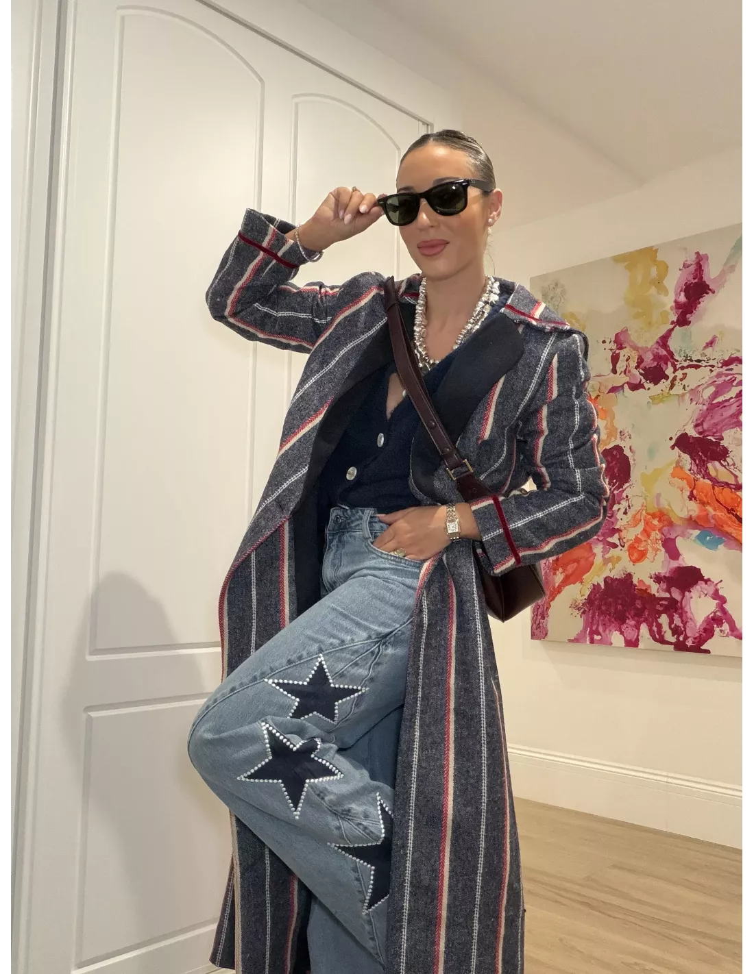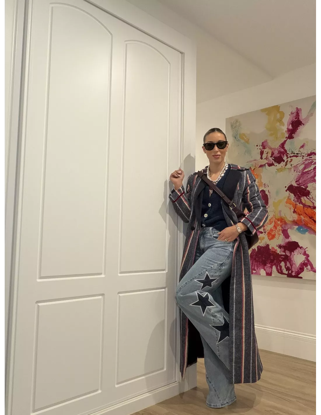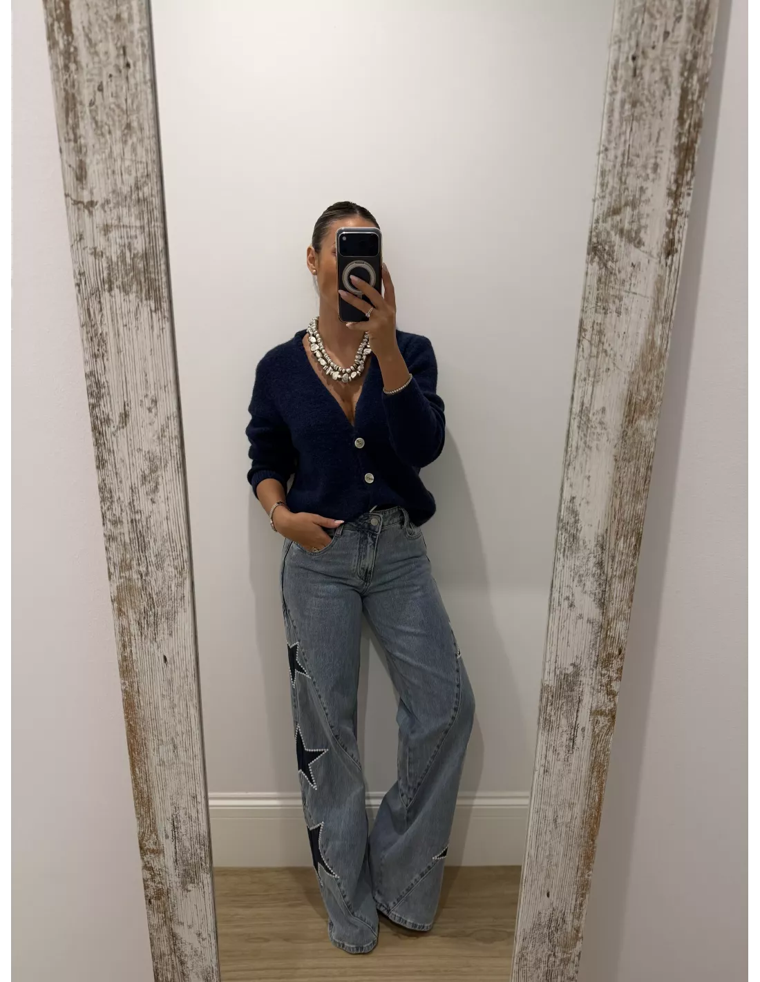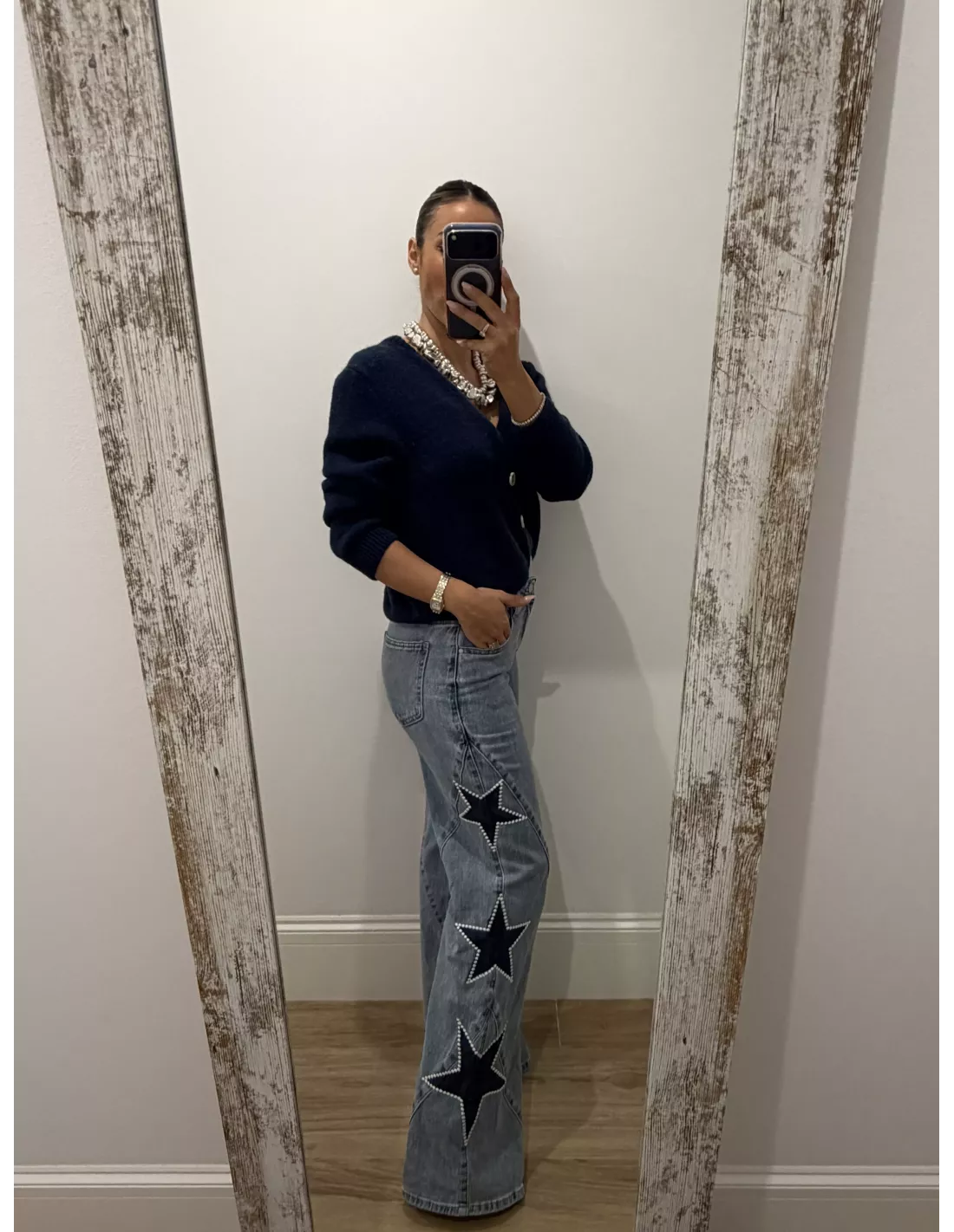 Jeans de corte recto y ancho, lleva el dibujo de unas estrellas en la costura lateral.Recomendamos la talla habitual, si estás entre dos tallas coger la talla mayor.