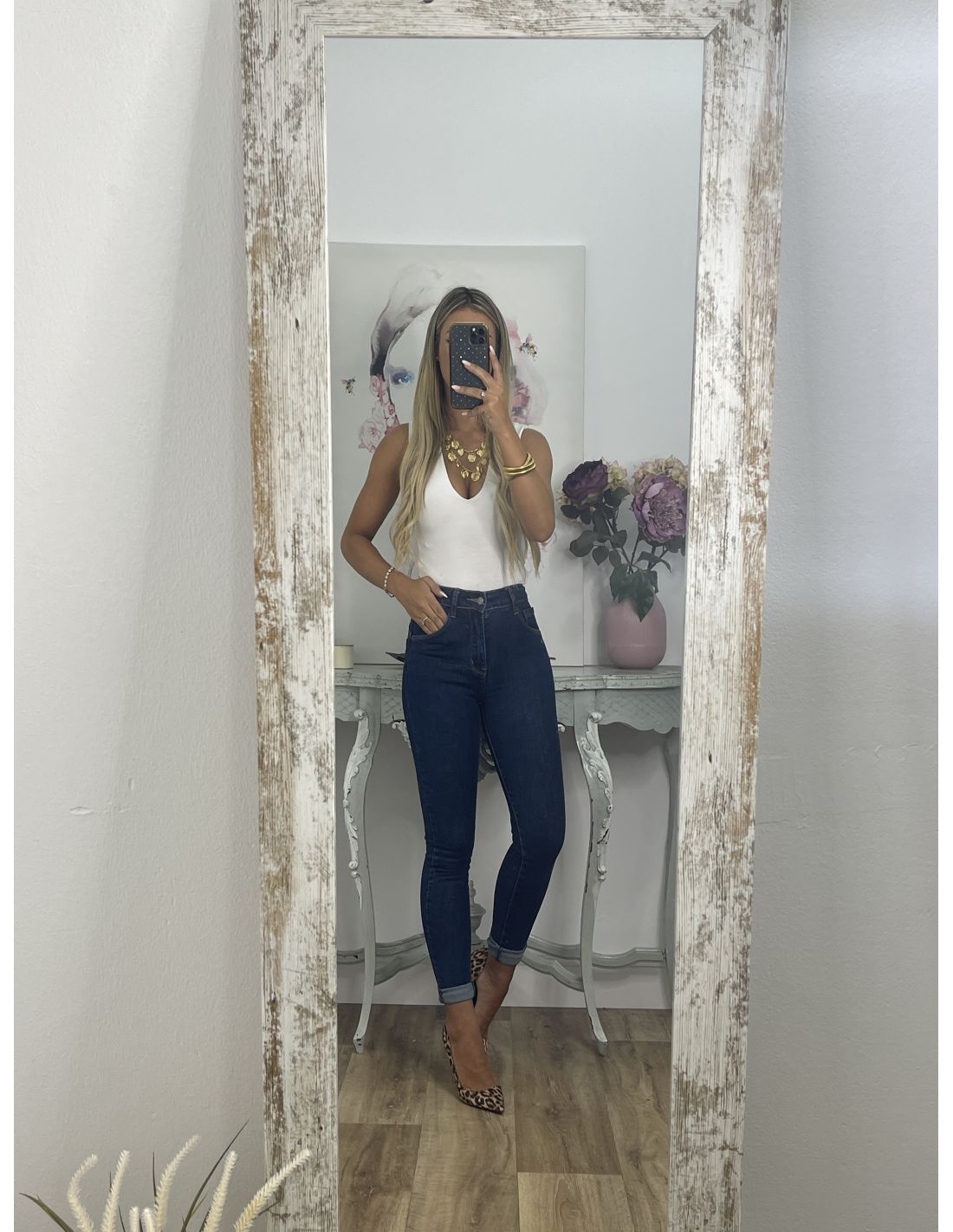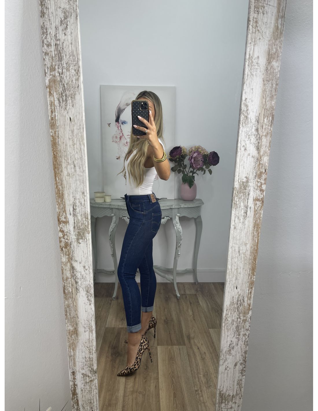 Jeans elásticos de tiro medio. Recomendamos la talla habitual, es elástico. Si te gustan muy ajustados puedes coger una talla menos.