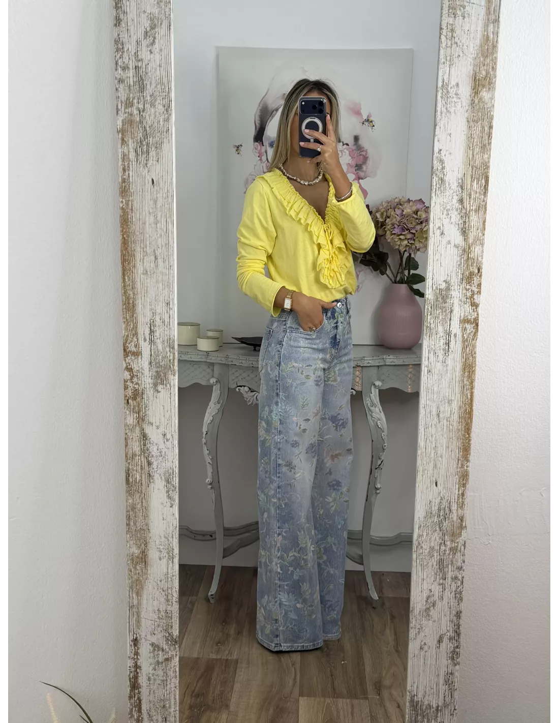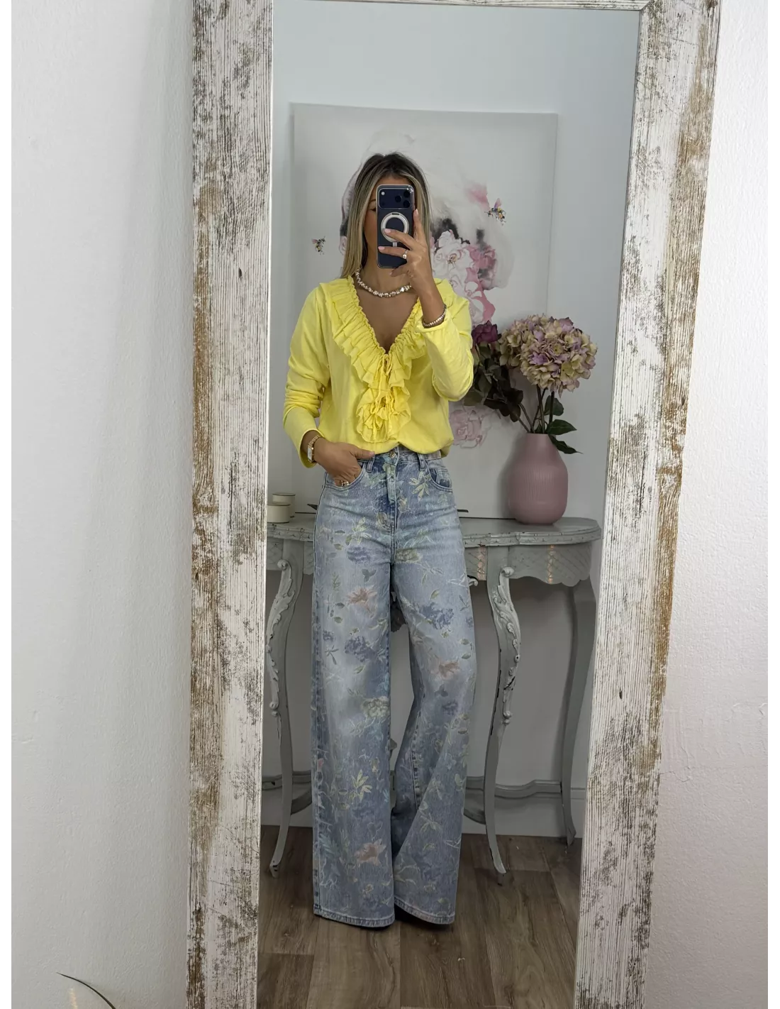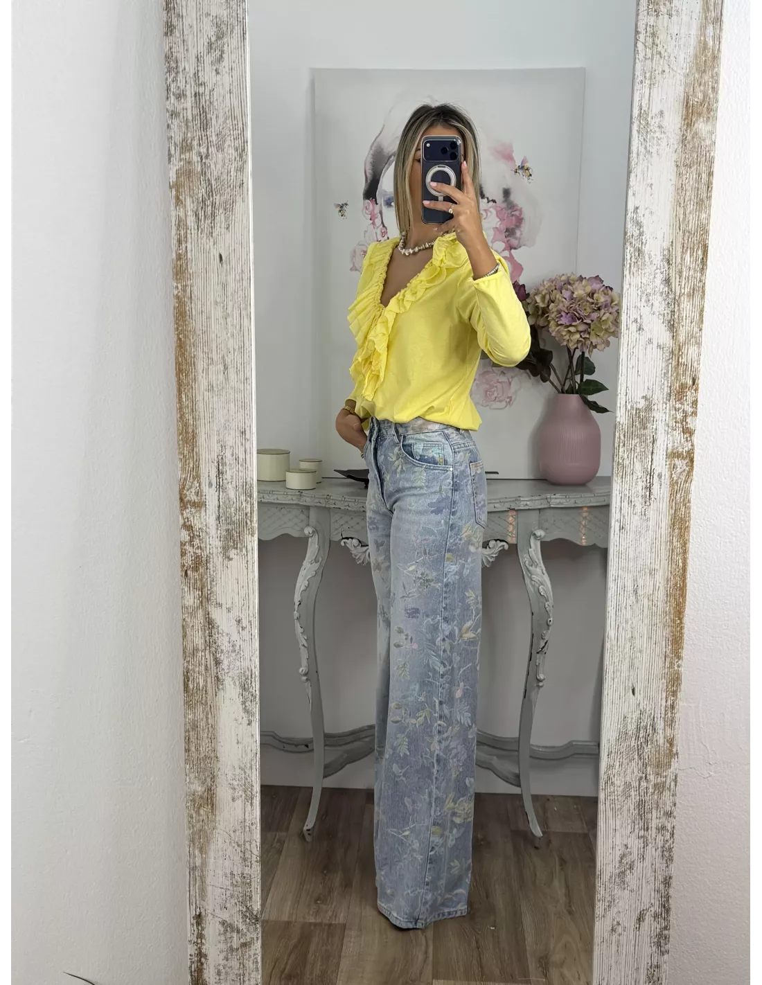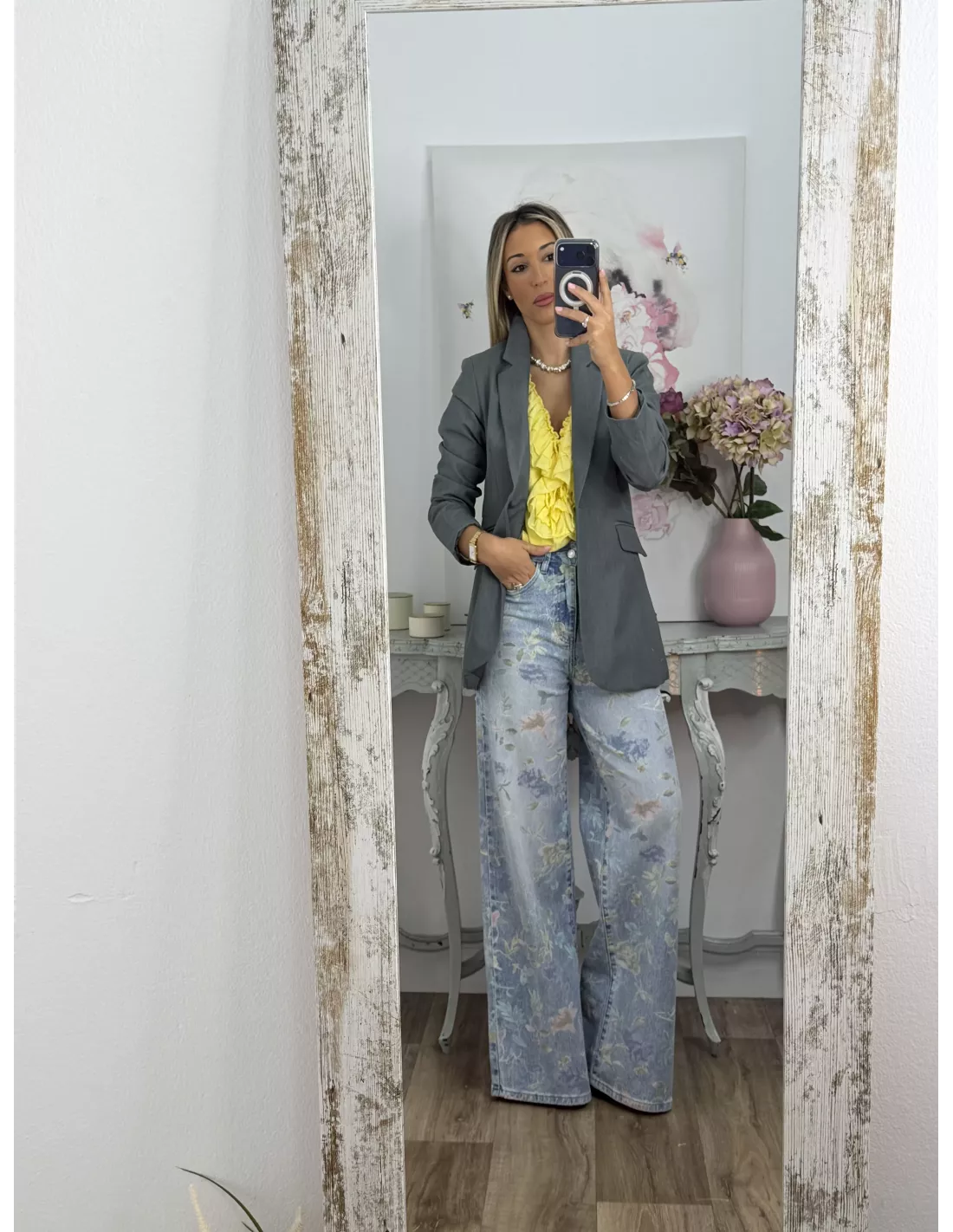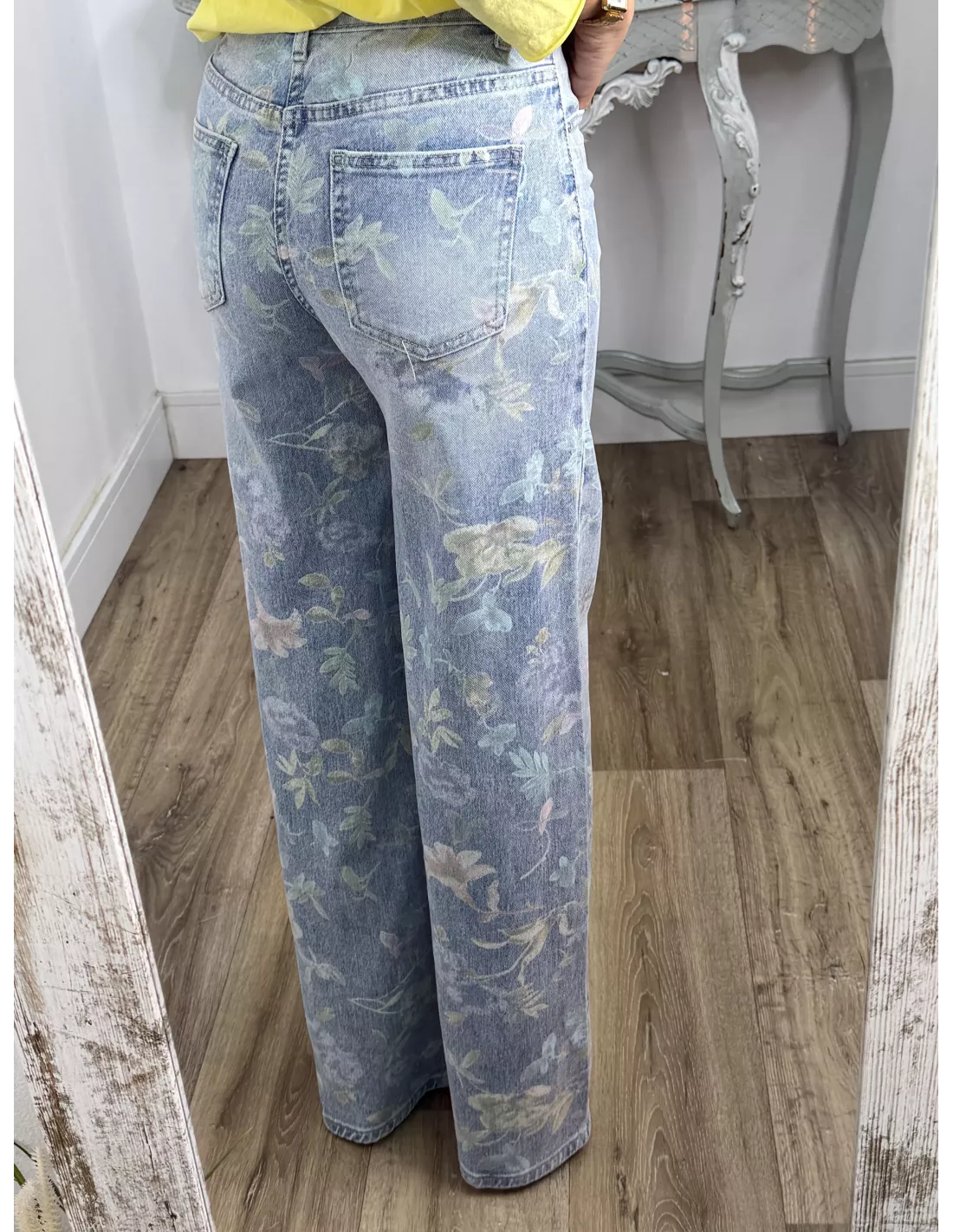 Jeans con dibujo, de corte recto y ancho. Tiro medio alto. Son elásticos. Recomendamos si estás entre dos tallas coger la más pequeña y sino una menos de la habitual.