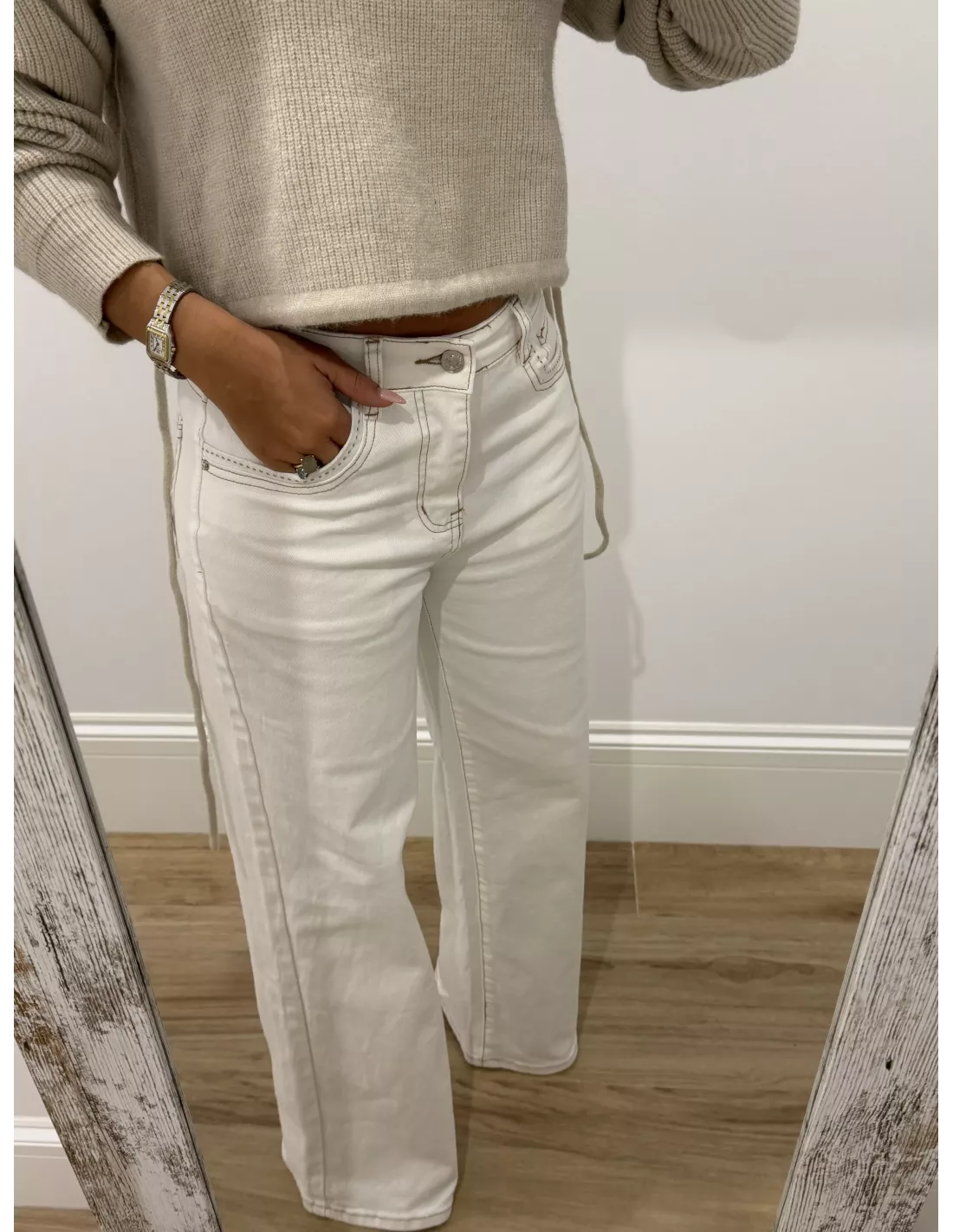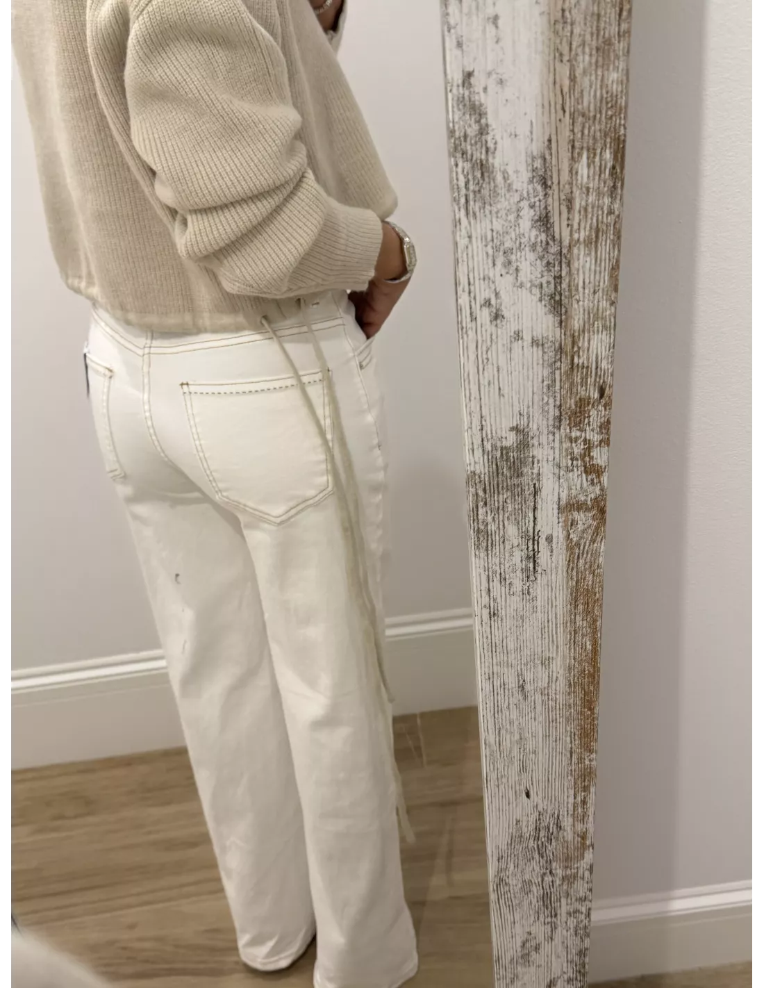 Jeans de tiro medio alto y elástico. El corte es ajustado en la zona del culete y luego suelto. Recomendamos la talla habitual.