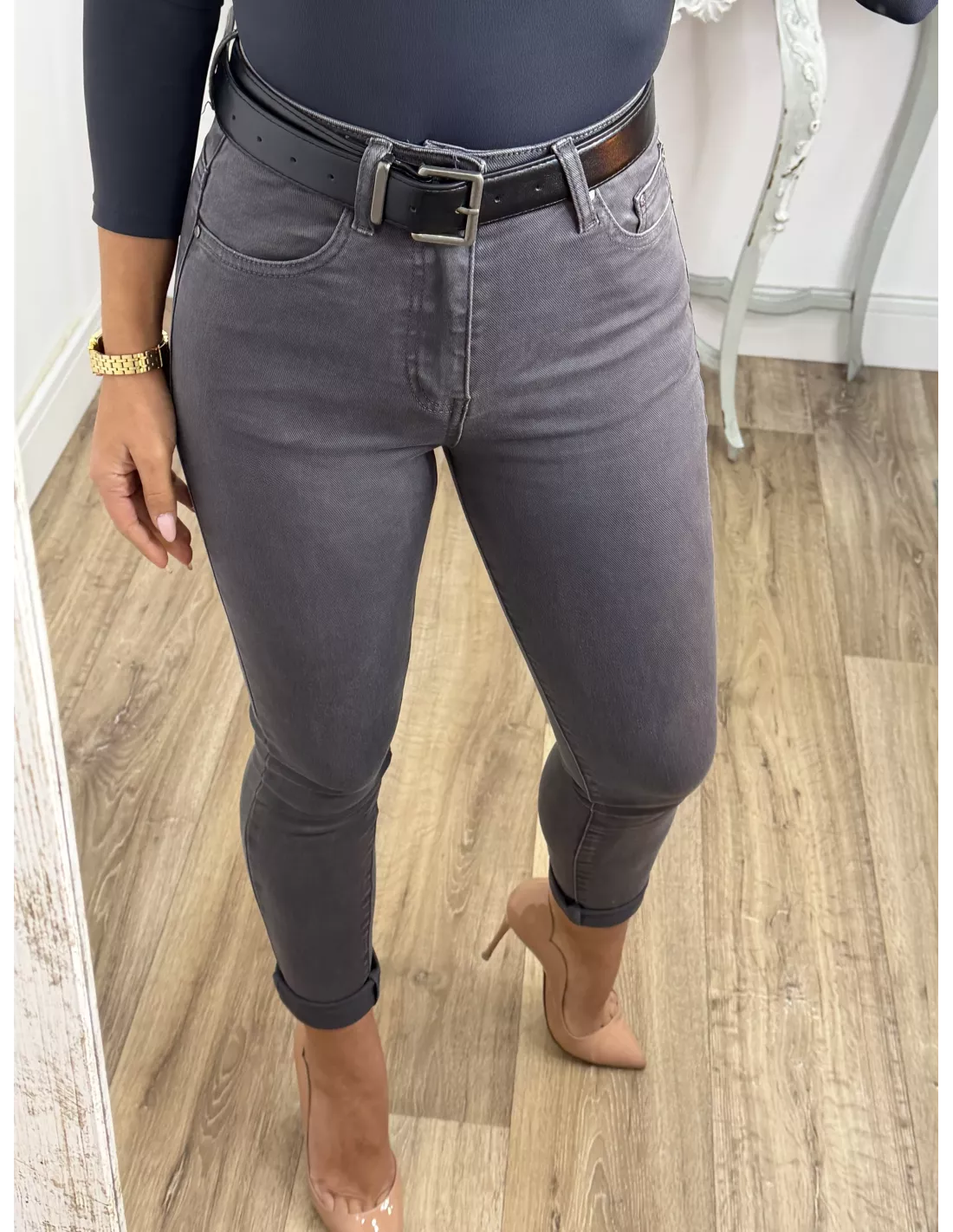 Jeans gris plomo etiqueta roja