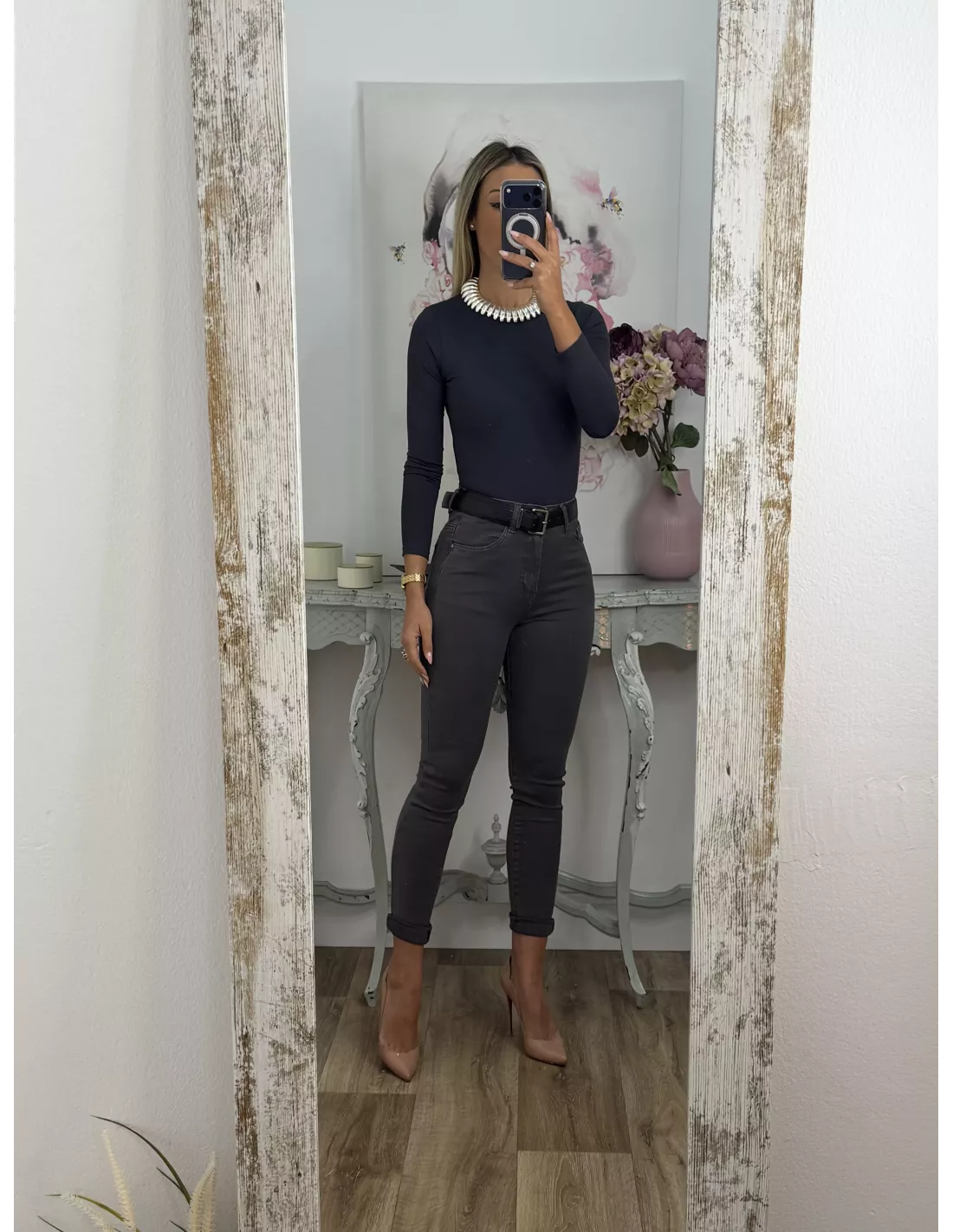 Jeans elásticos de tiro medio. Recomendamos la talla habitual, es elástico. Si te gustan muy ajustados puedes coger una talla menos.