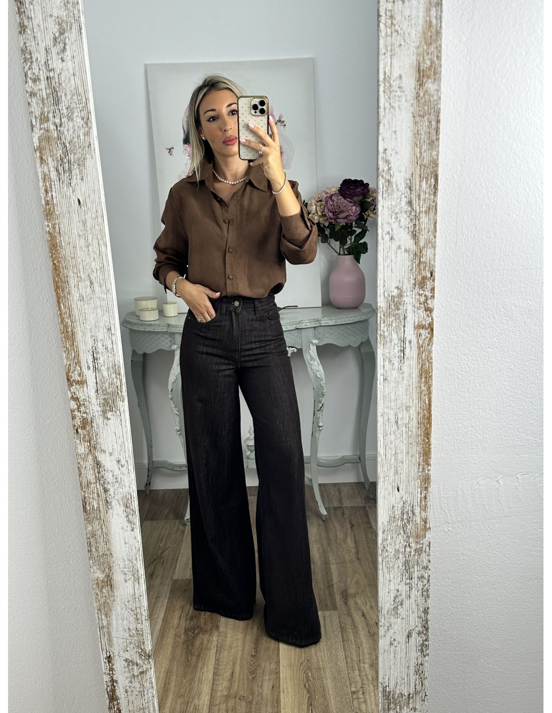 Jeans de tiro medio alto y elástico. El corte es ajustado en la zona del culete y luego suelto. Recomendamos la talla habitual, si estás entre dos tallas, coger la talla mayor.
