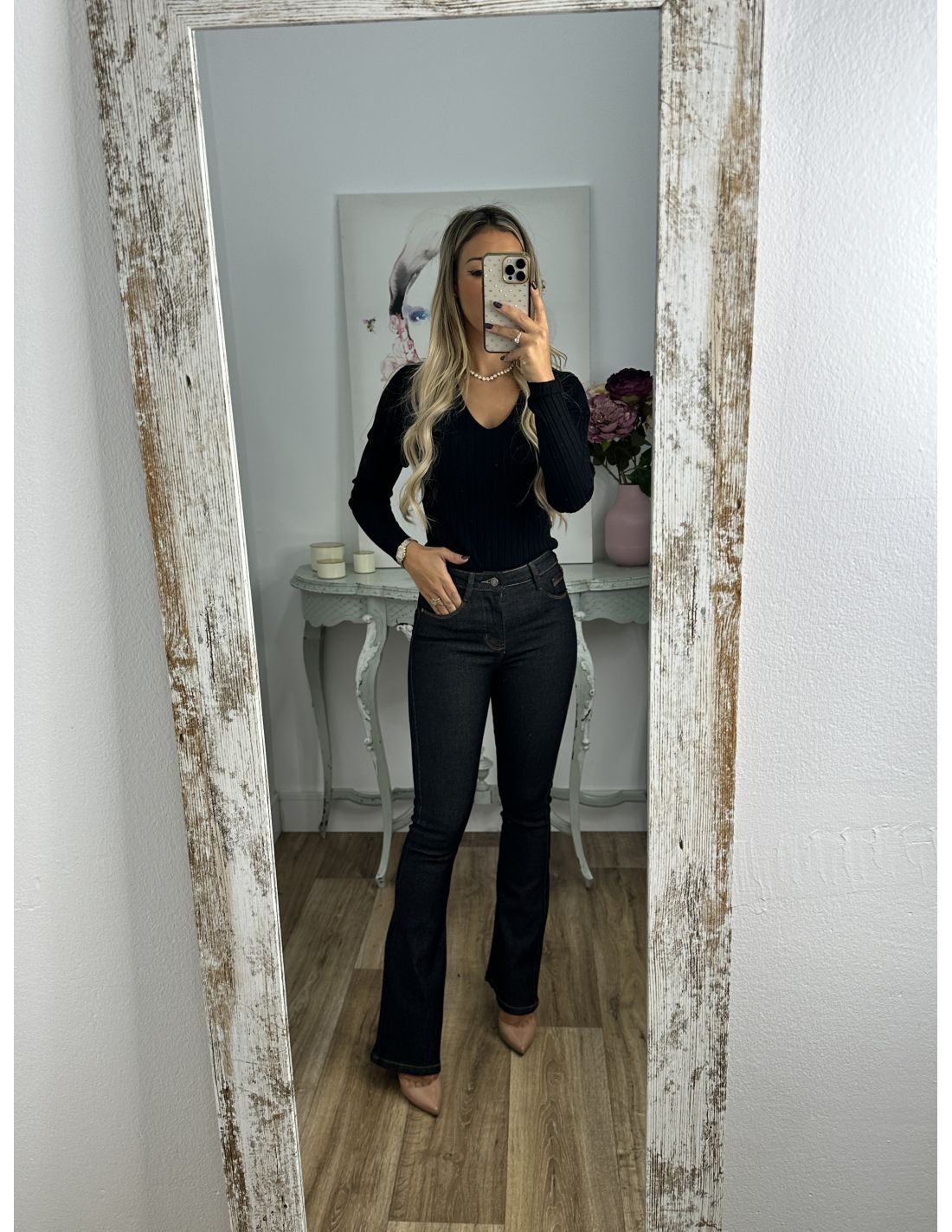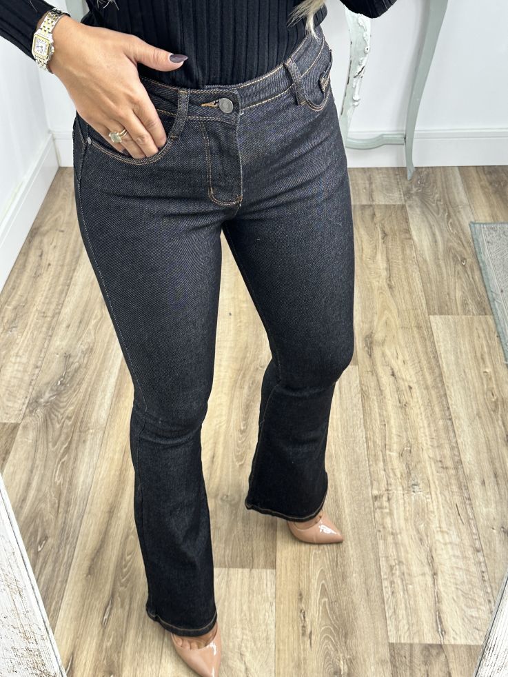 Jeans vaquero de campana. Talla normal recomendamos la talla habitual, si estás entre dos tallas coger la talla más pequeña. Si te gustan ajustados coger una talla menos de la habitual.Tiro medio por debajo justo del ombligo. Son elásticos.