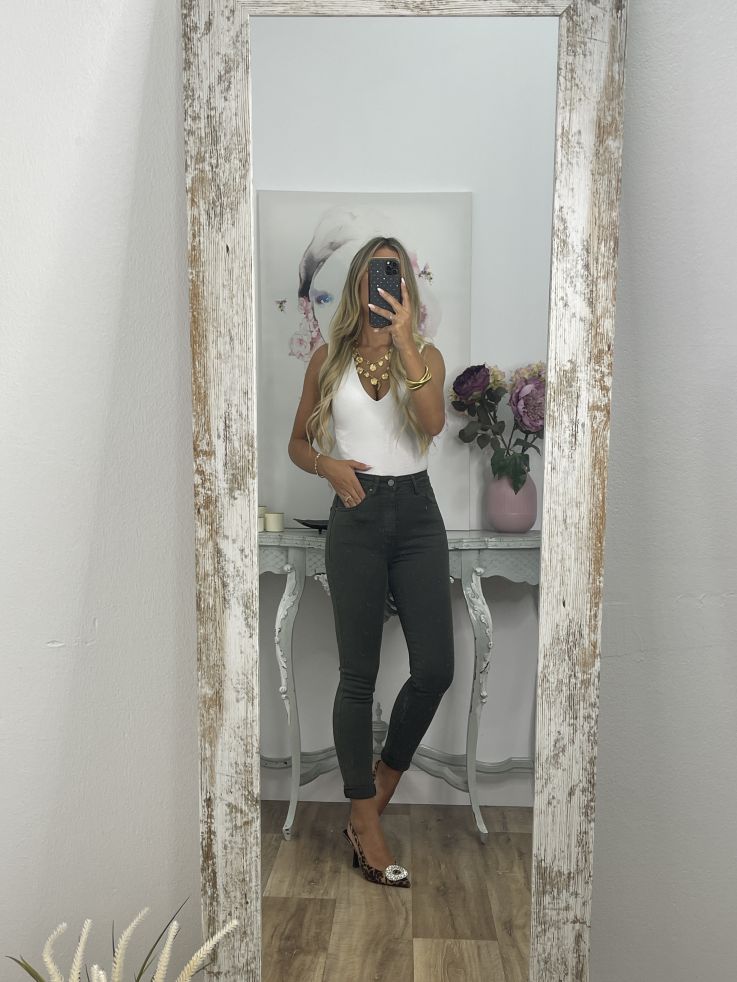 Jeans elásticos de tiro medio. Recomendamos la talla habitual, es elástico. Si te gustan muy ajustados puedes coger una talla menos.