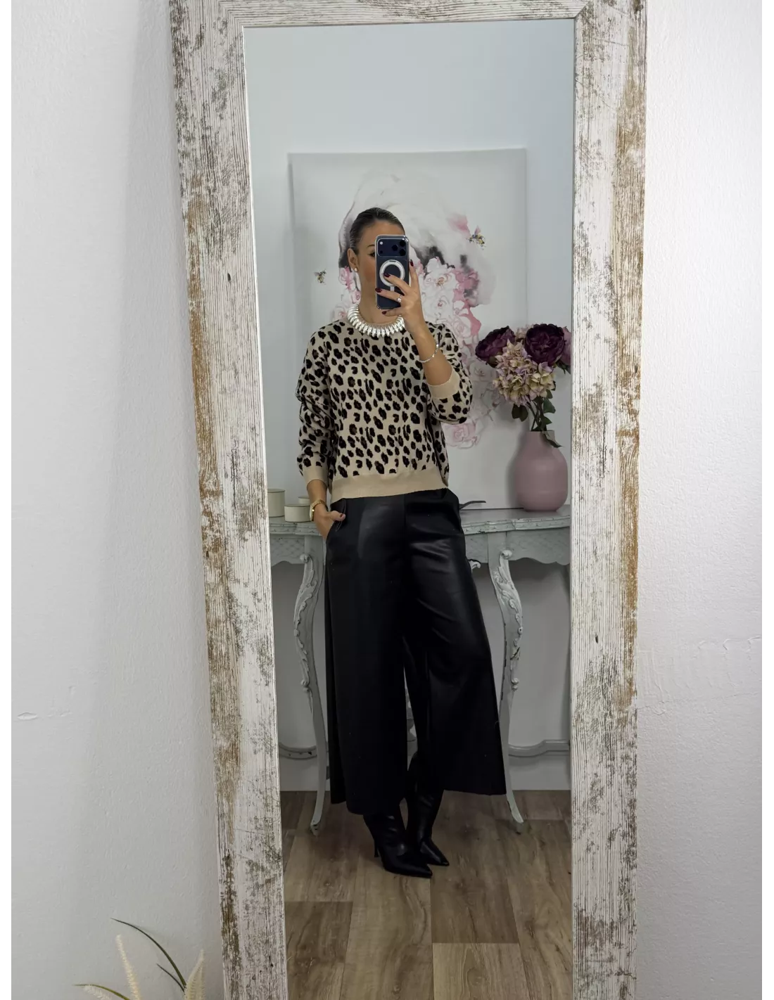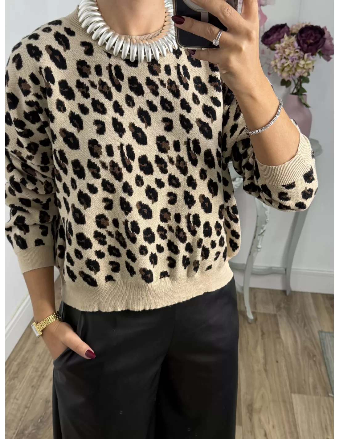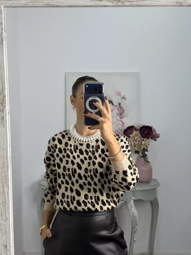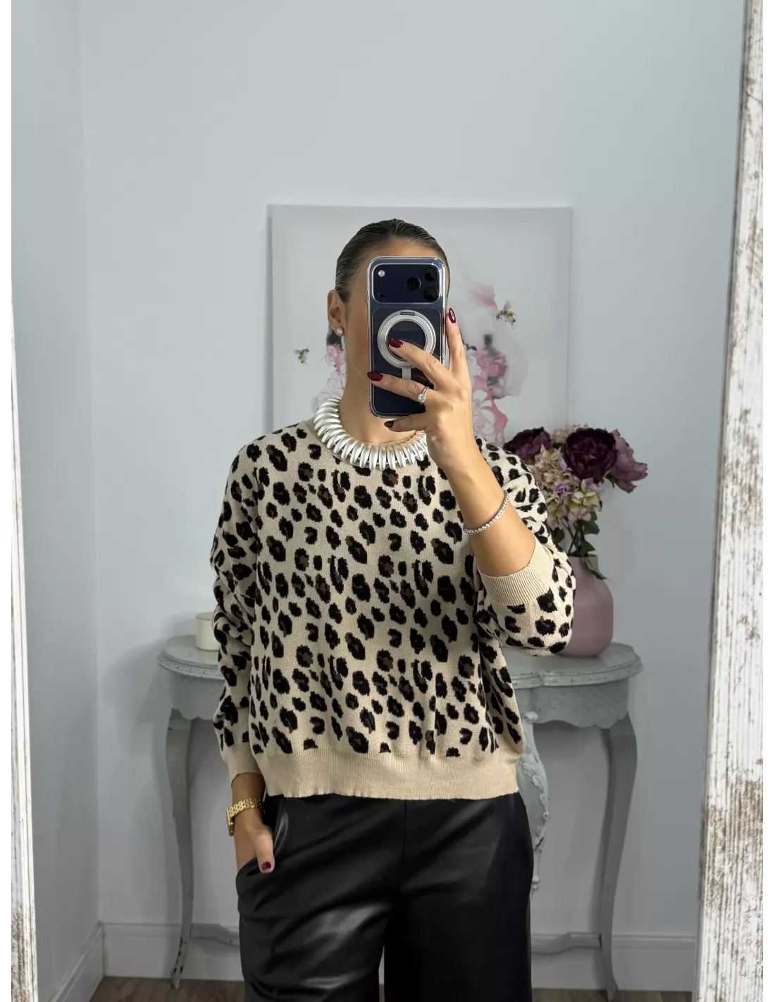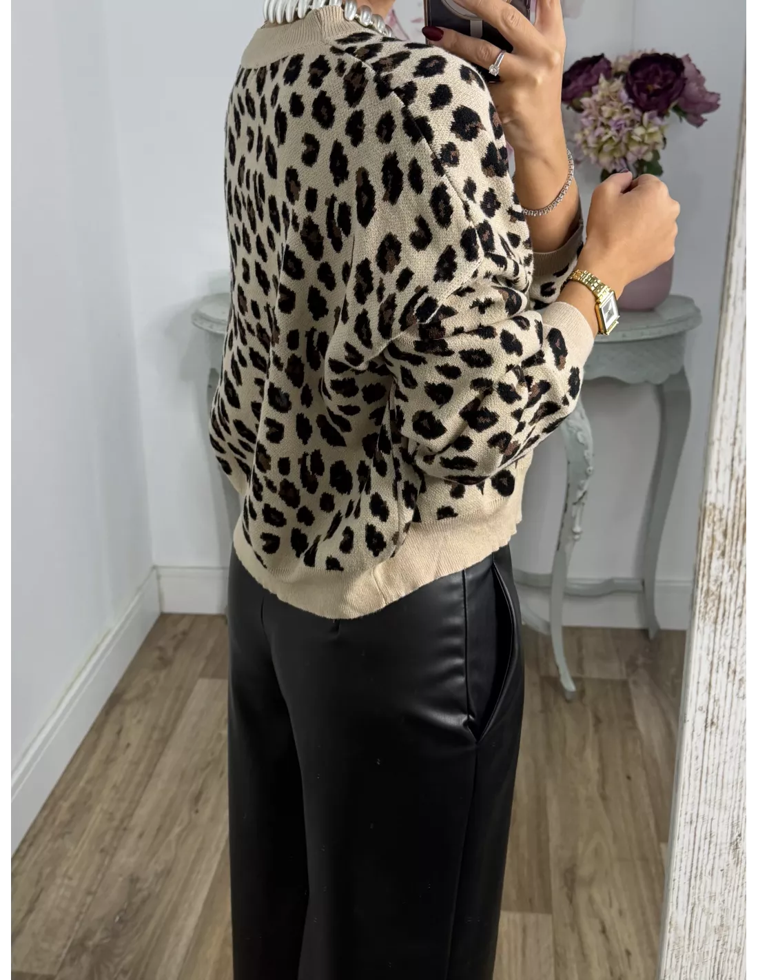 Jersey de cuello a ala caja de tacto muy suave. Estampado animal print.