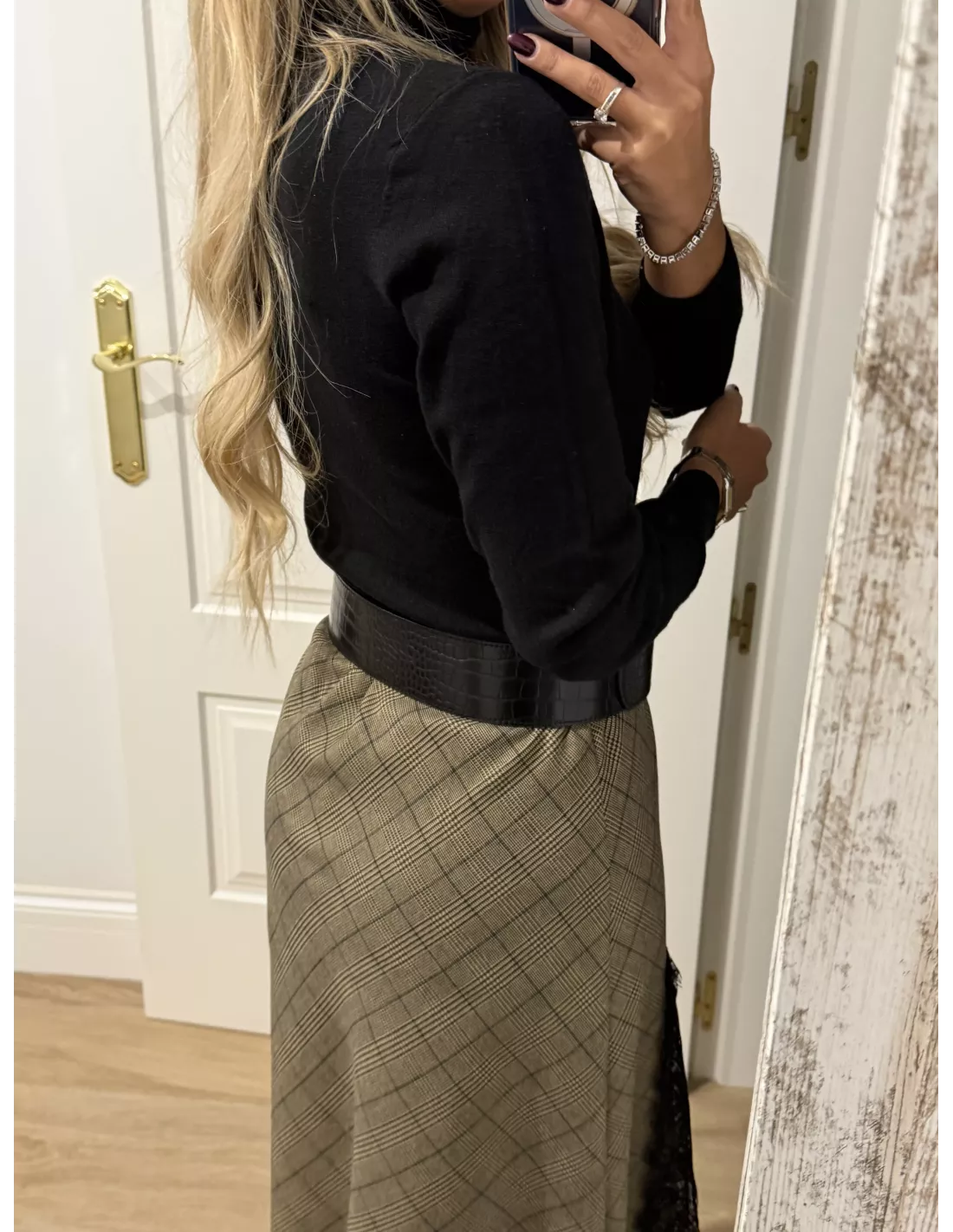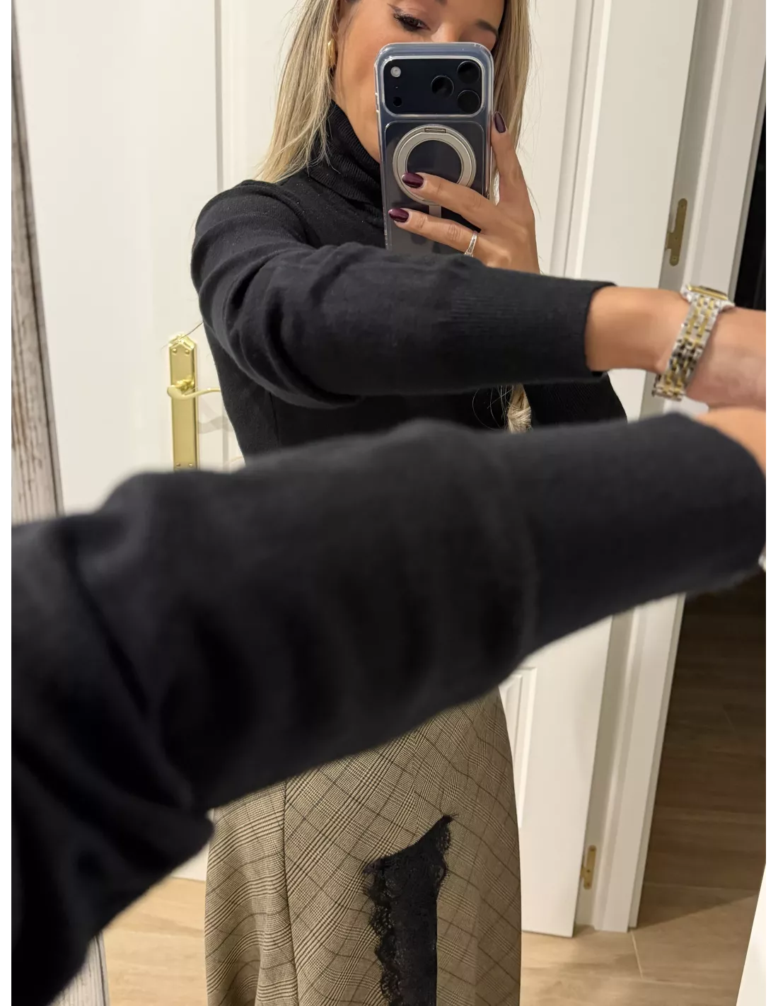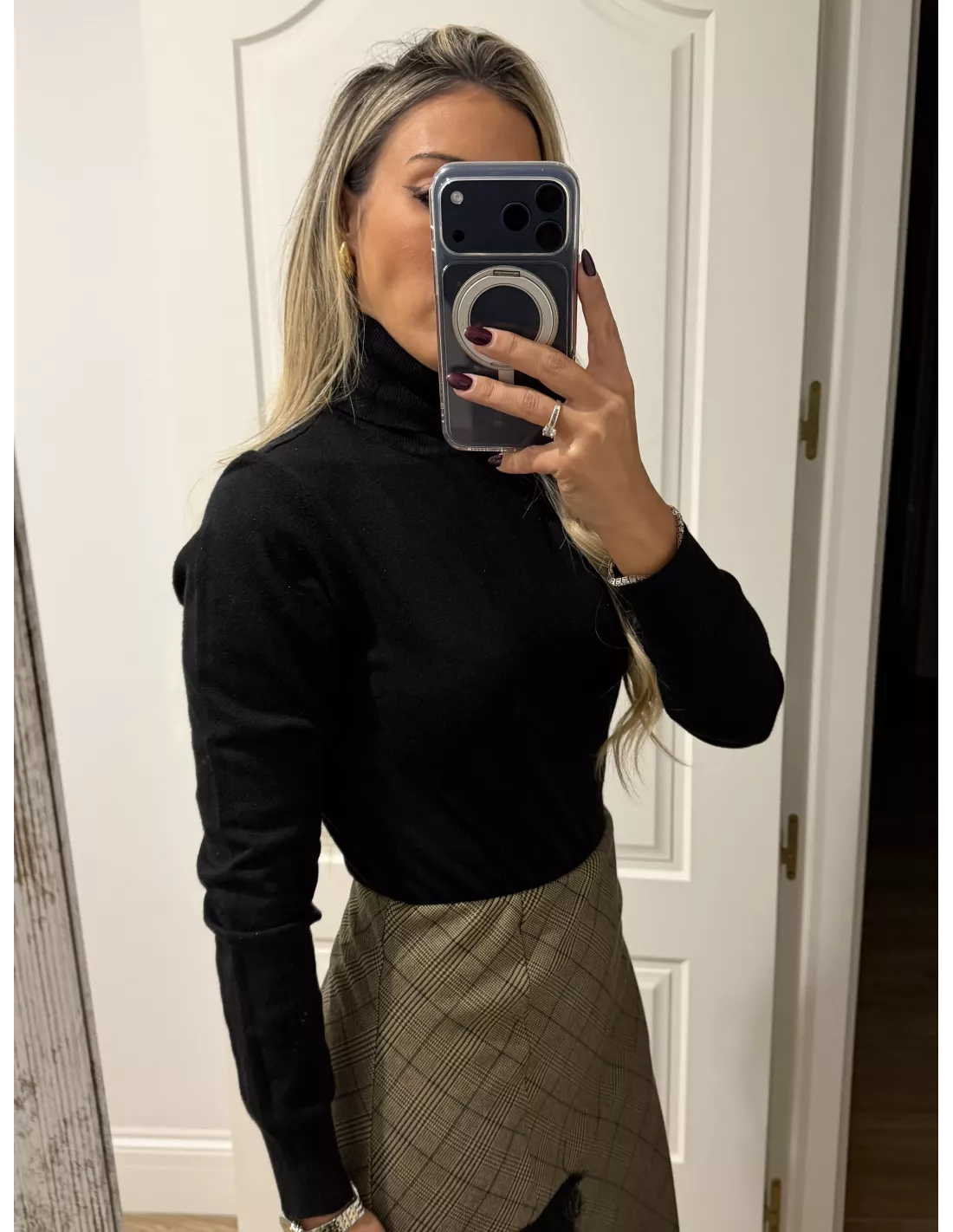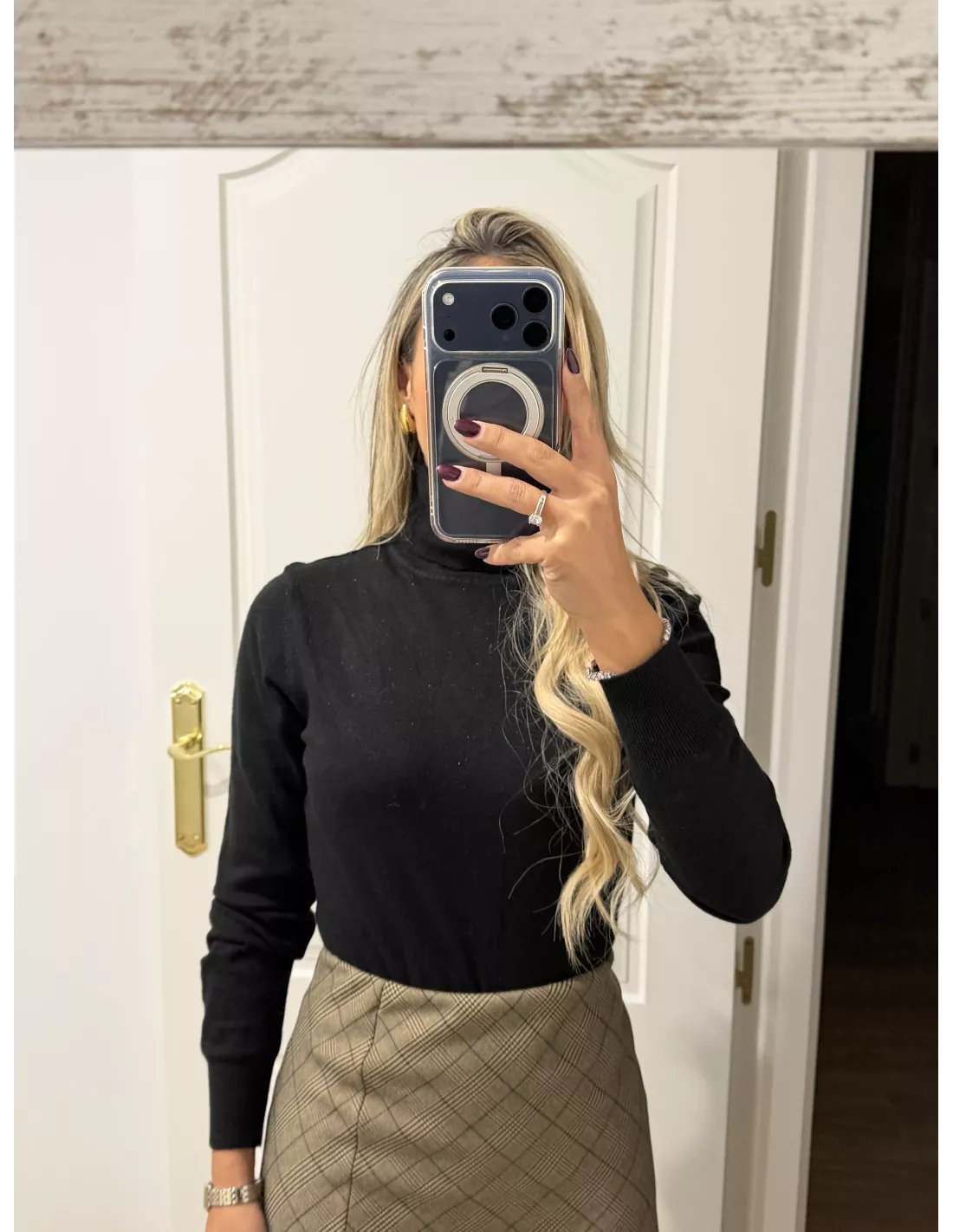 Jersey de cuello alto. Es ajustadito, el cuello no aprieta.