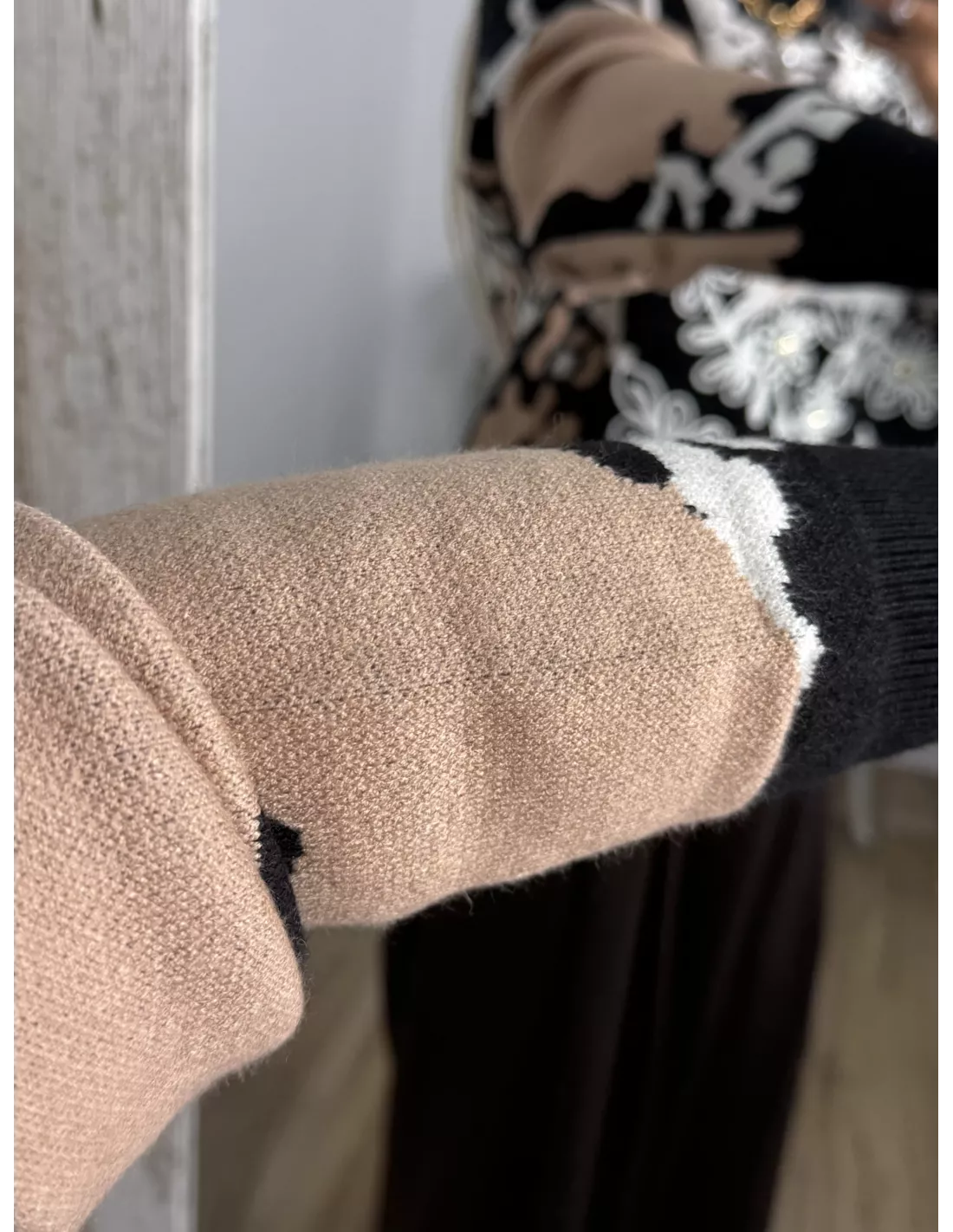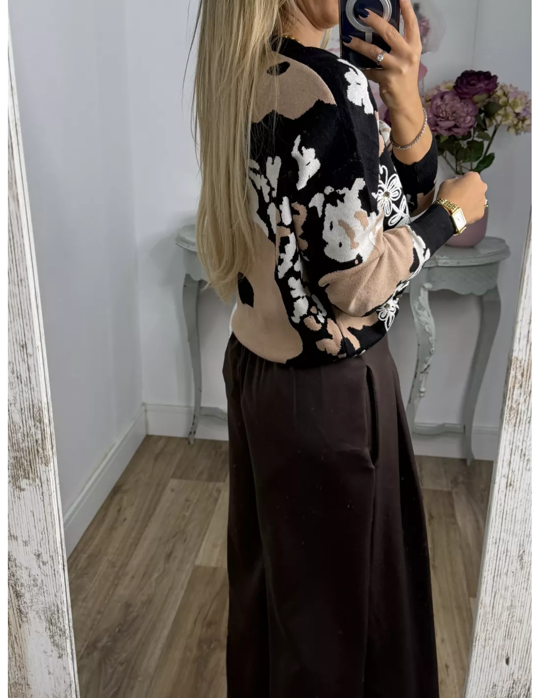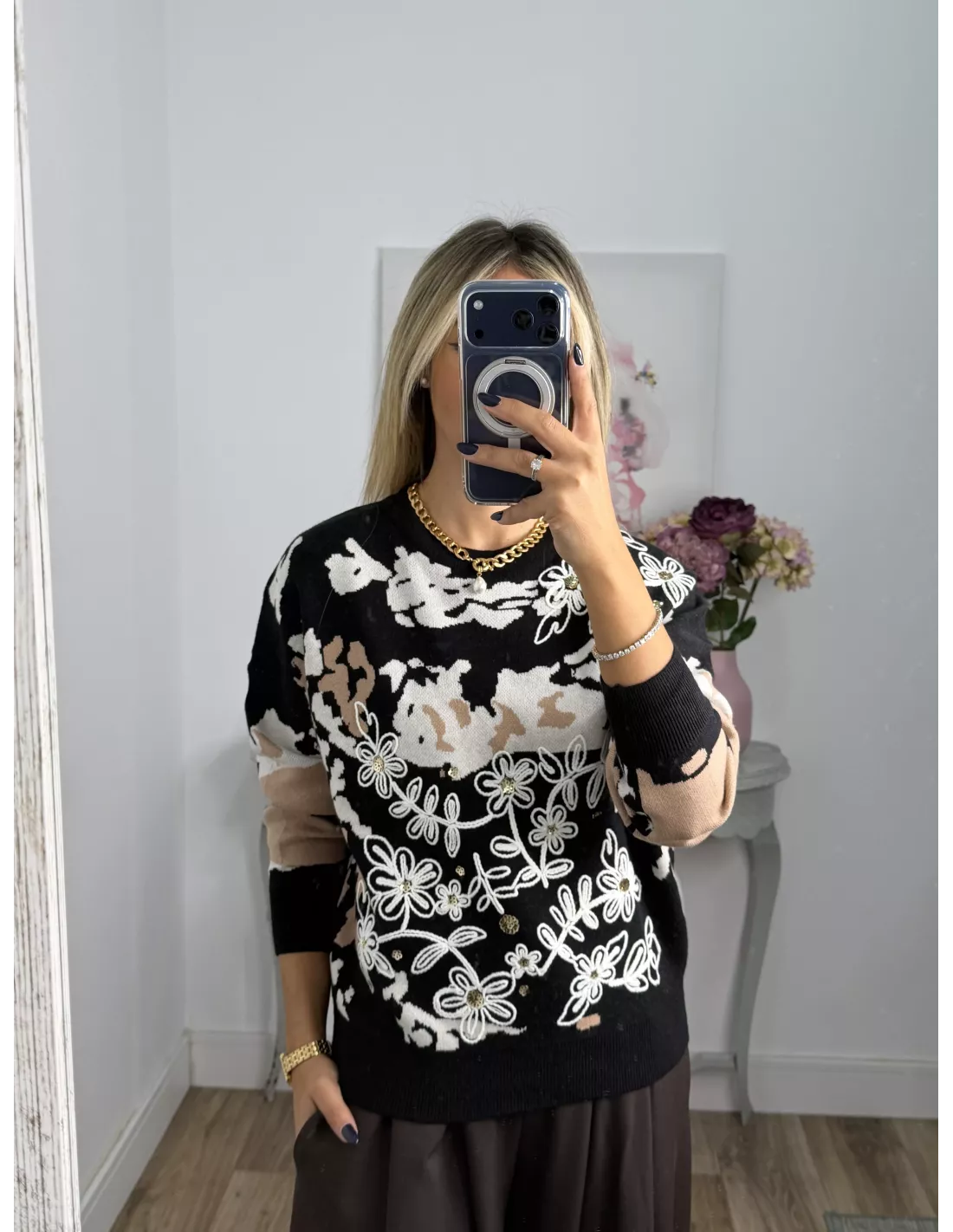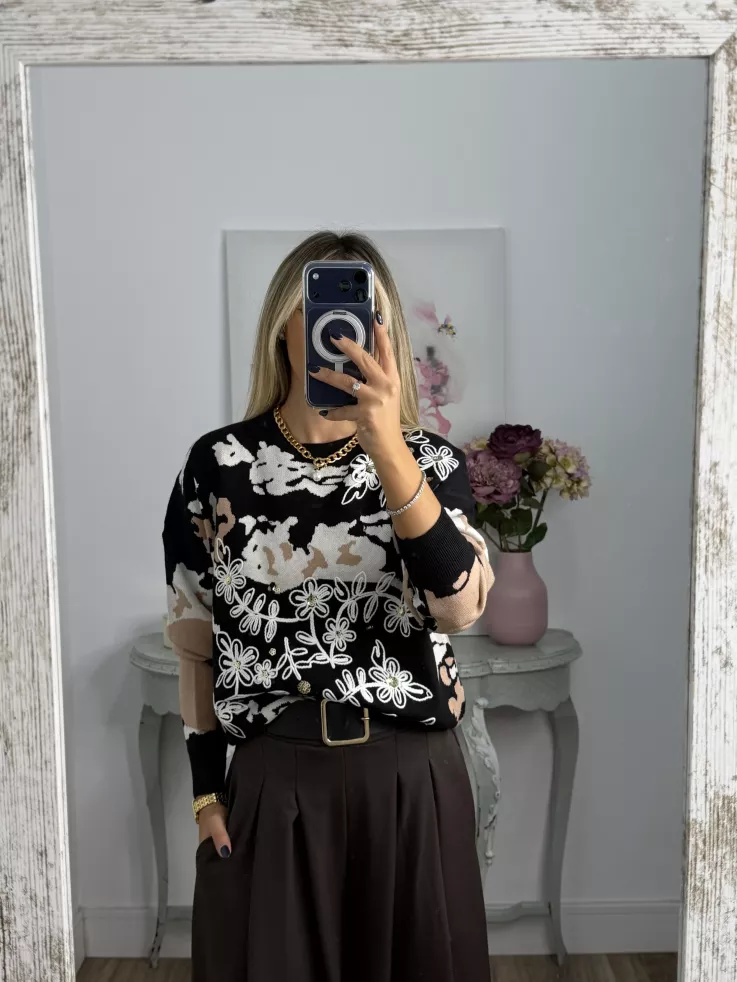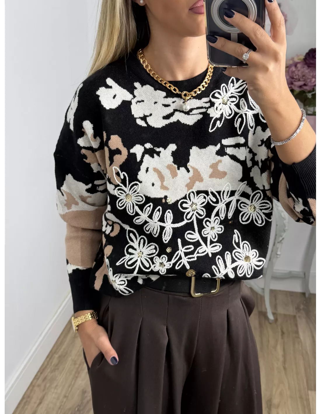 Jersey de cuello la caja estampado, con dibujo en relieve y lentejuelas. De tacto, muy suave.