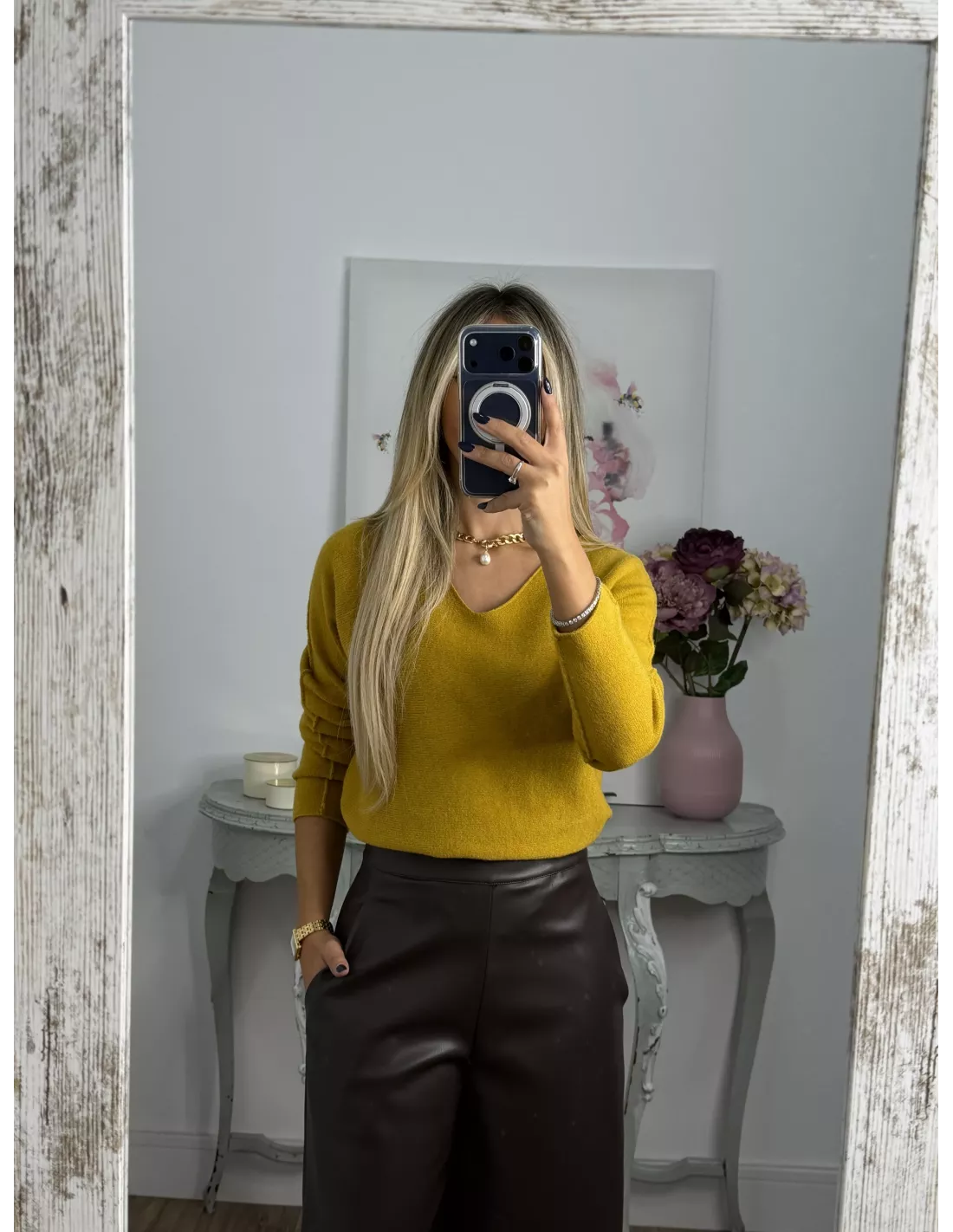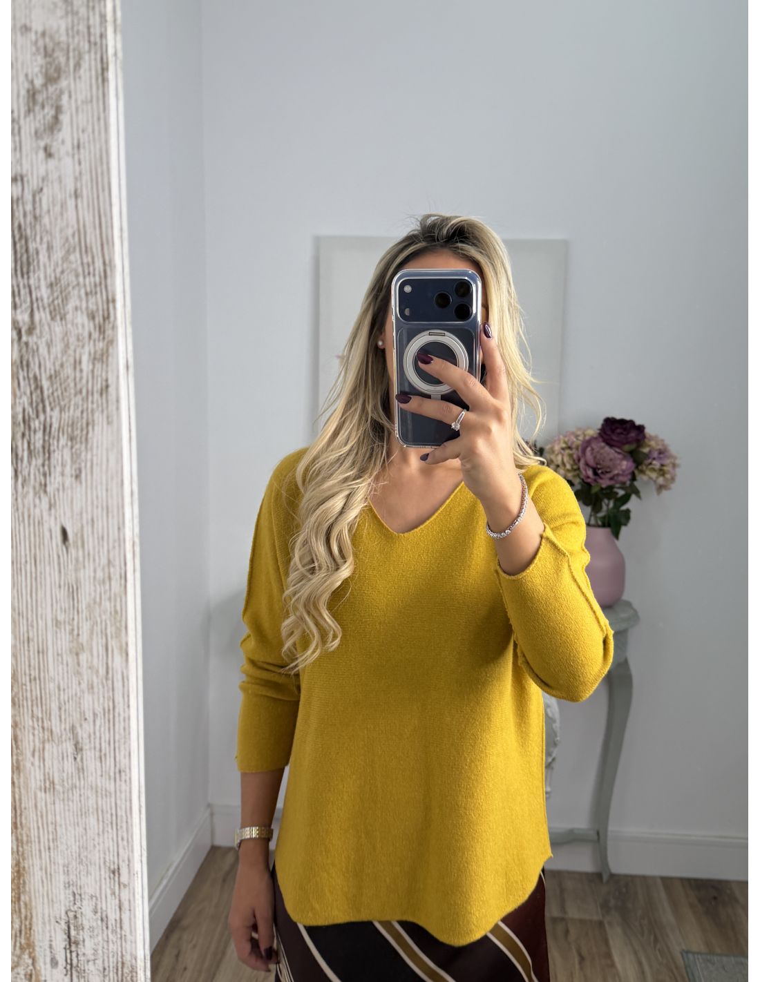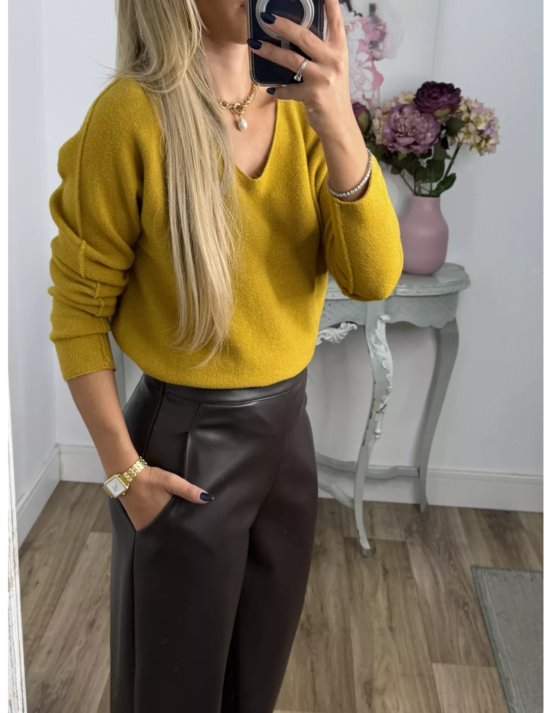 Jersey de cuello de pico de tacto, muy suave y agradable no pica nada.