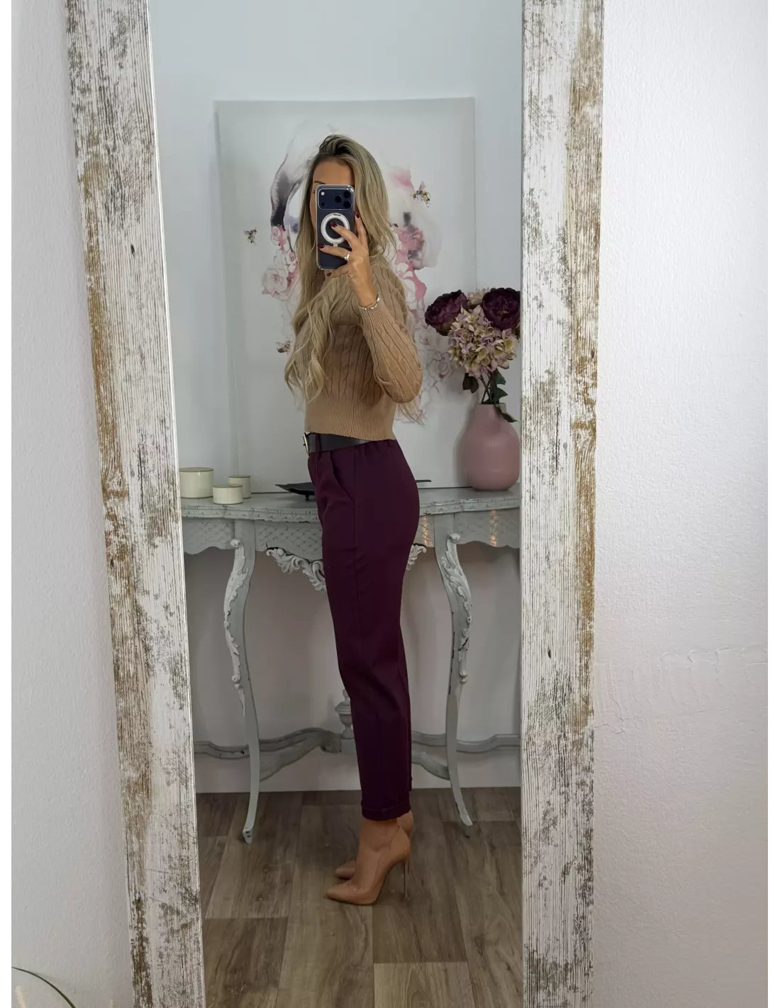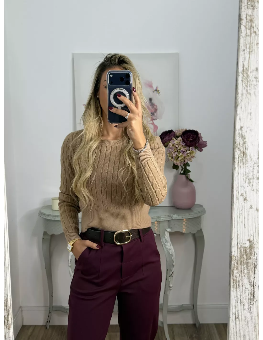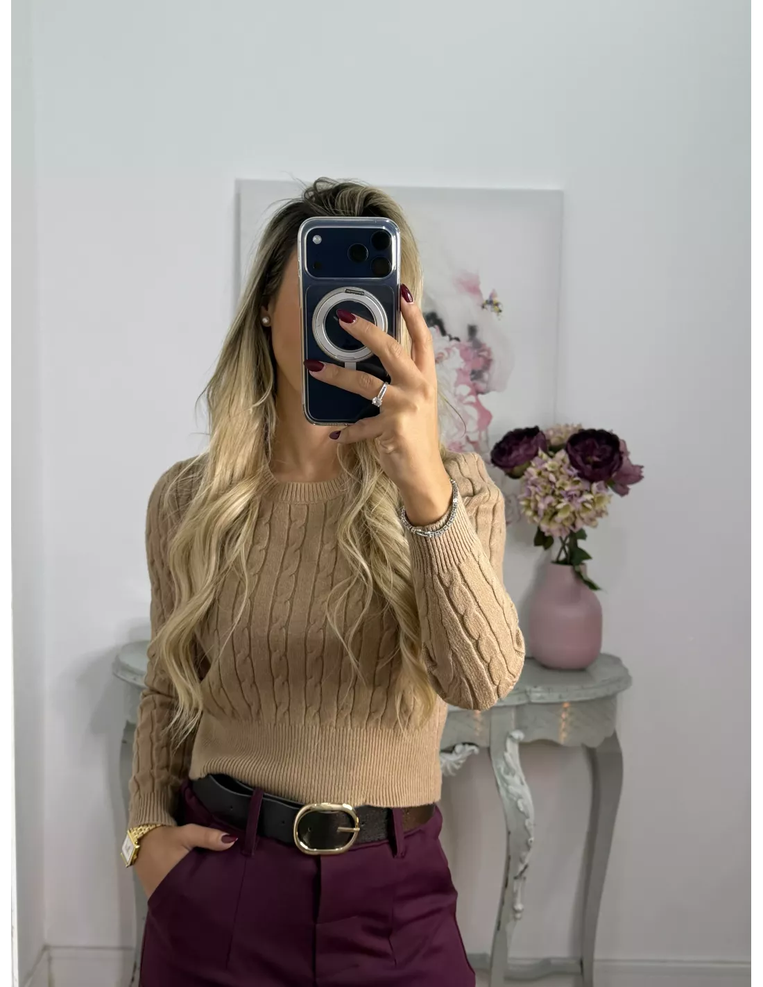 Jersey trenzado cuello a la caja camel