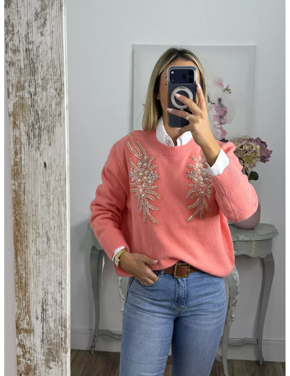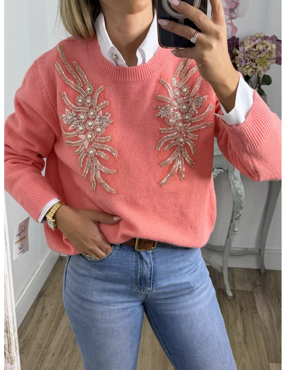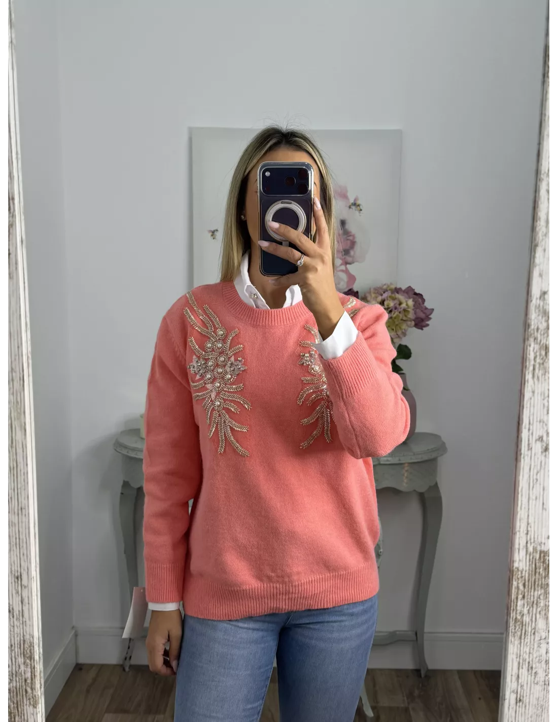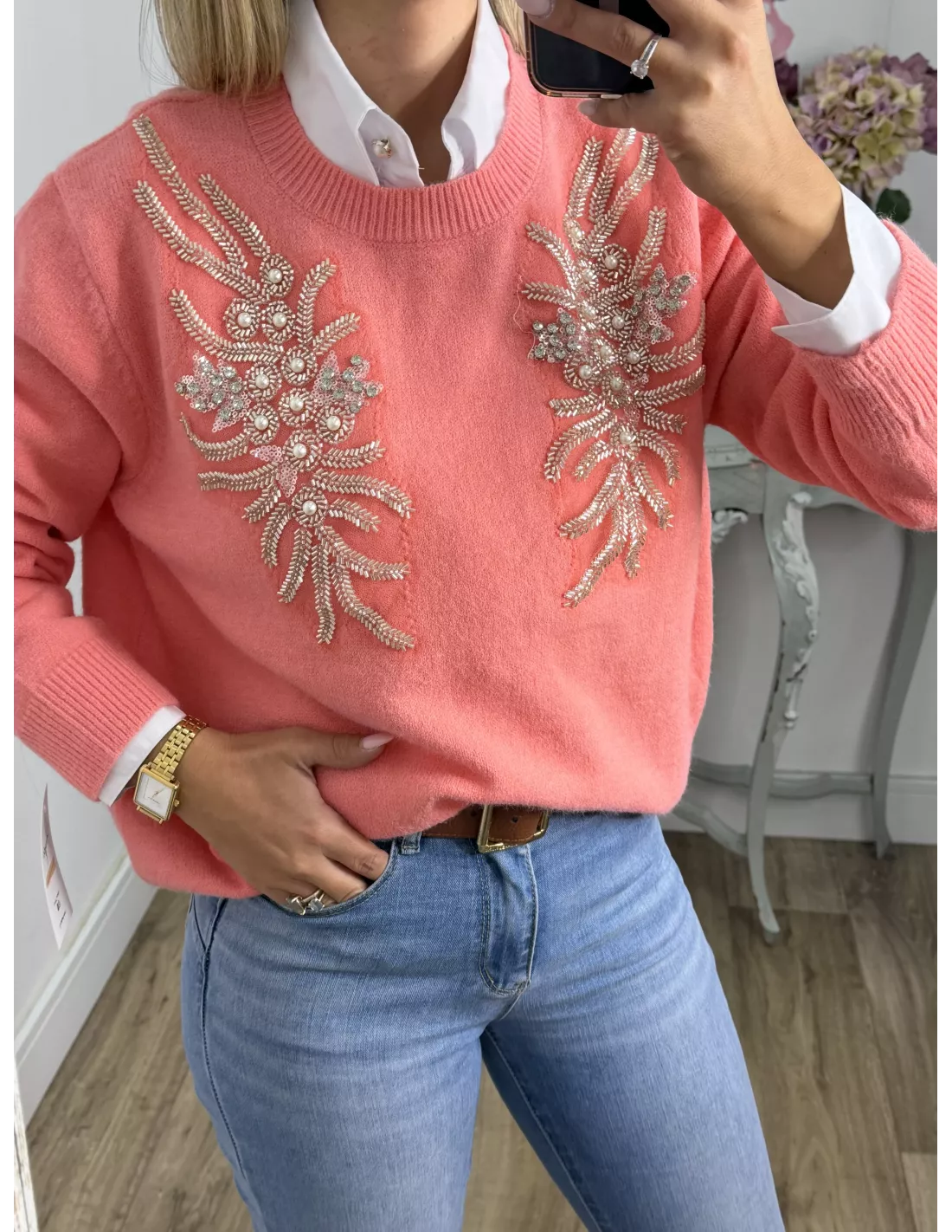 Jersey alas coral lentejuelas