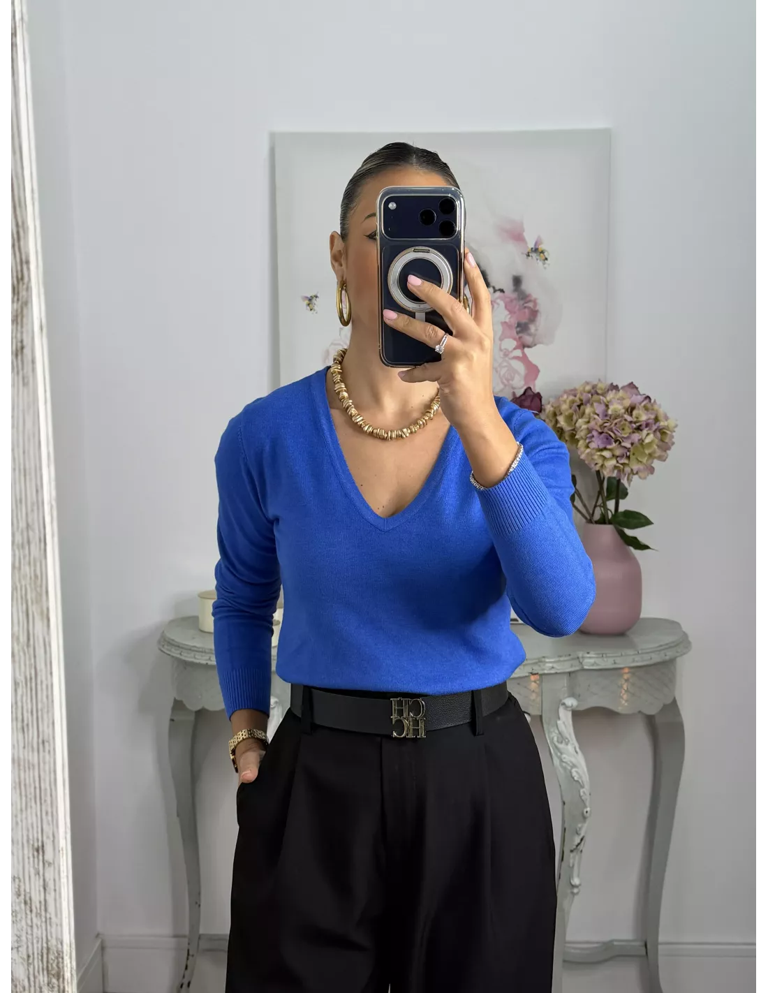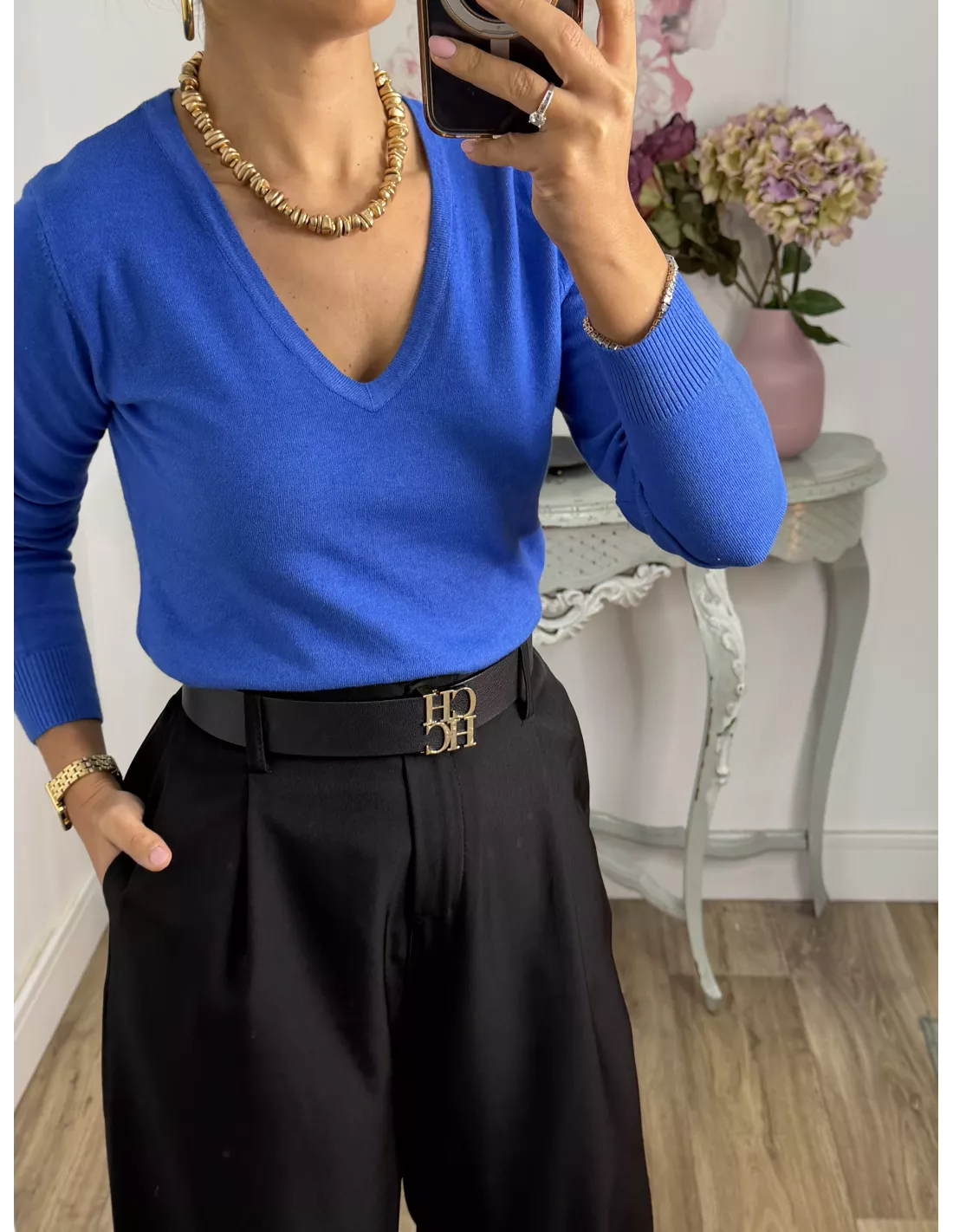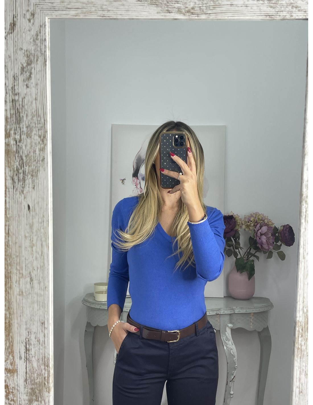 Jersey básico con cuello de pico. Tejido de punto muy suave y de tacto agradable.