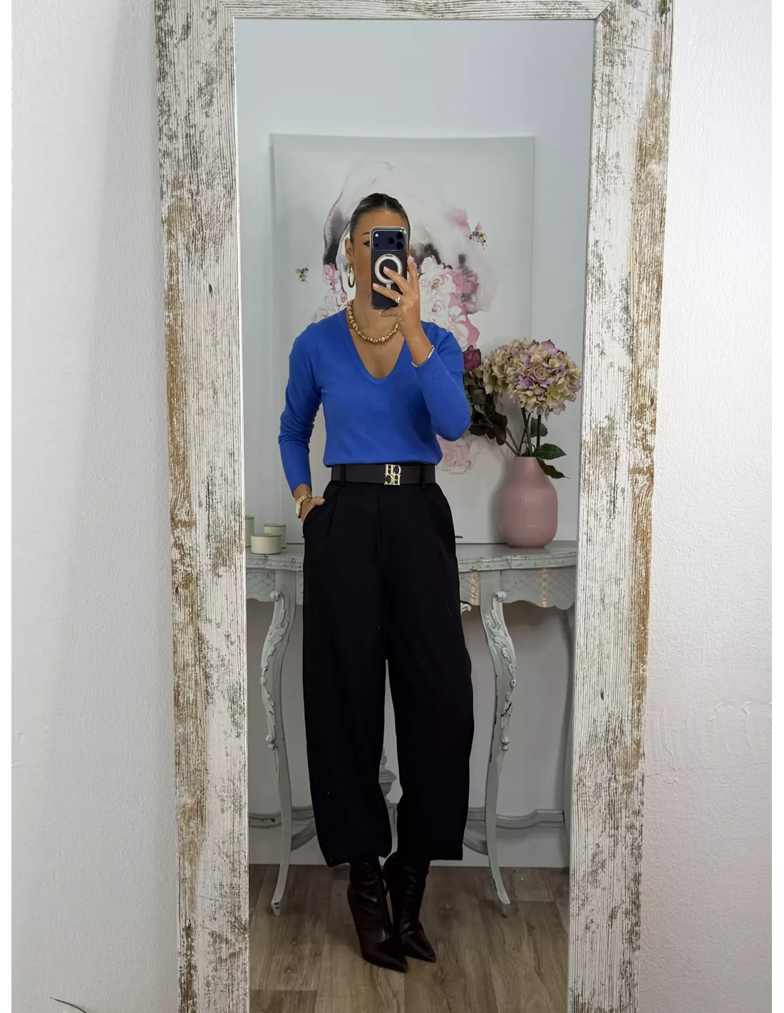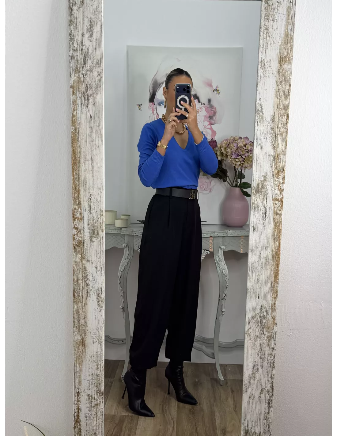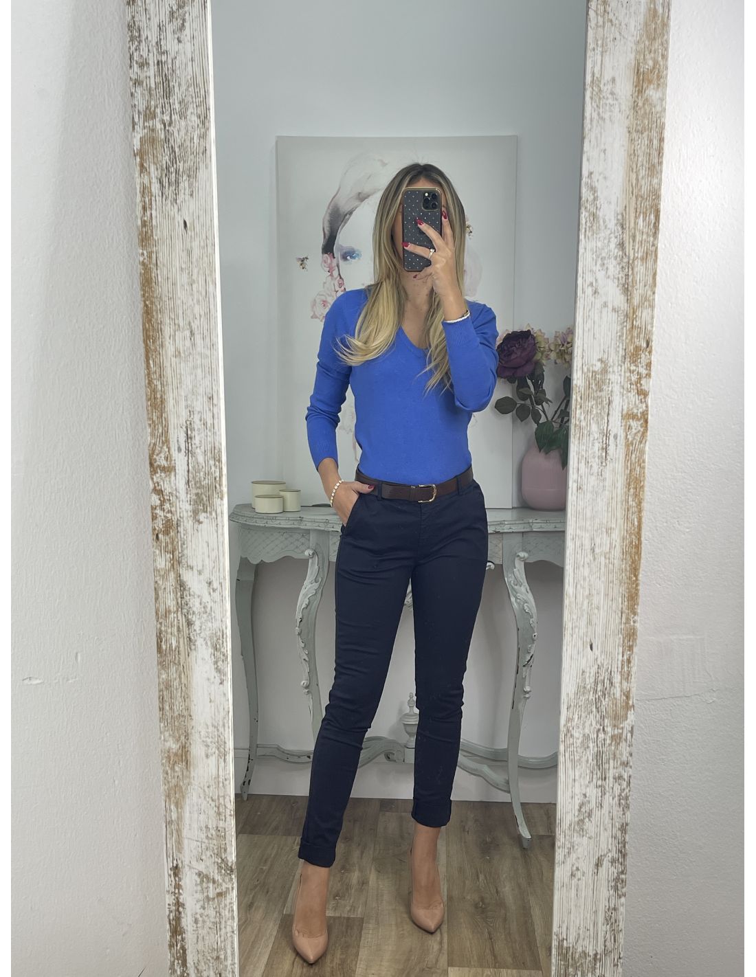 Jersey básico con cuello de pico. Tejido de punto muy suave y de tacto agradable.
