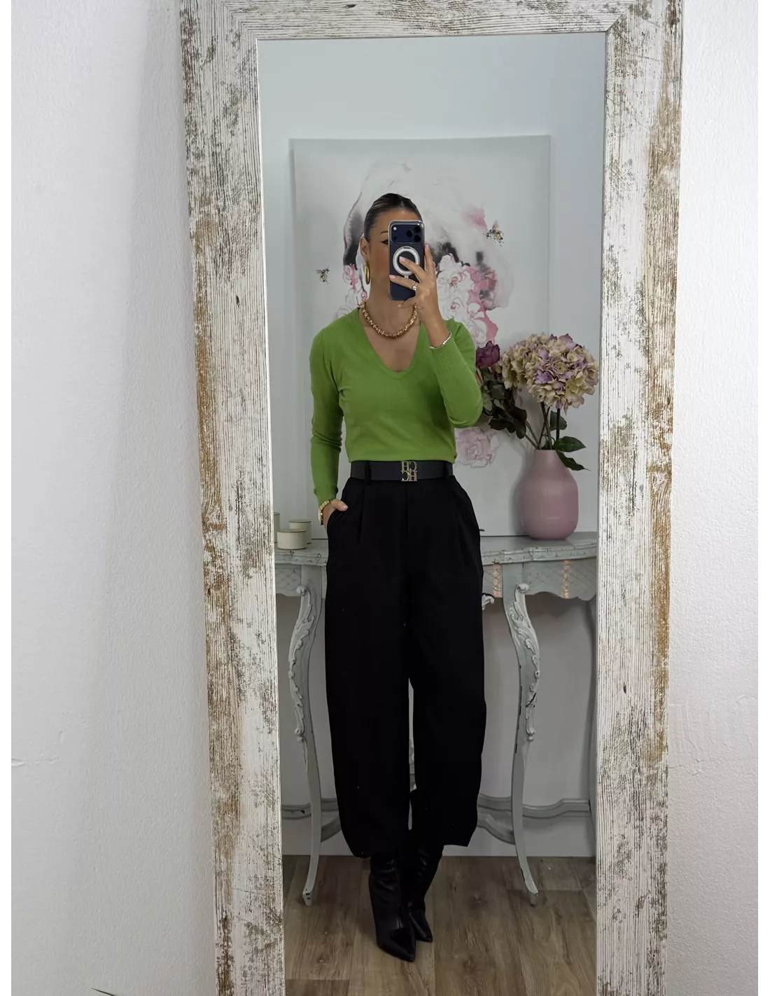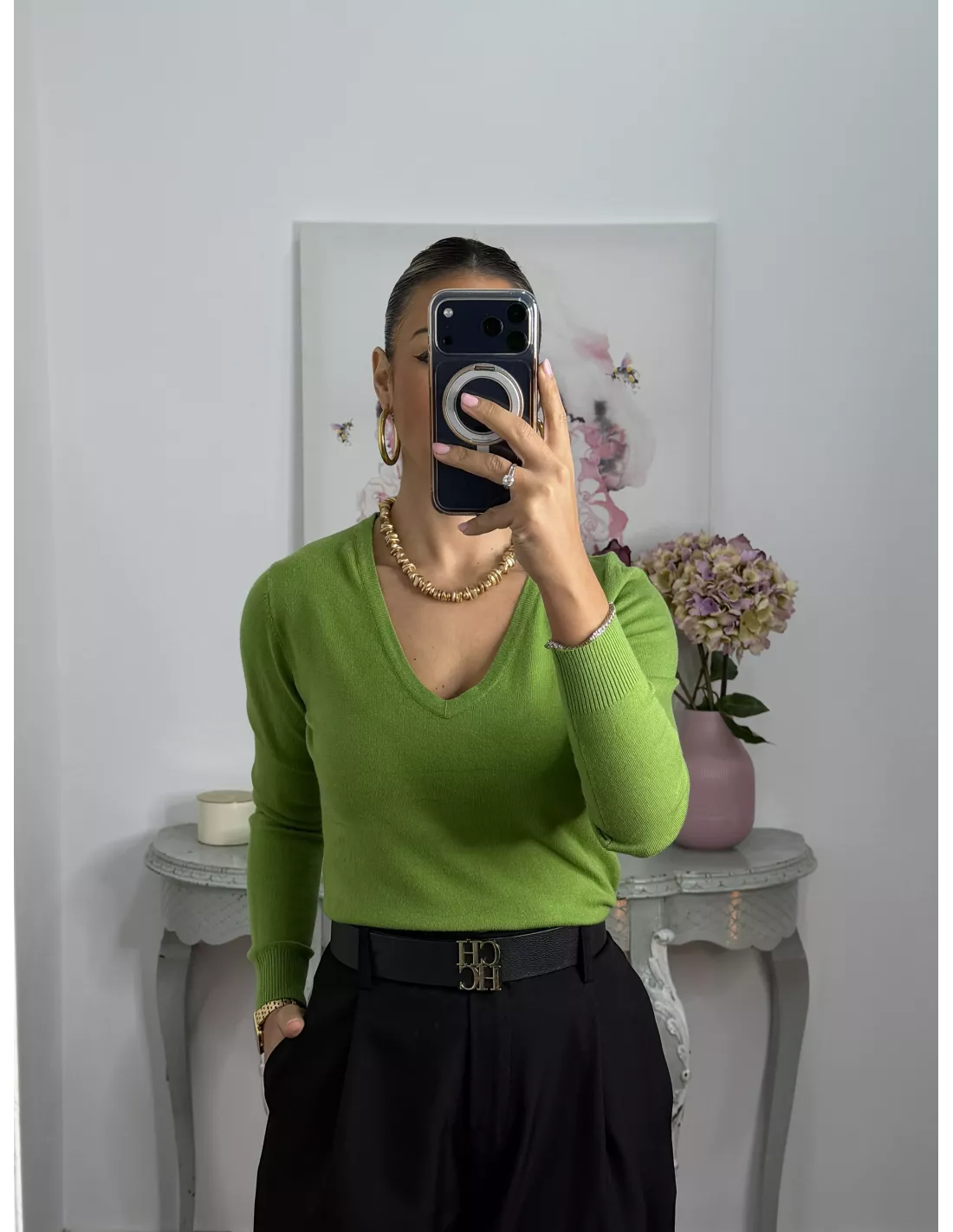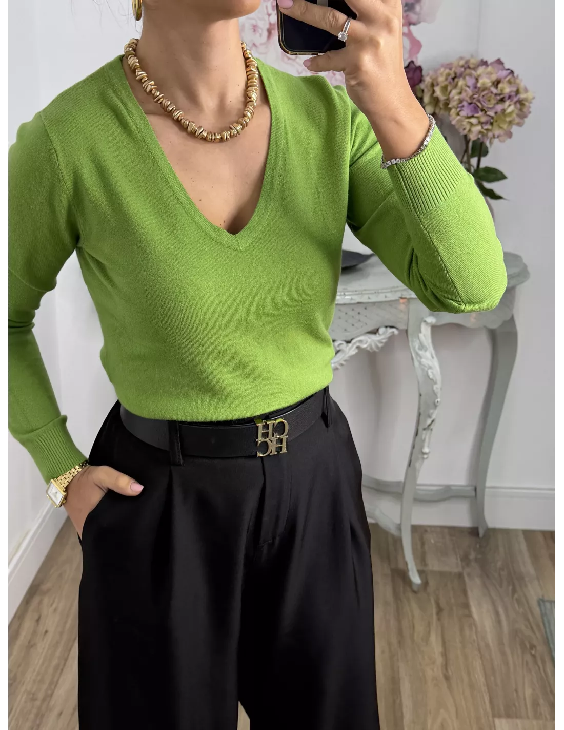 Jersey básico cuello de pico verde lima