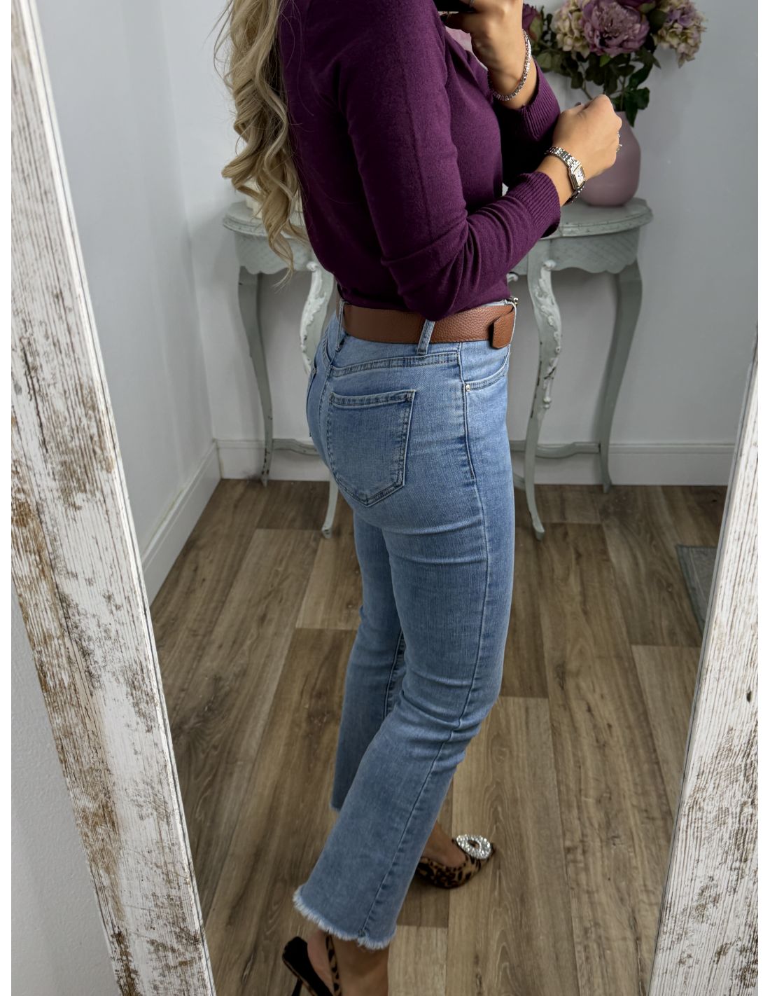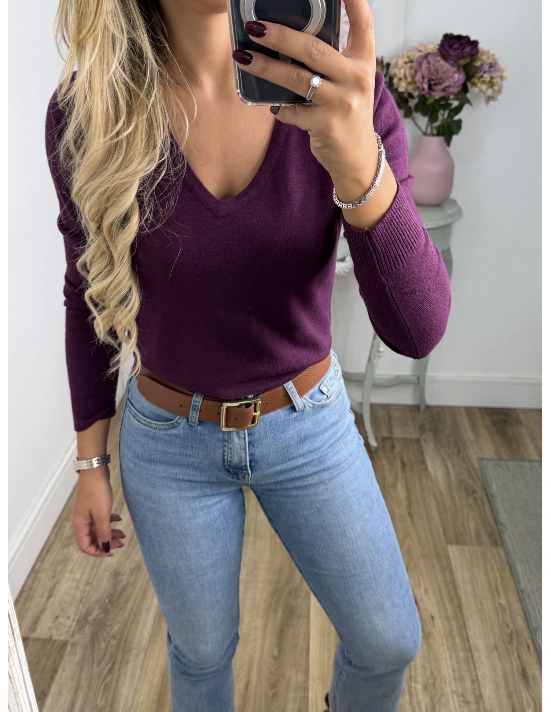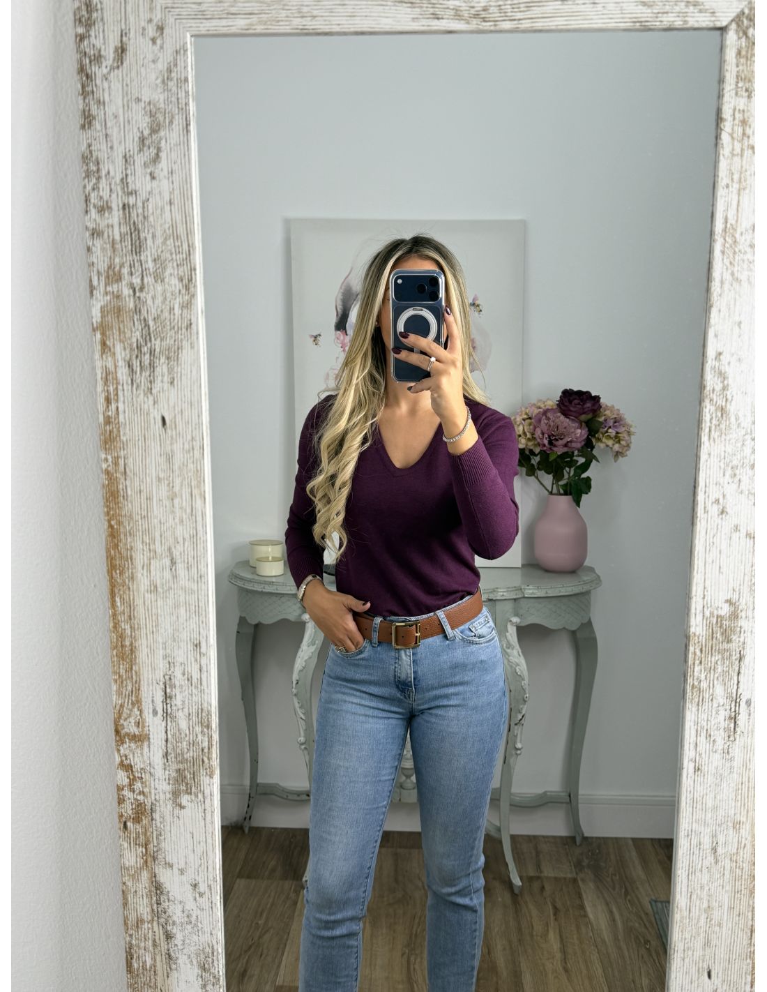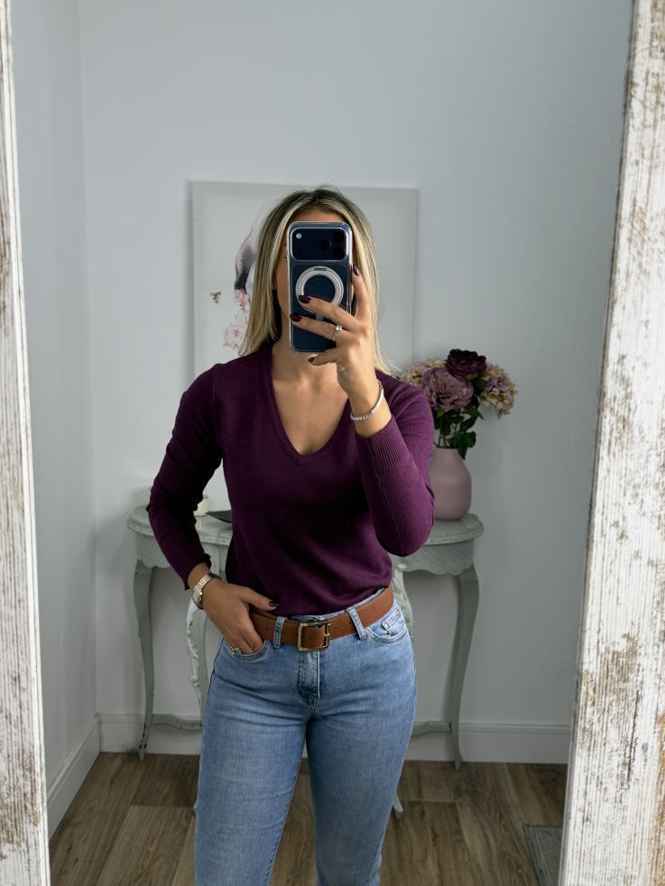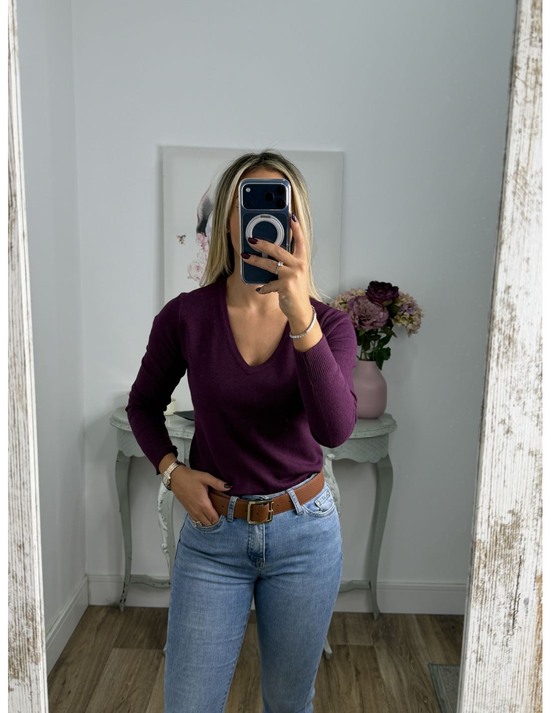 Jersey de cuello de pico de tacto, muy suave y agradable no pica nada. Es ajustado.