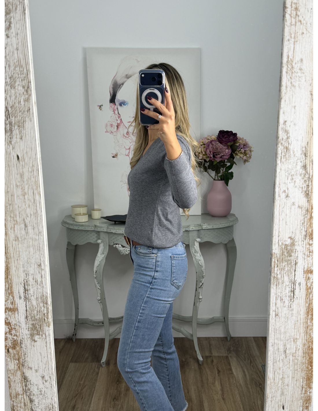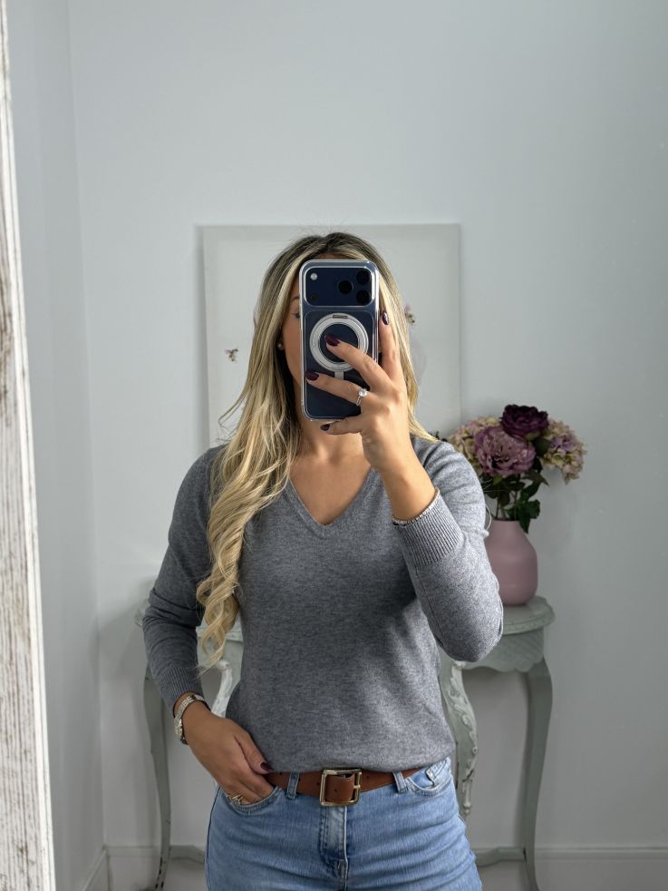 Jersey básico cuello pico gris