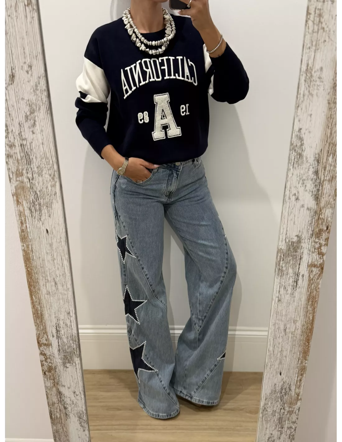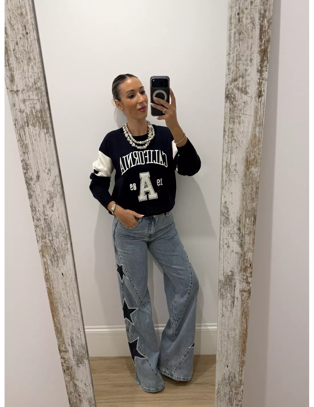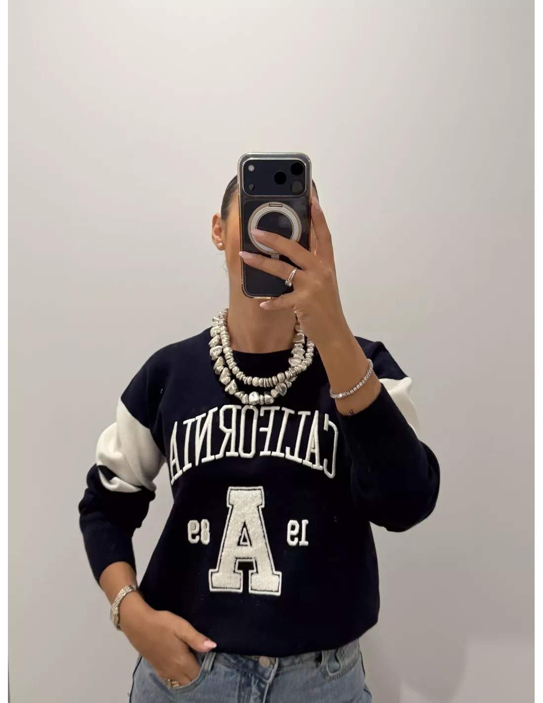 Jersey de cuello la caja de tacto muy suave. Lleva unas letras bordadas donde pone “California”.