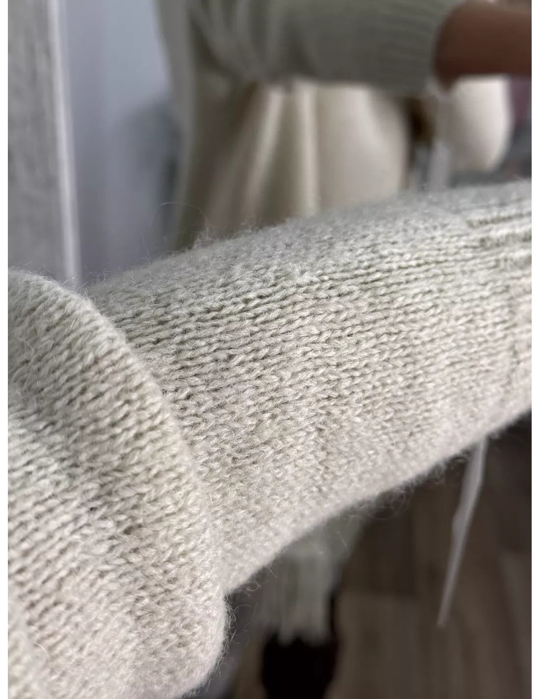 Jersey de cuello alto de tacto suave, no pica nada. Es de Corte oversize.