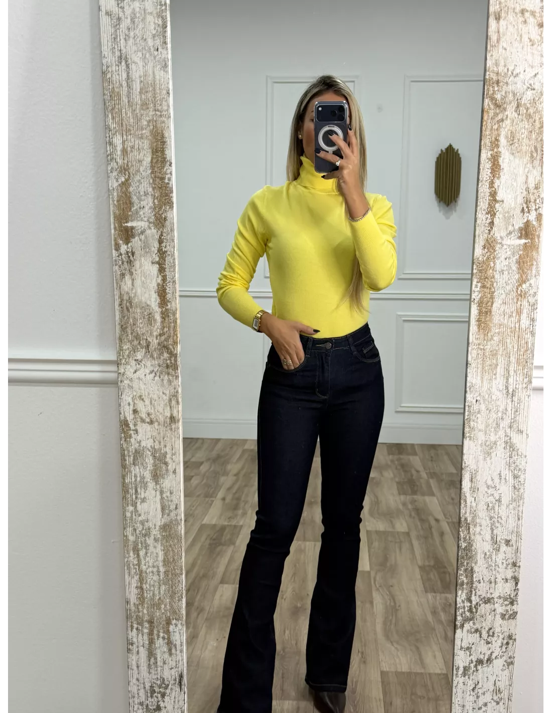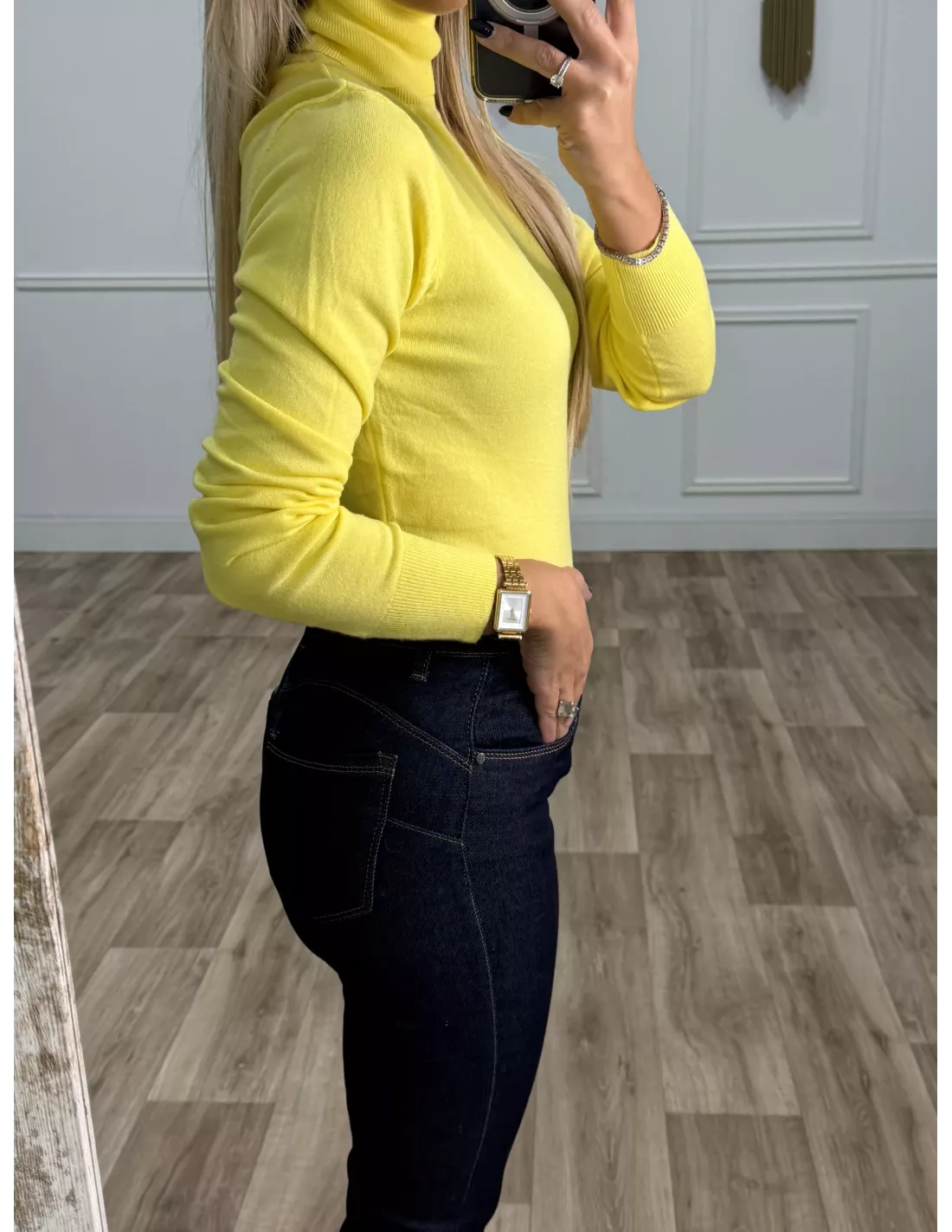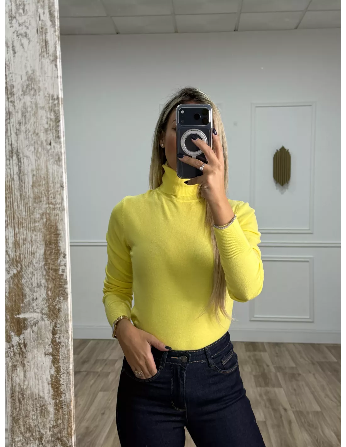 Jersey de cuello alto. Es ajustadito, el cuello no aprieta.