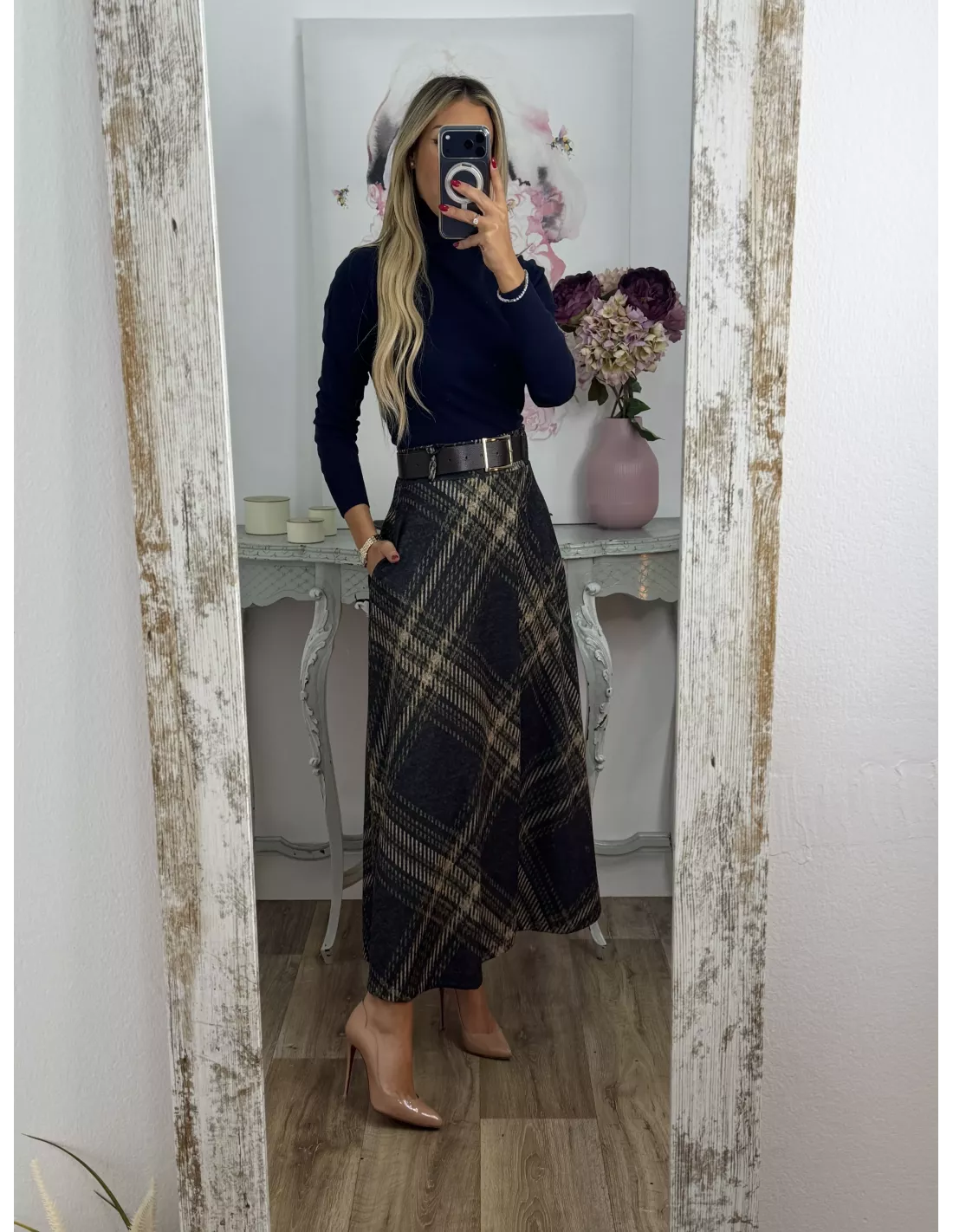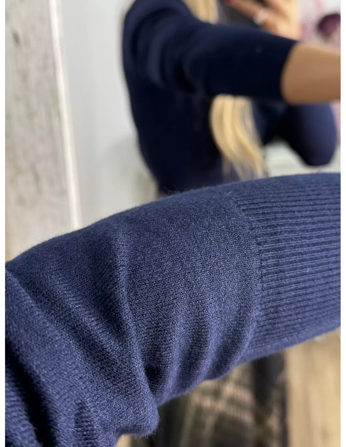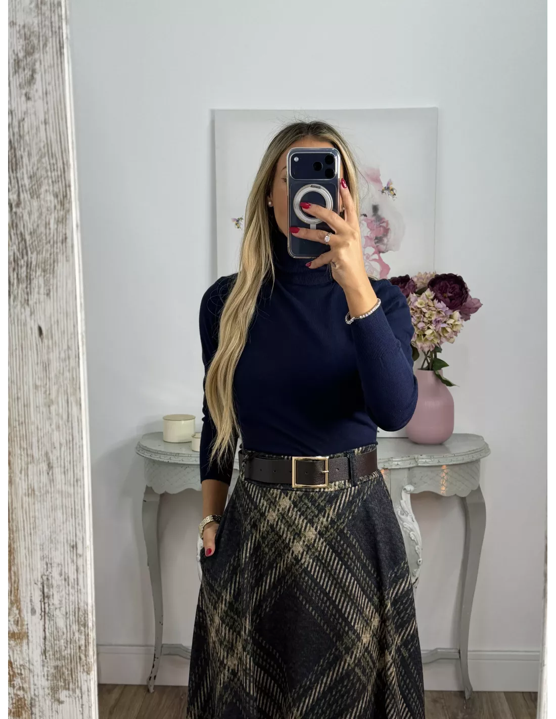 Jersey de cuello alto. Es ajustadito, el cuello no aprieta.