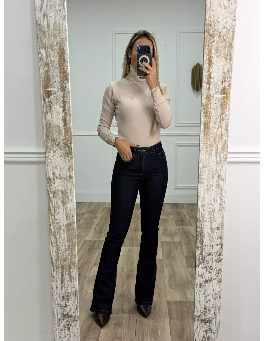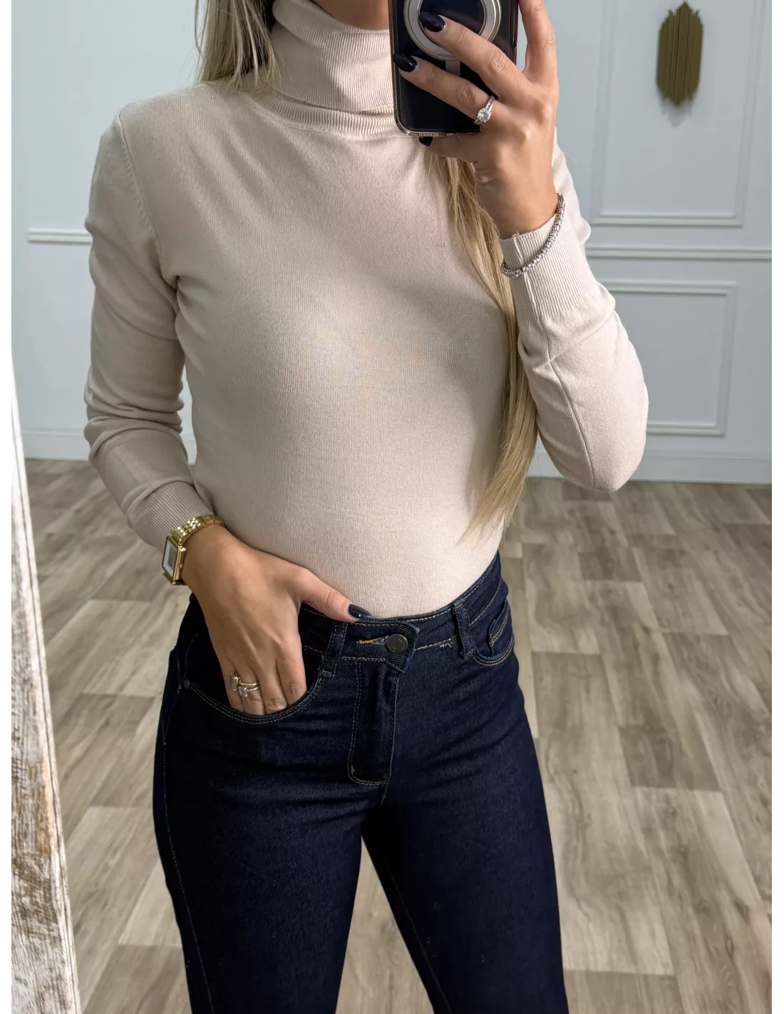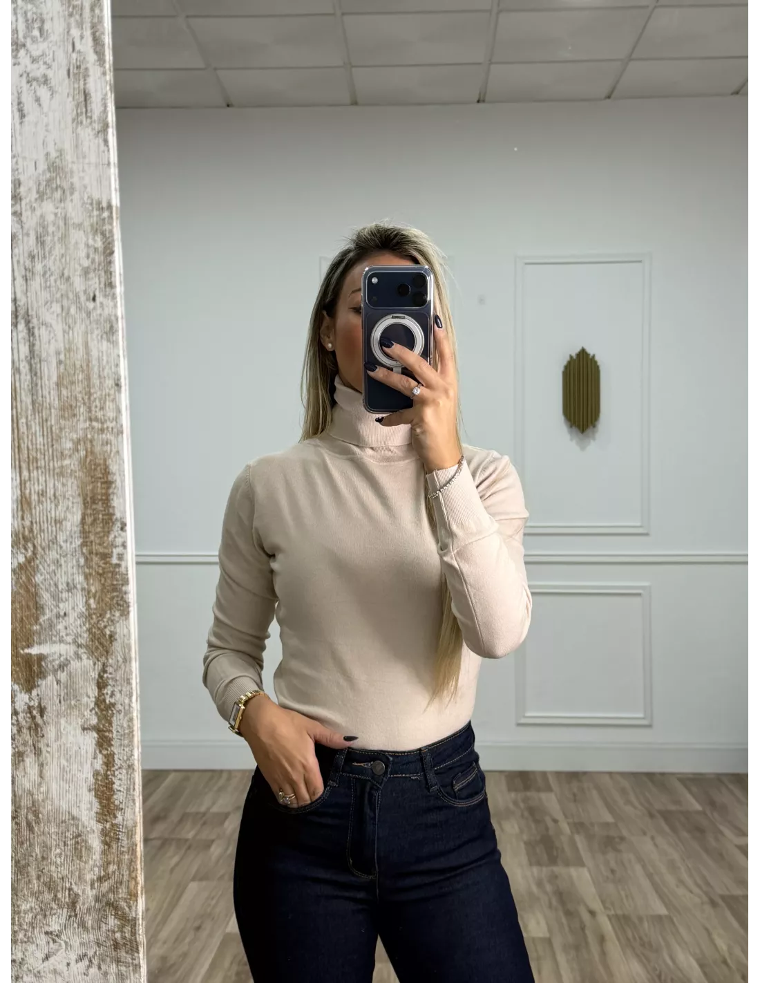 Jersey de cuello alto. Es ajustadito, el cuello no aprieta.