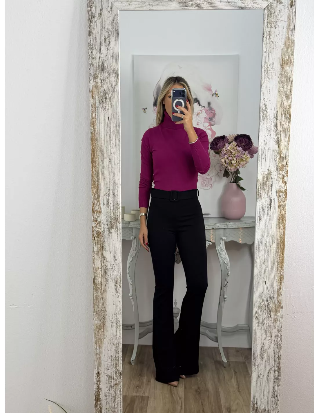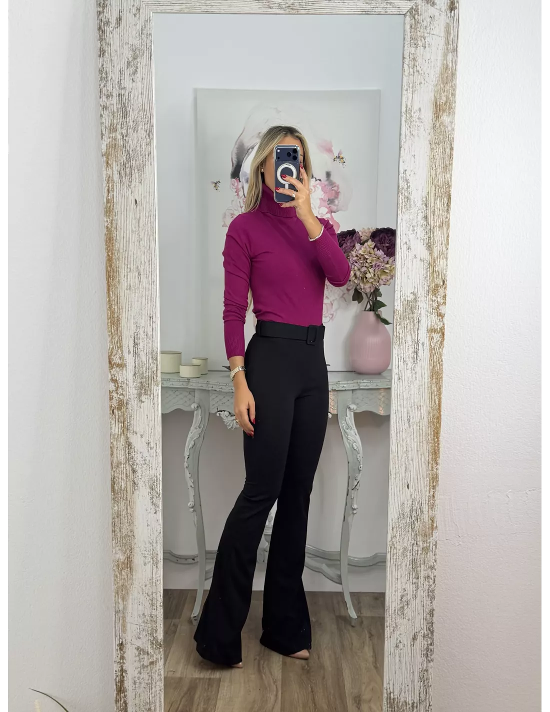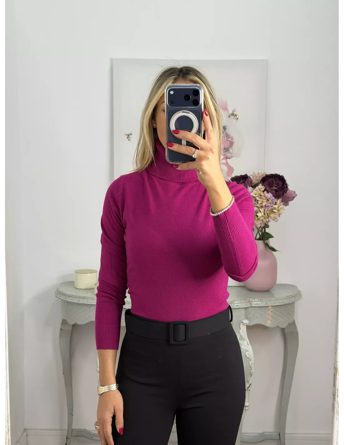 Jersey de cuello alto. Es ajustadito, el cuello no aprieta.