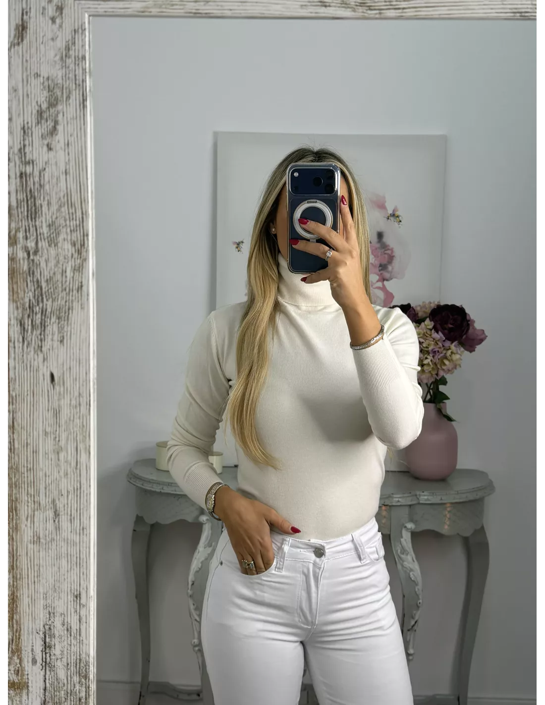Jersey de cuello alto. Es ajustadito, el cuello no aprieta.
