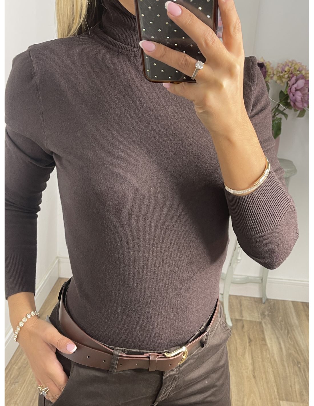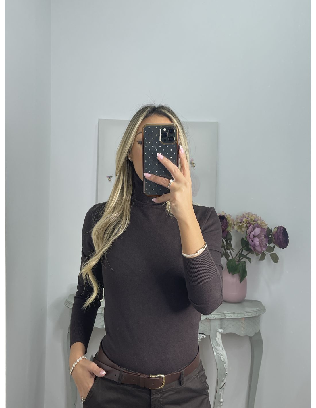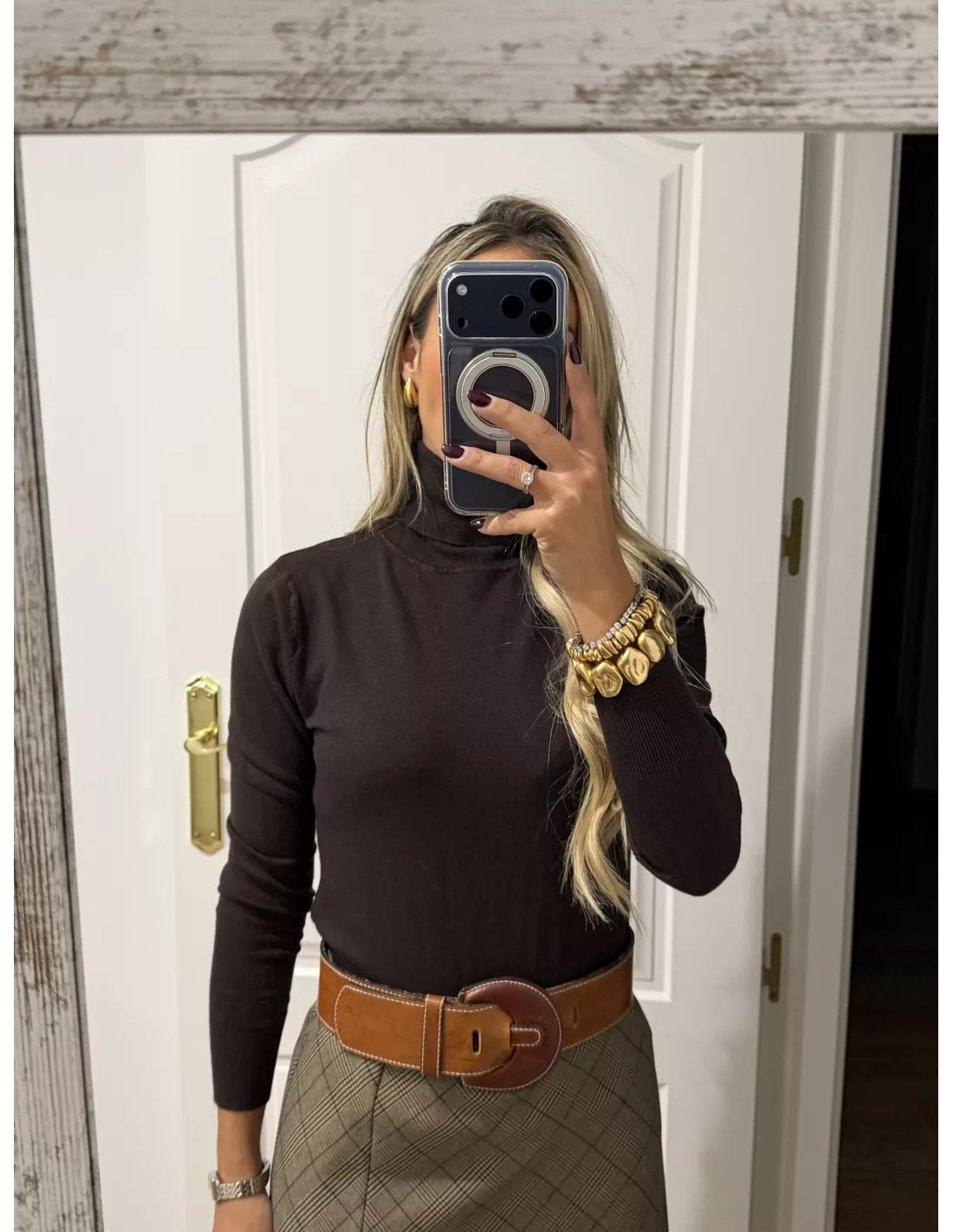 Jersey de cuello alto. Es ajustadito, el cuello no aprieta.