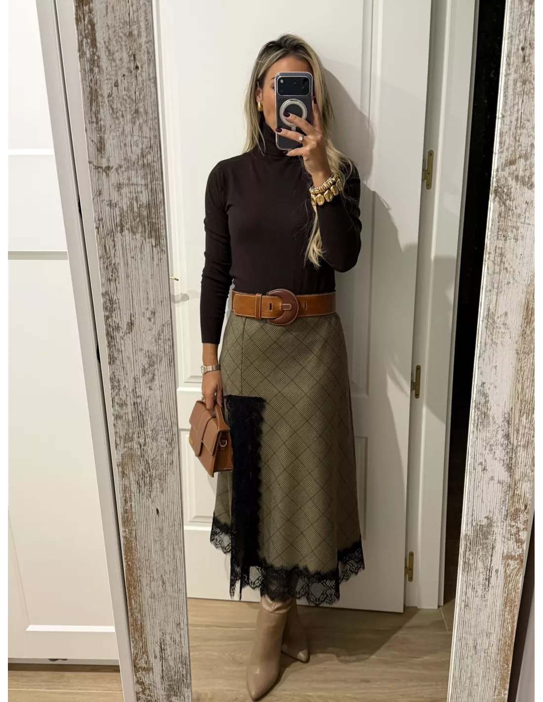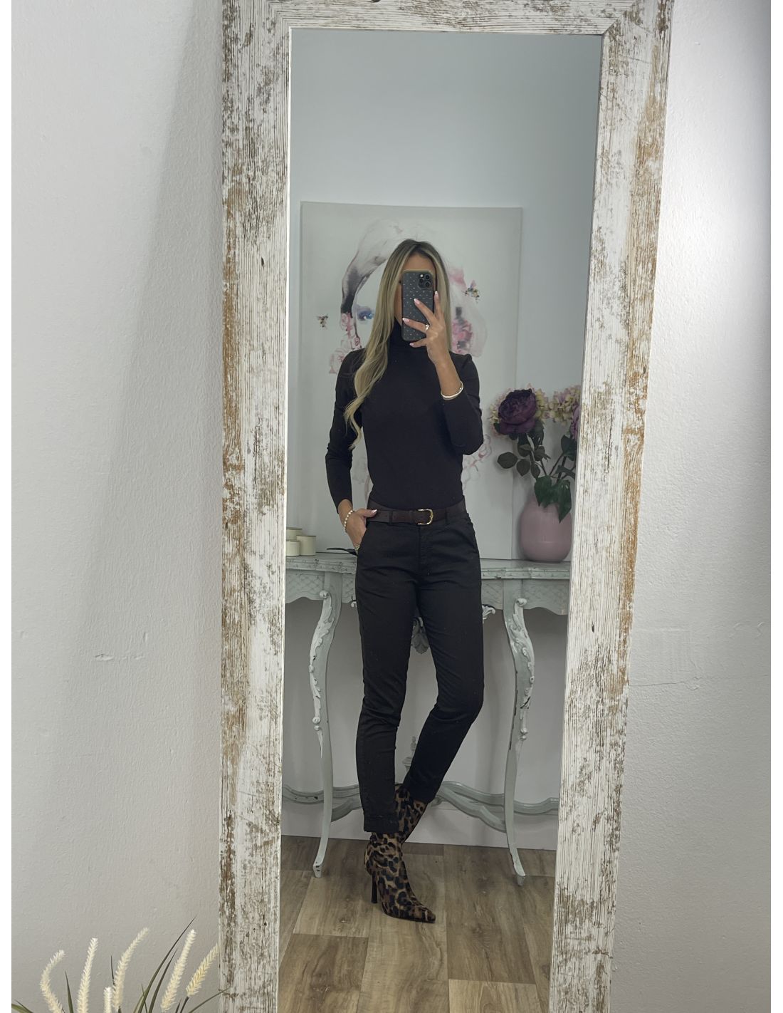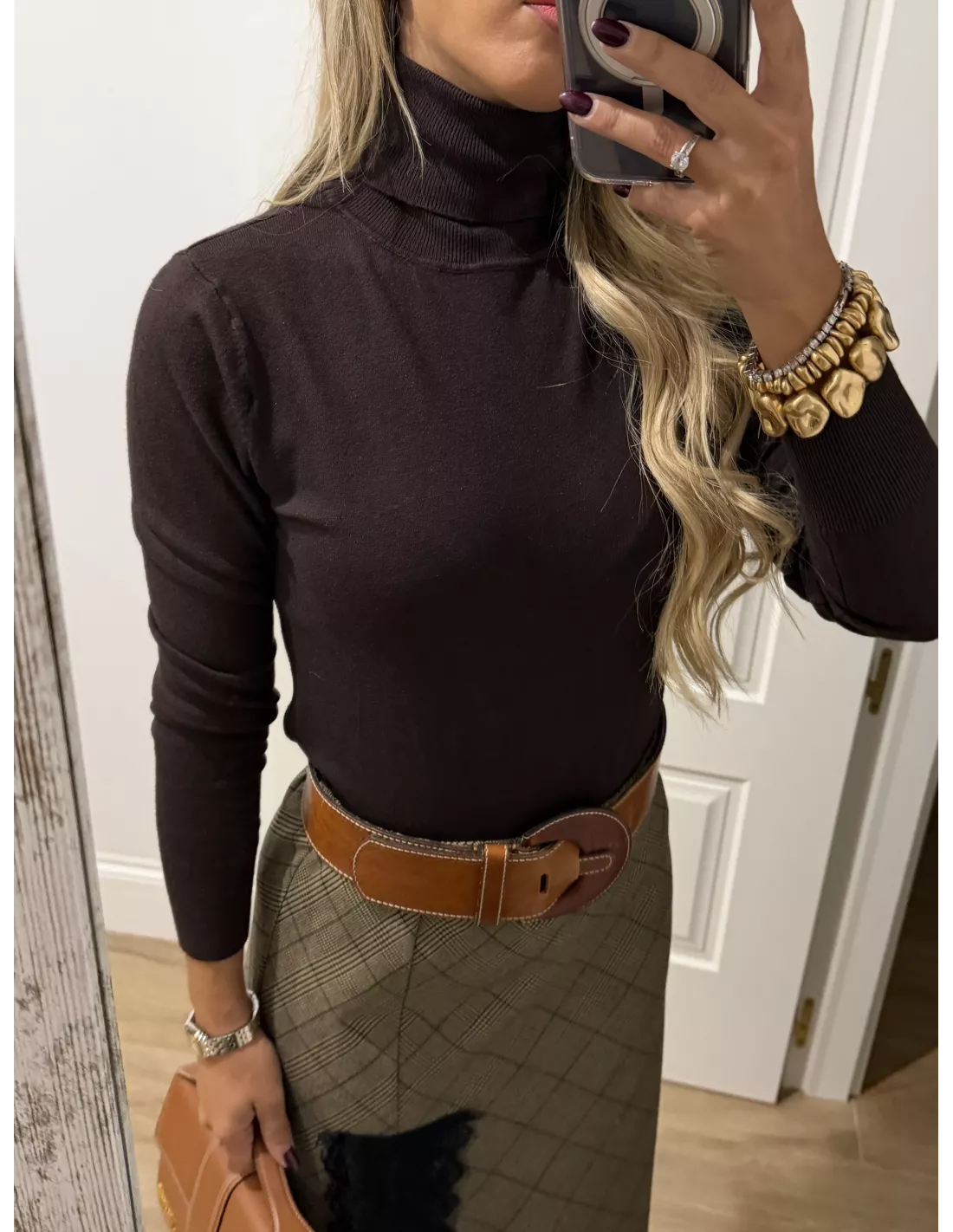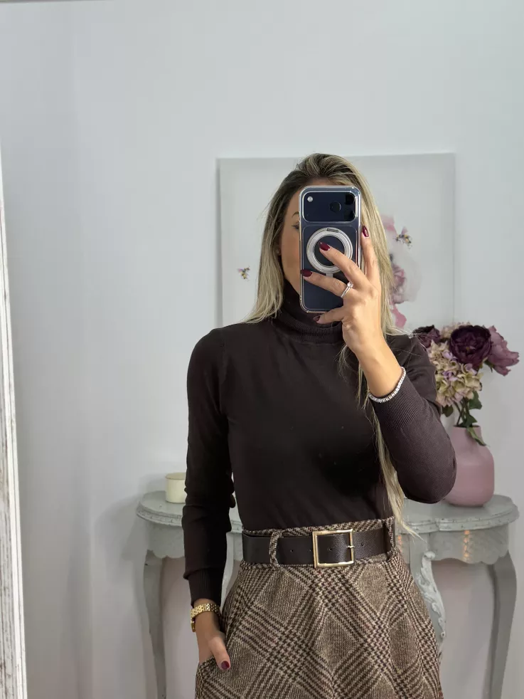 Jersey de cuello alto. Es ajustadito, el cuello no aprieta.