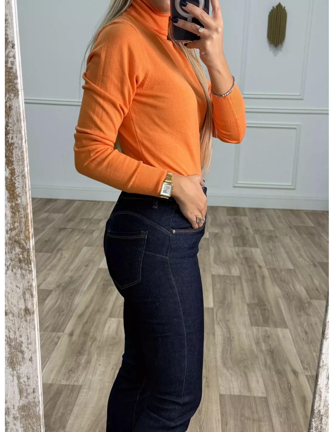 Jersey de cuello alto. Es ajustadito, el cuello no aprieta.
