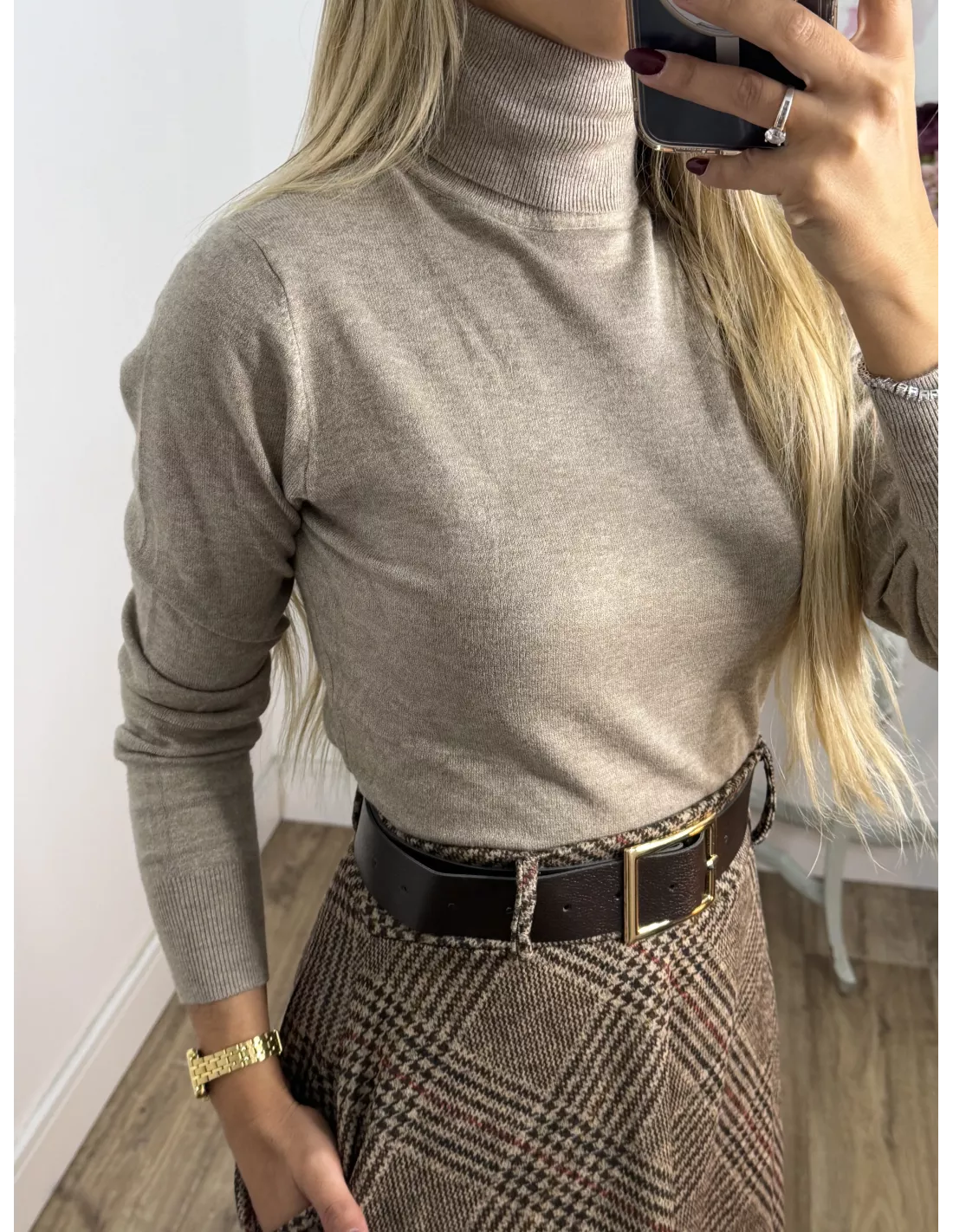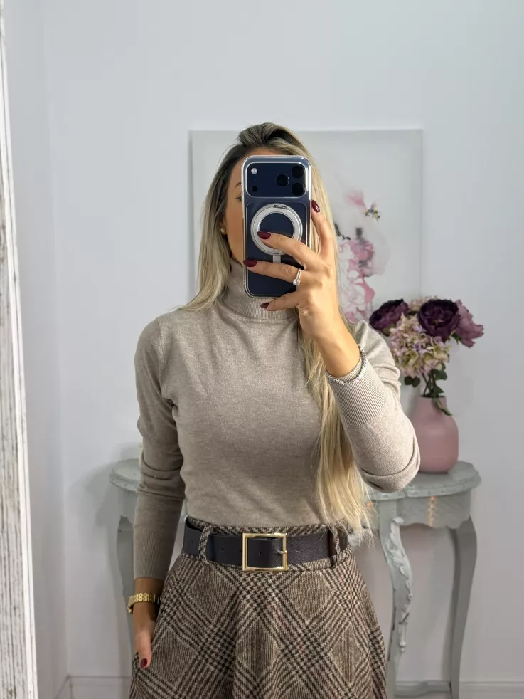 Jersey de cuello alto. Es ajustadito, el cuello no aprieta.
