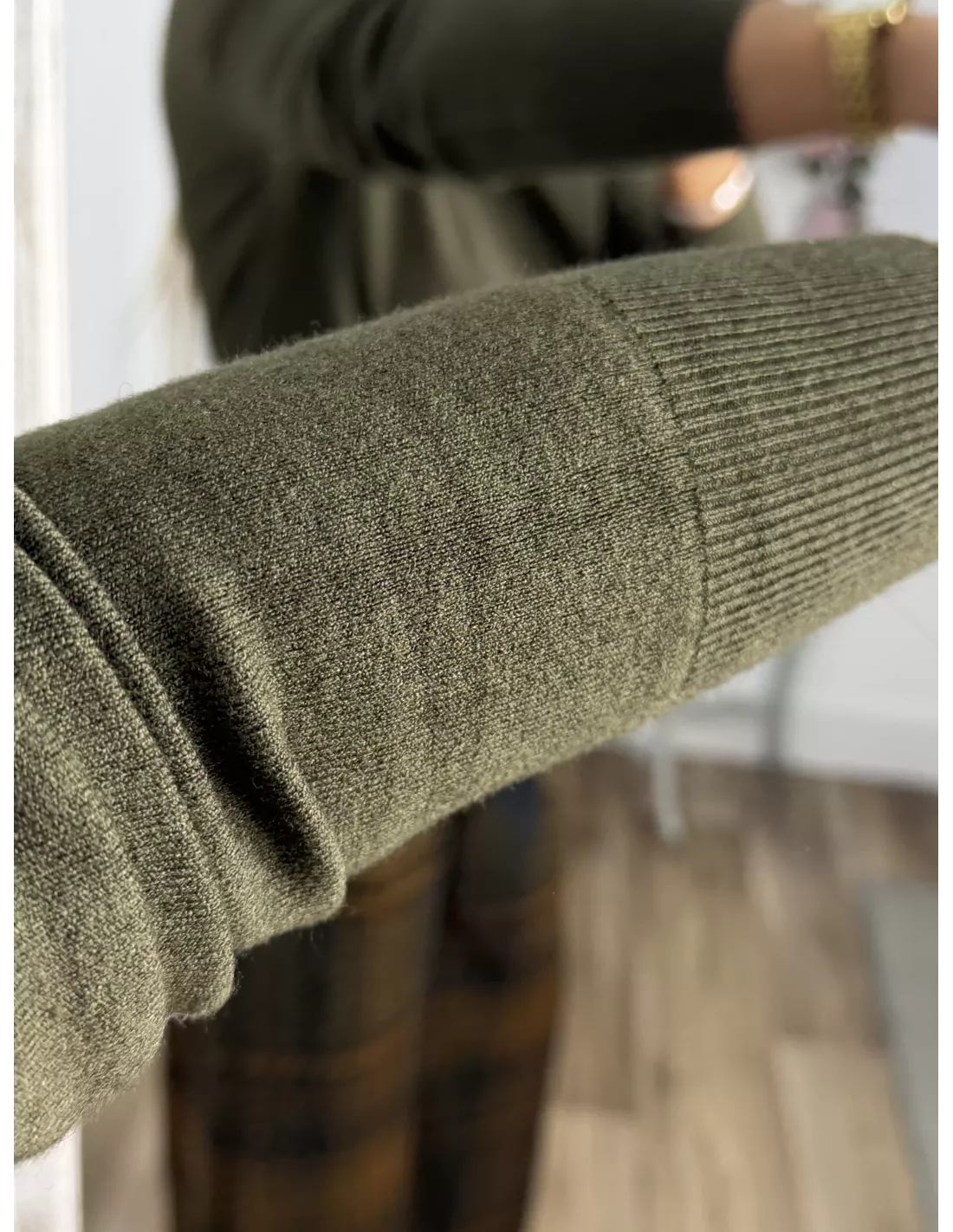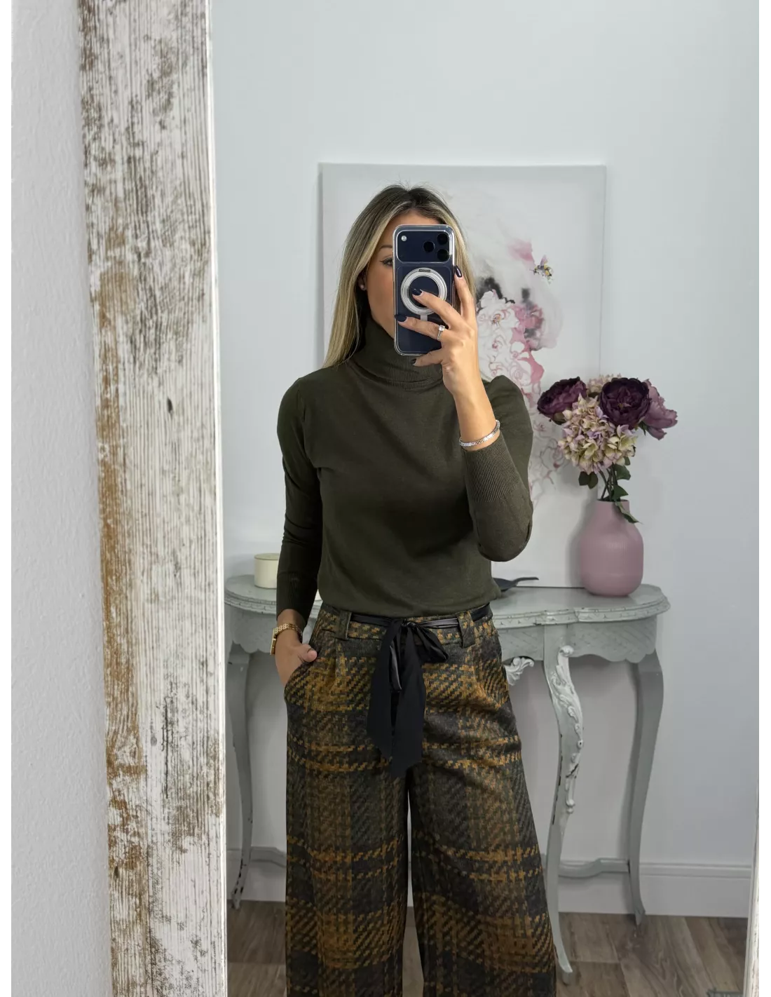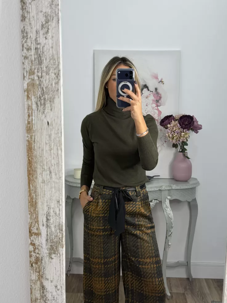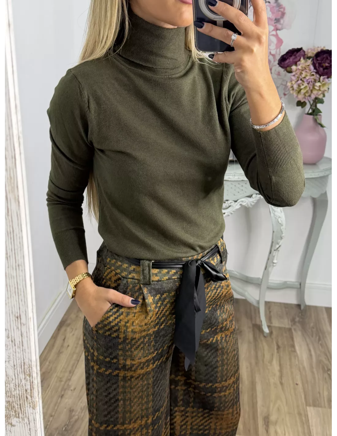 Jersey de cuello alto. Es ajustadito, el cuello no aprieta.