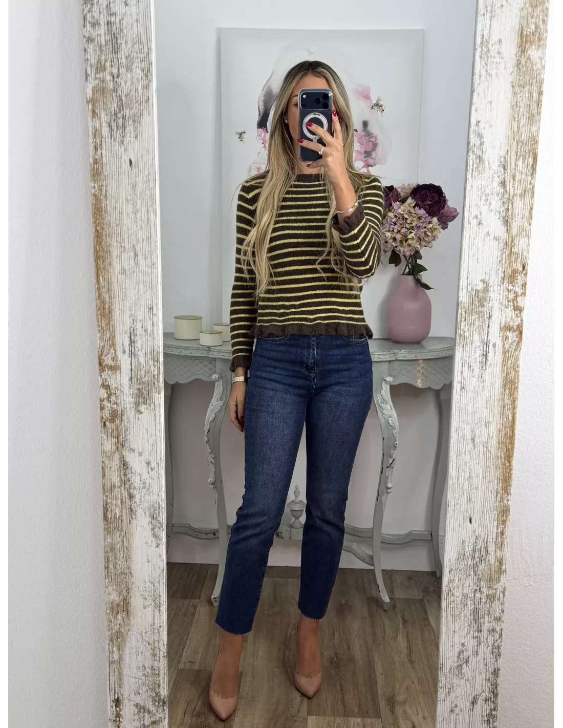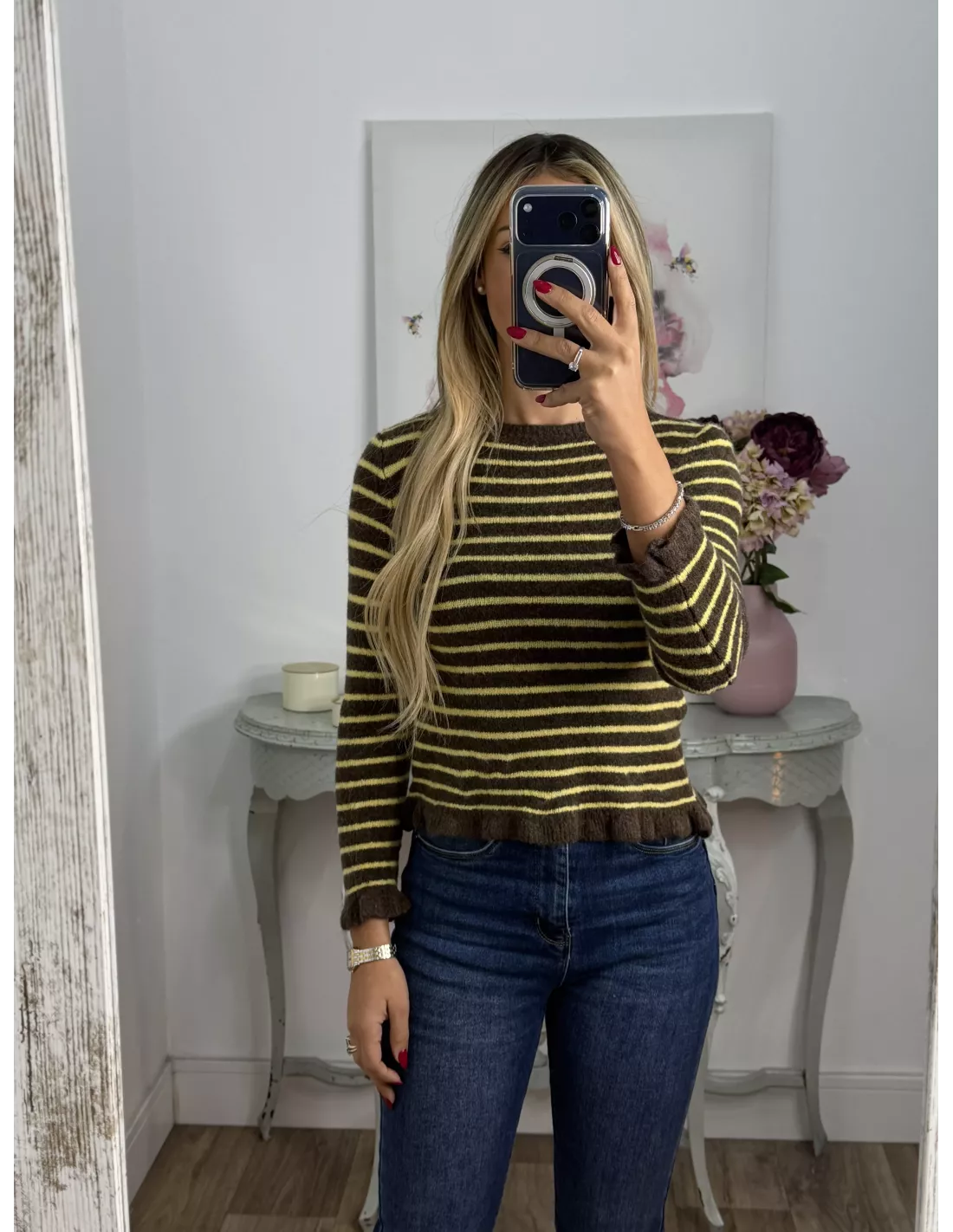 Jersey de cuello a la caja, muy suave y agradable no pica nada.