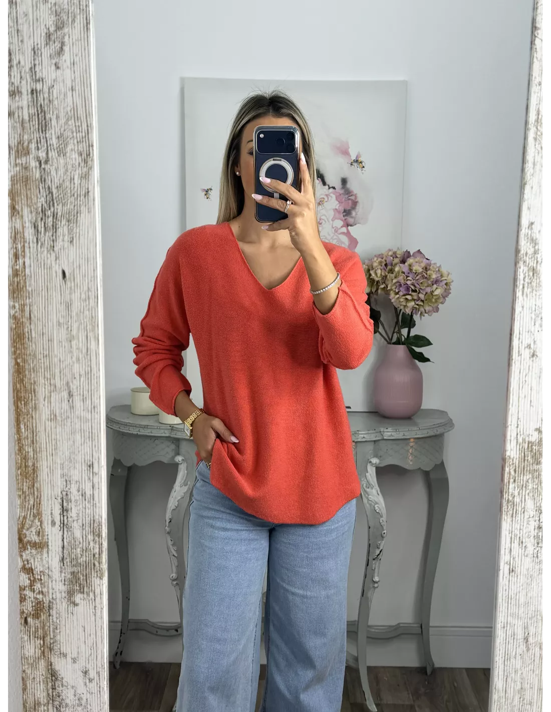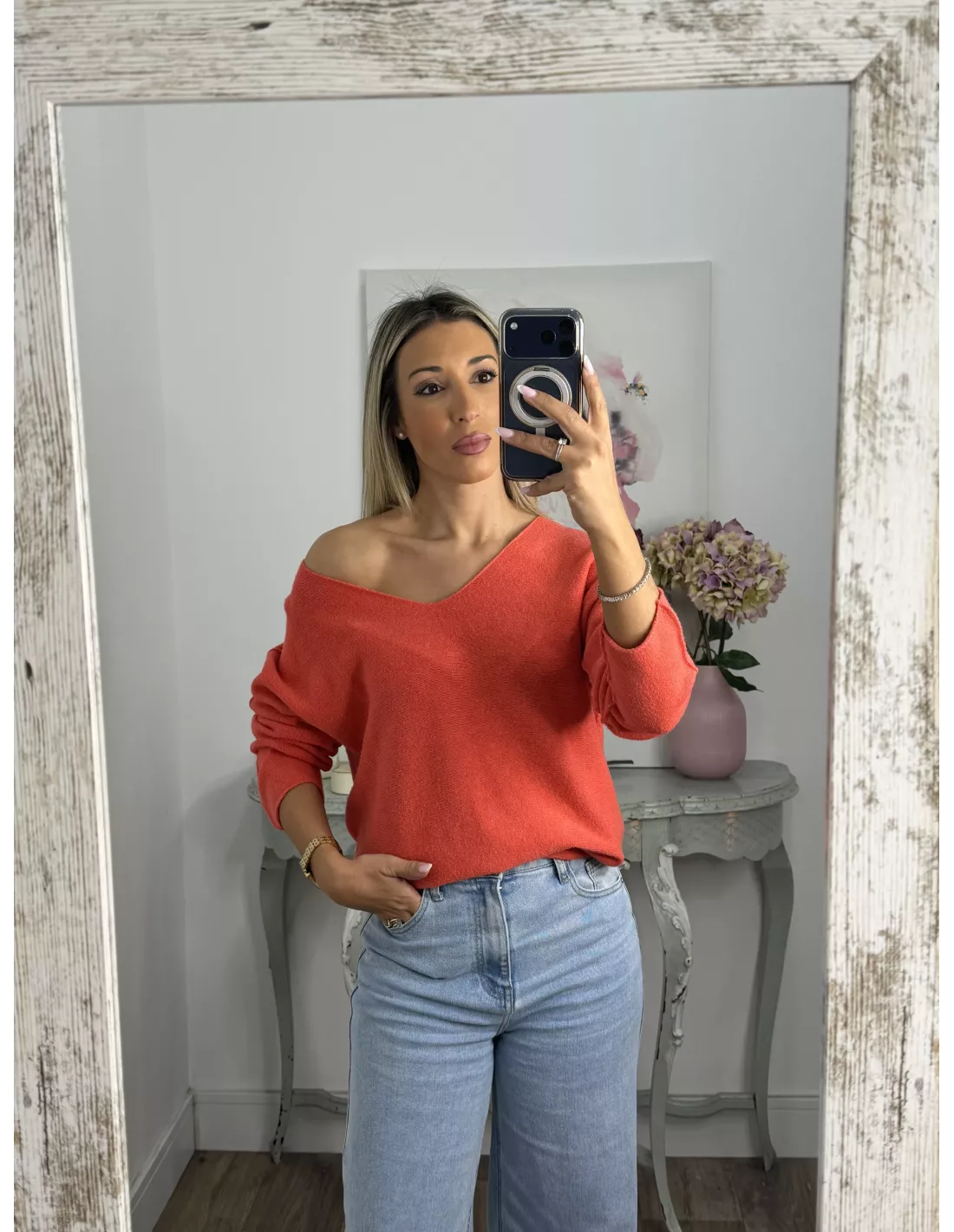 Jersey de cuello de pico de tacto, muy suave y agradable no pica nada.