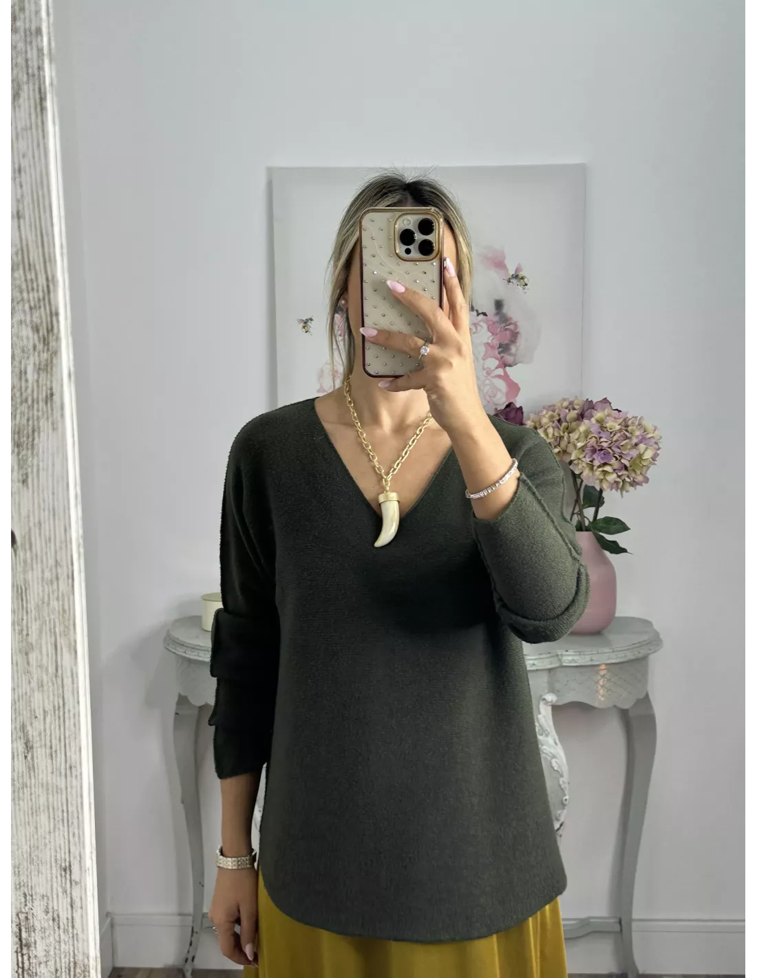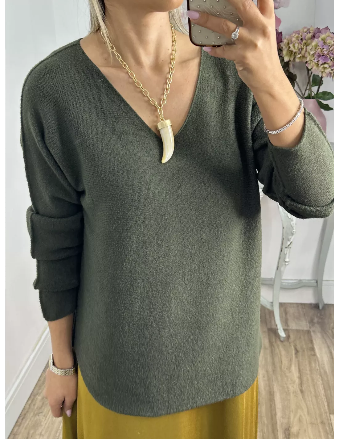 Jersey de cuello de pico de tacto, muy suave y agradable no pica nada.