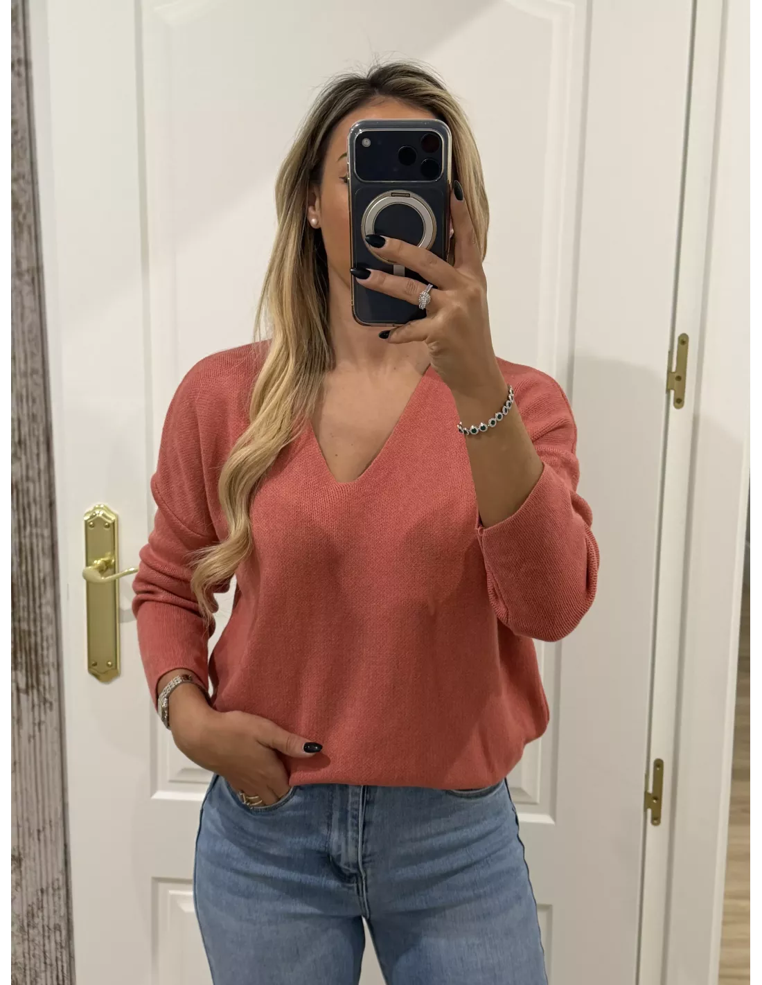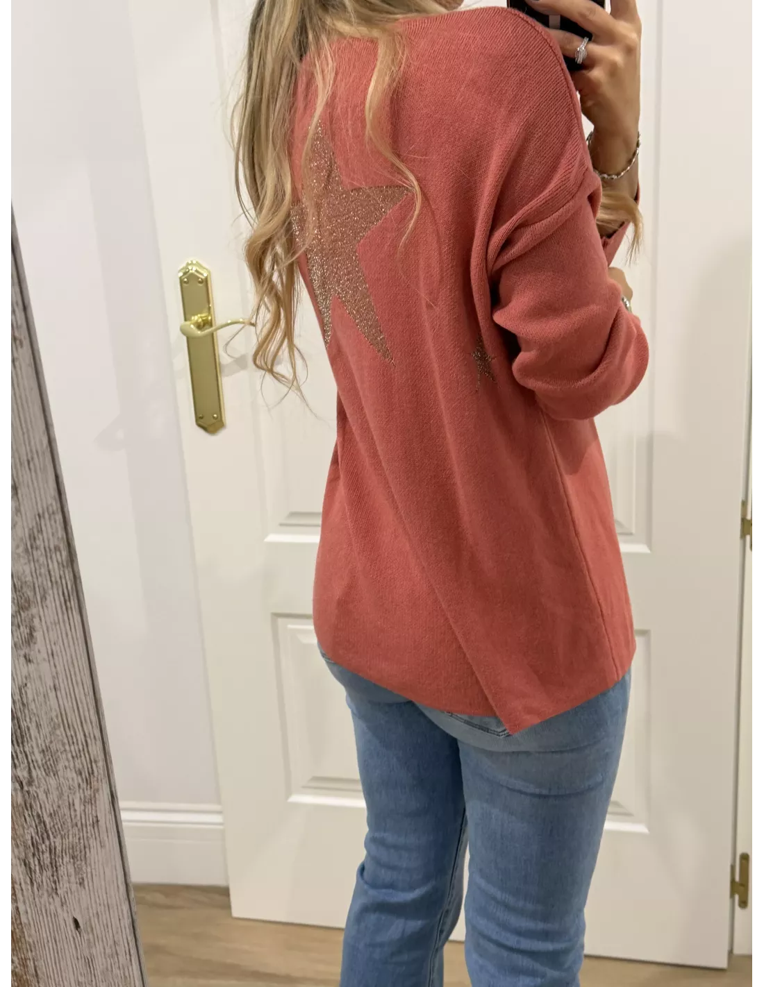 Jersey de punto con estrella grande en la espalda, la estrella lleva un hilo dorado.